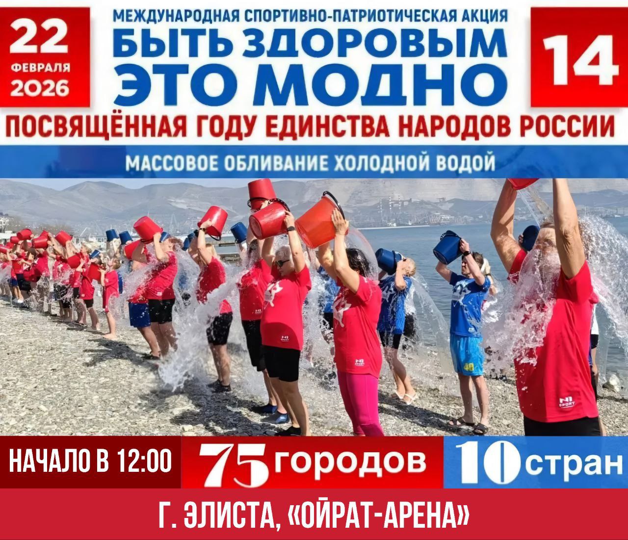 В Элисте массовое обливание холодной водой пройдет 22 февраля на площади перед «Ойрат-Ареной». Начало в 12:00. Регистрация участников открыта на сайте bit-zdorovim.ru/.