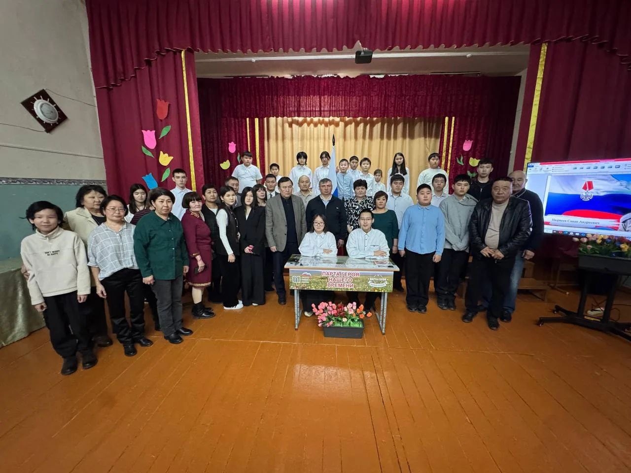 С 2020 по 2024 годы Санан Пюрвеев работал на Кировском заводе. В феврале 2024-го был мобилизован на СВО, в июне того же года погиб на территории Харьковской области Украины. За именную парту первыми сели восьмиклассники, победители олимпиад Александра Санджиева и Эрдни Саксыков.