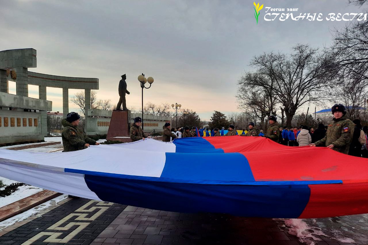 Молодежь республики выстроилась в букву латинского алфавита Z, которая используется для маркировки техники и официально трактуется Минобороны РФ как «За победу», «Za мир», «Zа правду». Также развернули большие флаги Калмыкии и России.