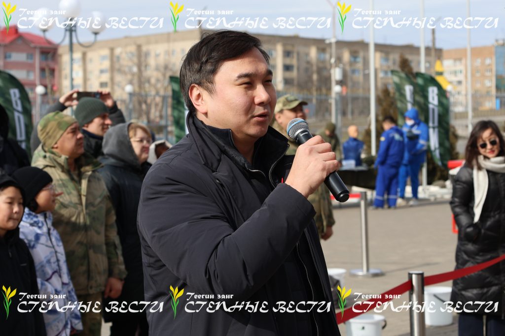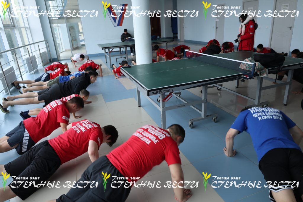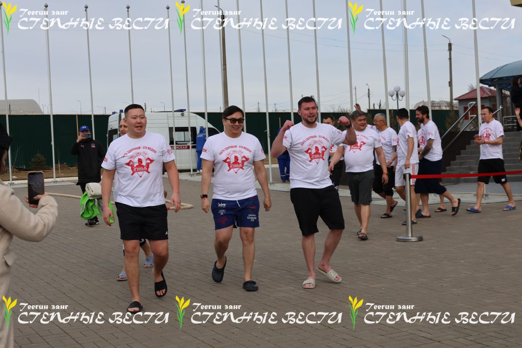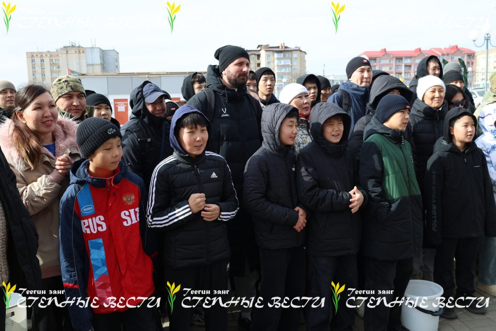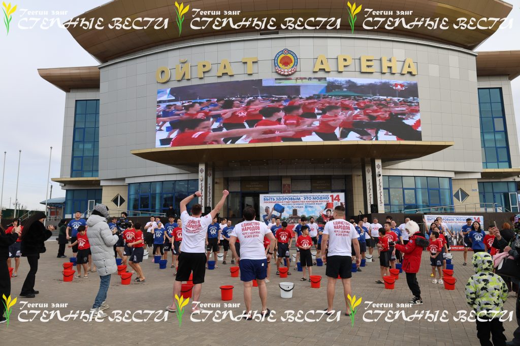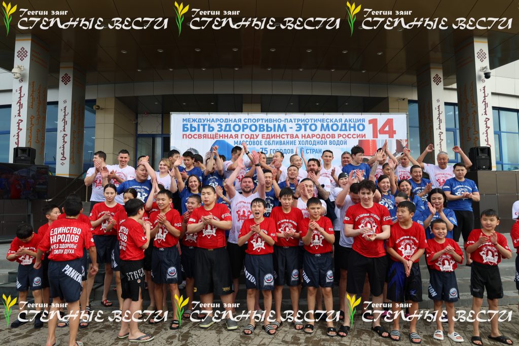 Под песню Дениса Майданова «Флаг моего государства» участники вышли на обливание в футболках с символикой акции в цветах российского триколора. В таких же оттенках были и подготовленные ведра с холодной водой. После небольшой разминки на всех площадках телемоста состоялось одновременное массовое обливание. В Элисте самой многочисленной группой среди участников, пожалуй, стали представители военного спортивно-патриотического клуба «Гром 08». «Нас тут чуть больше 30 человек – это наши воспитанники разного возраста. Самому младшему – шесть лет, тоже решил попробовать, но вместе с ним принимают участие и его родители. Мы провели разминку, подготовили организм к такой нагрузке. Это акция патриотической направленности, и мы не могли не прийти. Также это прививание нашим детям закалки, силы духа», – отметил наставник юных спортсменов Бембя Боджаев.