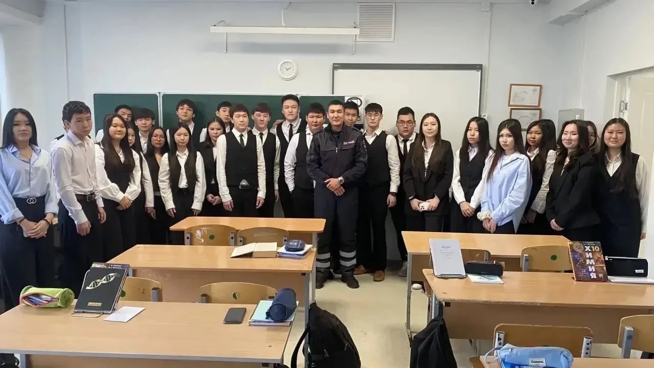 Сотрудники Госавтоинспекции Элисты провели профилактическое мероприятие для учащихся средней школы №3 им. Н.Г. Сергиенко.