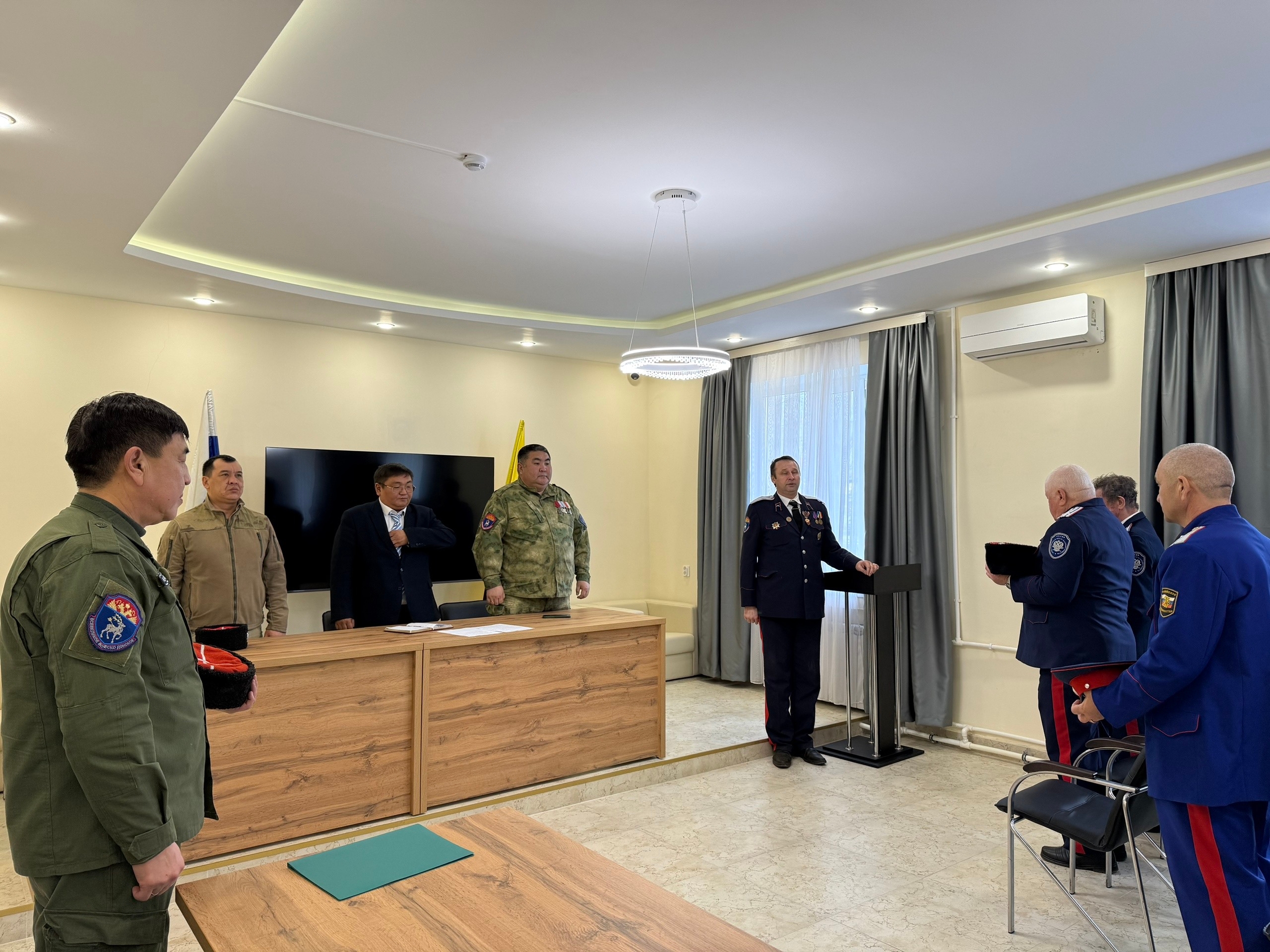 Большой круг станичного казачьего общества посетили представители калмыцкого округа Всевеликого войска Донского во главе с атаманом Чимидом Джангаевым. В своем выступлении он подчеркнул важнейшую роль казачества в специальной военной операции. Говорил о личной ответственности каждого казака, незыблемой верности Отечеству и необходимости продолжать славные традиции предков, всегда стоявших на страже страны.