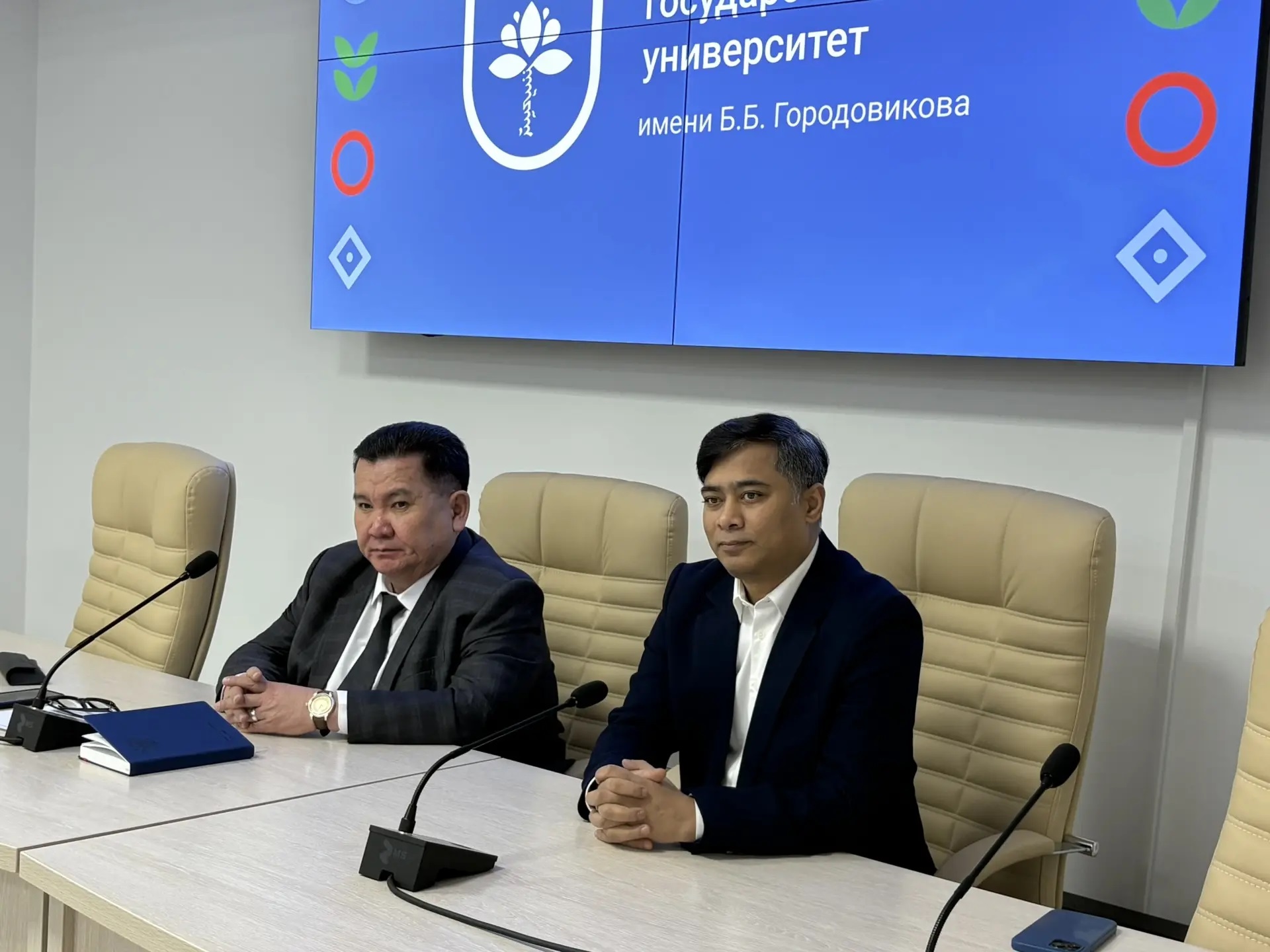В Калмыцком государственном университете им. Б. Б. Городовикова состоялось совещание, посвященное образовательному проекту, который опорный вуз реализует совместно с «Центром международного образования» из Индии. Во встрече приняли участие ректор КалмГУ Бадма Салаев, директор индийского центра господин Чоудхури Мд. Мизанур Рахман, проректор по международной деятельности Оксана Кониева и декан медицинского факультета Саглара Бадмаева.