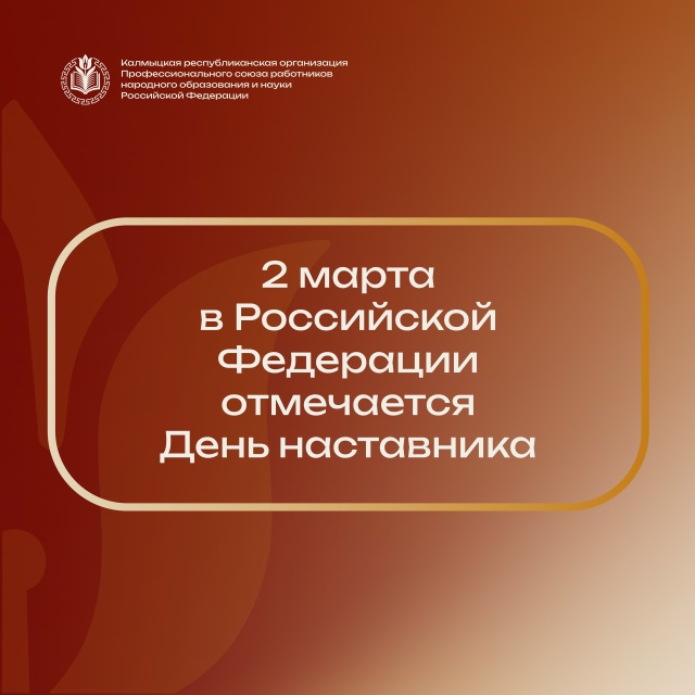 К профессиональному празднику республиканская организация Общероссийского Профсоюза образования объявила о проведении первого форума «Код наставника». Он пройдет в Элисте с 24 по 26 марта.