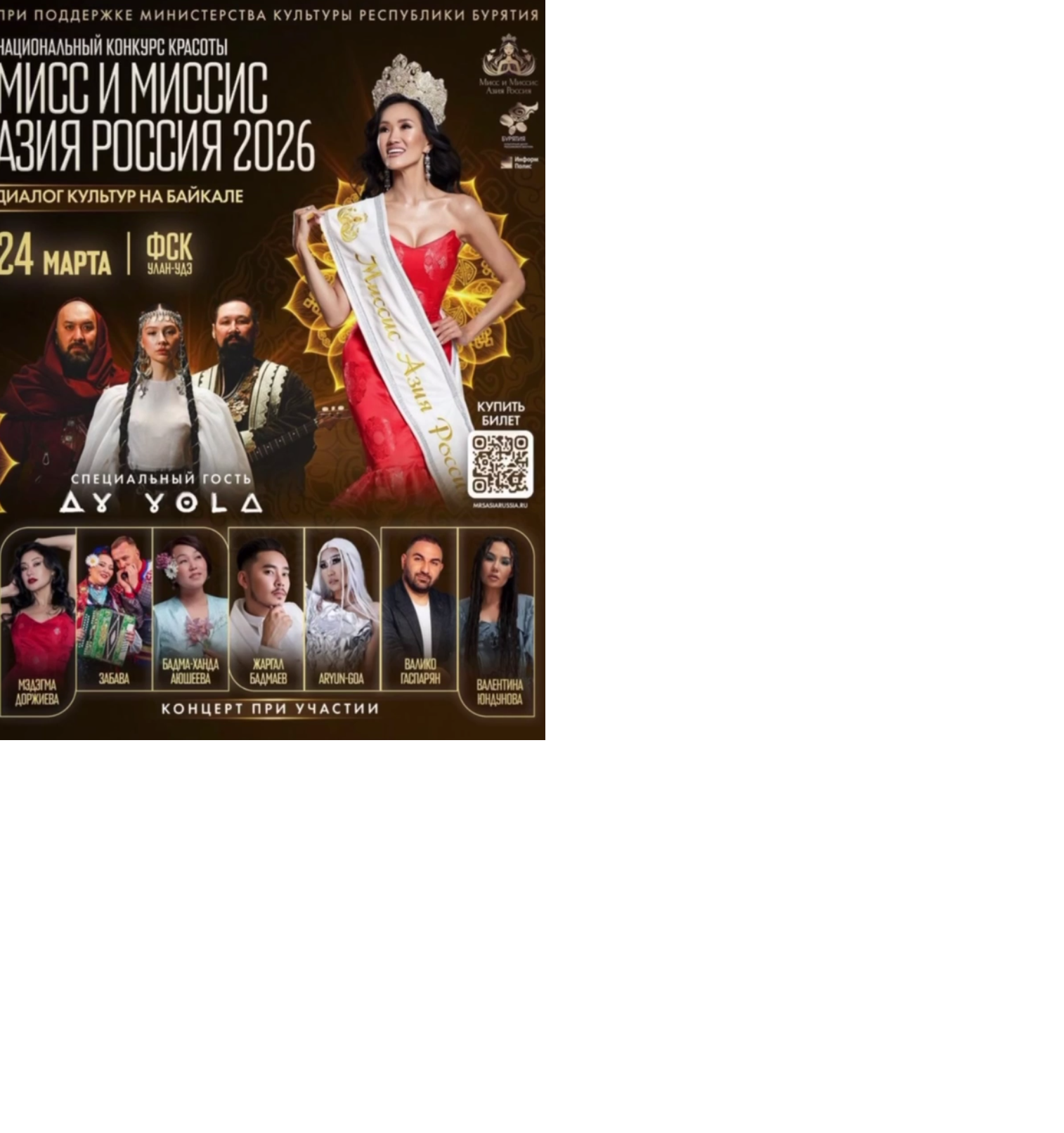С 17 по 24 марта Улан-Удэ станет центром красоты и культуры. Финал конкурса «Мисс и Миссис Азия Россия» соберет здесь участниц со всех уголков страны. Девушки продемонстрируют свои таланты и познакомят зрителей с богатством национальных традиций. Конкурс проходит в трёх категориях: «Мисс» (незамужние), «Миссис» (замужние до 40 лет) и «Классик» (40+). Обладательницей гран-при может стать участница из любой категории.