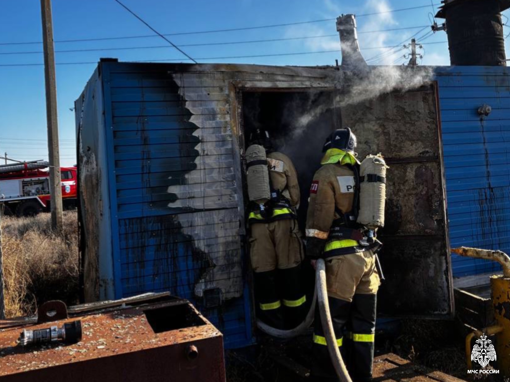 Сегодня утром, в 07.34, поступило сообщение о возгорании бани в 15-ти километрах от поселка Комсомольский. Пожарно-спасательные подразделения прибыли на место – в восточном направлении от райцентра. Горела баня-вагончик на территории сборочного пункта Краснокамышанник.