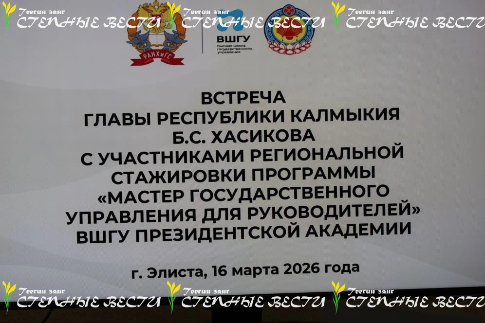 В эти минуты в Элисте проходит встреча Главы Калмыкии Бату Хасикова с участниками региональной стажировки по программе профессиональной переподготовки «Мастер государственного управления для руководителей». Это флагманская программа Высшей школы государственного управления Президентской академии РАНХиГС. Во встрече также участвуют председатель правительства Гиляна Босхомджиева и руководители органов исполнительной власти региона.