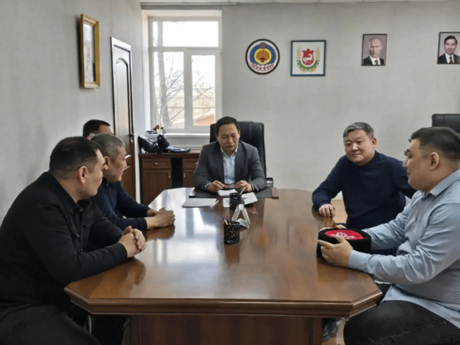 Временно исполняющий обязанности главы Целинного района Басанг Убушаев встретился с представителями станичного казачьего общества.