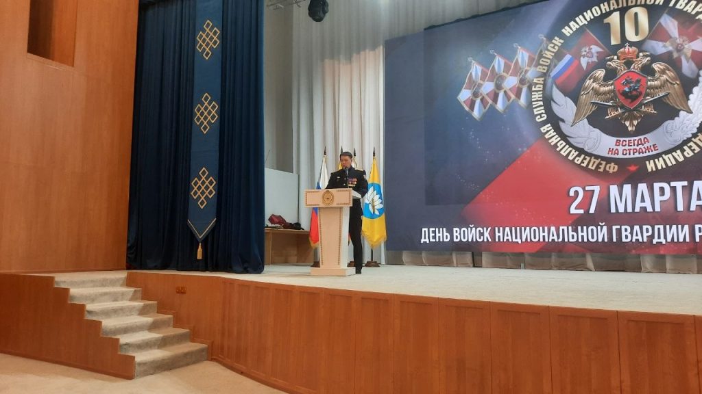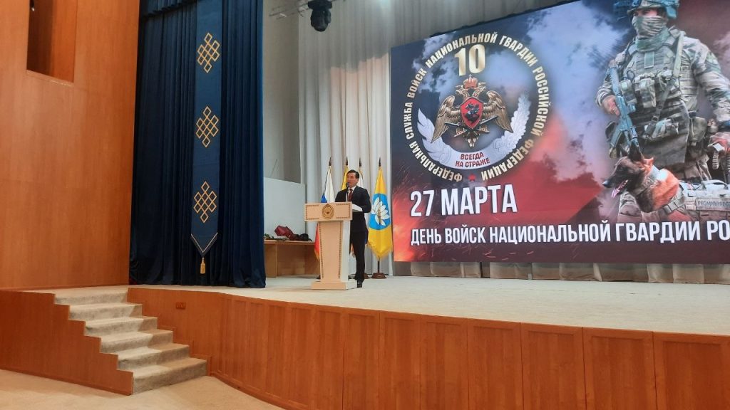 Начальник регионального управления Росгвардии, полковник полиции Наран Настинов отметил, что войска правопорядка уде 200 лет стоят на страже тишины и спокойствия, вносят весомый вклад в обеспечение внутренней безопасности, противостоят преступности и терроризму, охраняют важные государственные объекты.