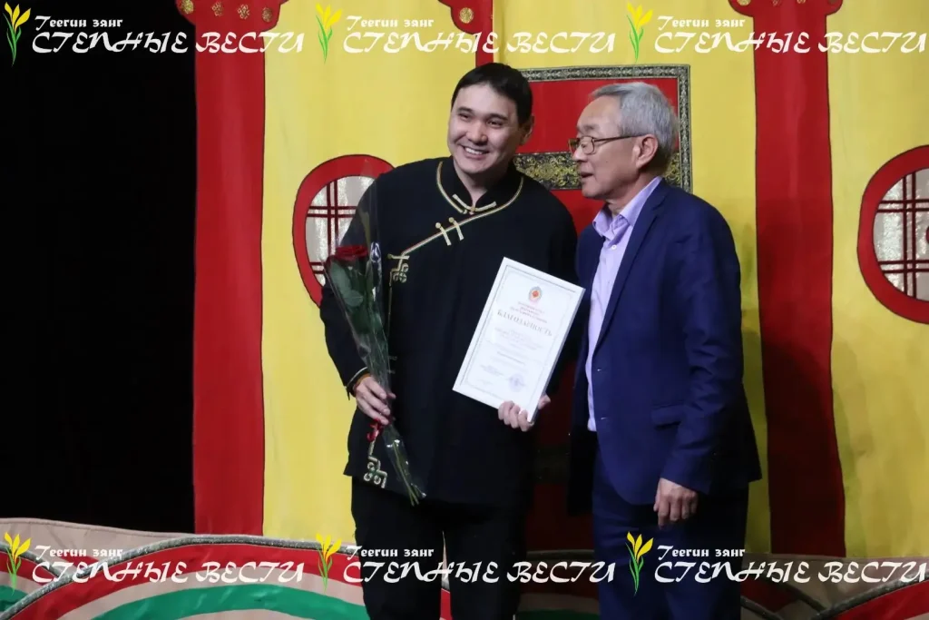 Председатель Союза театральных деятелей Калмыкии Владимир Стаценко вручил благодарности педагогам студии «Маленький принц», артистам «Джангара» Игорю Шургинову, Джангару Ванькаеву и Эльзе Сельвиной. Различные награды получили и другие представители коллектива.