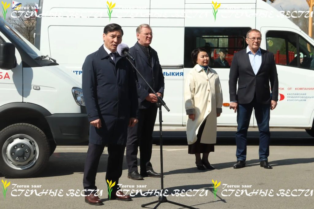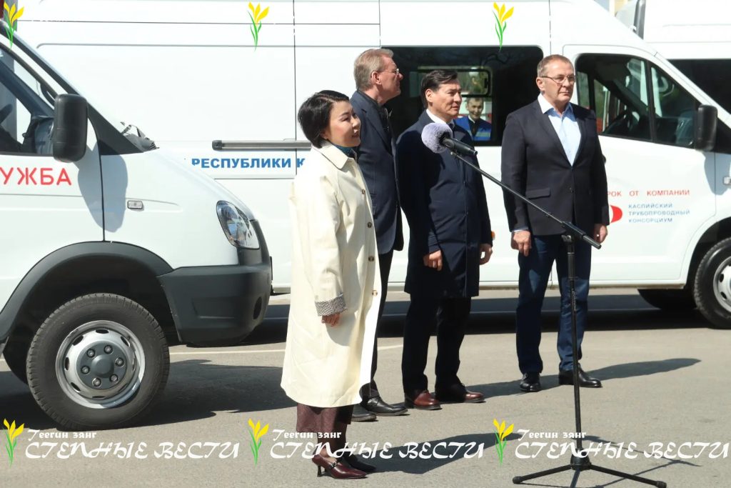 В Элисте на площади у Пагоды Семи дней состоялась торжественная церемония передачи автотранспорта и оборудования, приобретенных по благотворительной программе АО «КТК-Р». В мероприятии приняли участие Глава Калмыкии Бату Хасиков, генеральный директор Каспийского трубопроводного консорциума Николай Горбань, председатель правительства республики Гиляна Босхомджиева, а также руководители министерства здравоохранения, медицинских и социальных учреждений региона.
