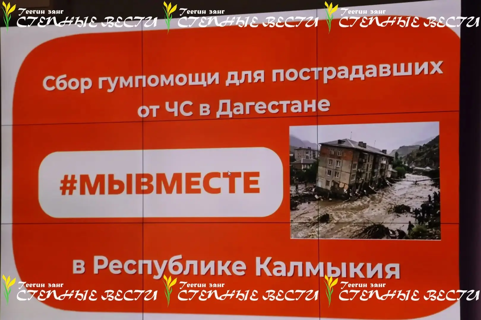 Сегодня на базе регионального штаба взаимопомощи «МыВместе» в Калмыкии состоялось собрание. Представители законодательной и исполнительной власти республики, национальных диаспор, общественники, предприниматели собрались в Доме молодежи им. Б.Б.Городовикова, чтобы обсудить порядок действий для оказания помощи жителям соседнего Дагестана. С 28 марта  в республике происходит сильнейший паводок за последние 100 лет. В результате стихии подтоплены сотни домов, а тысячи людей эвакуированы в пункты временного размещения. На восьми территориях Дагестана введен режим чрезвычайной ситуации.