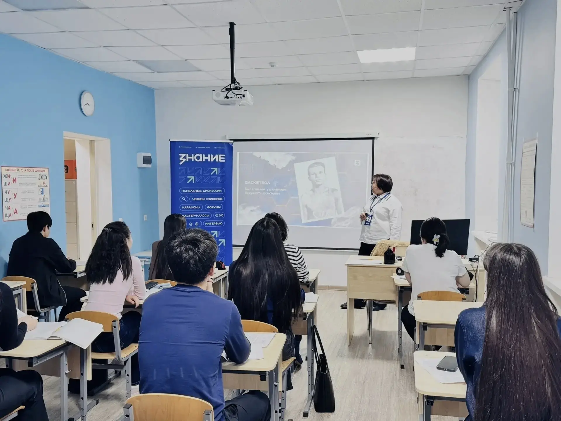 Вместе с ребятами директор детского университета Евгения Анкишева рассказала о жизненном пути первого советского космонавта Юрия Гагарина — как простой парень из смоленского села стал героем не только СССР, но и всего мира.