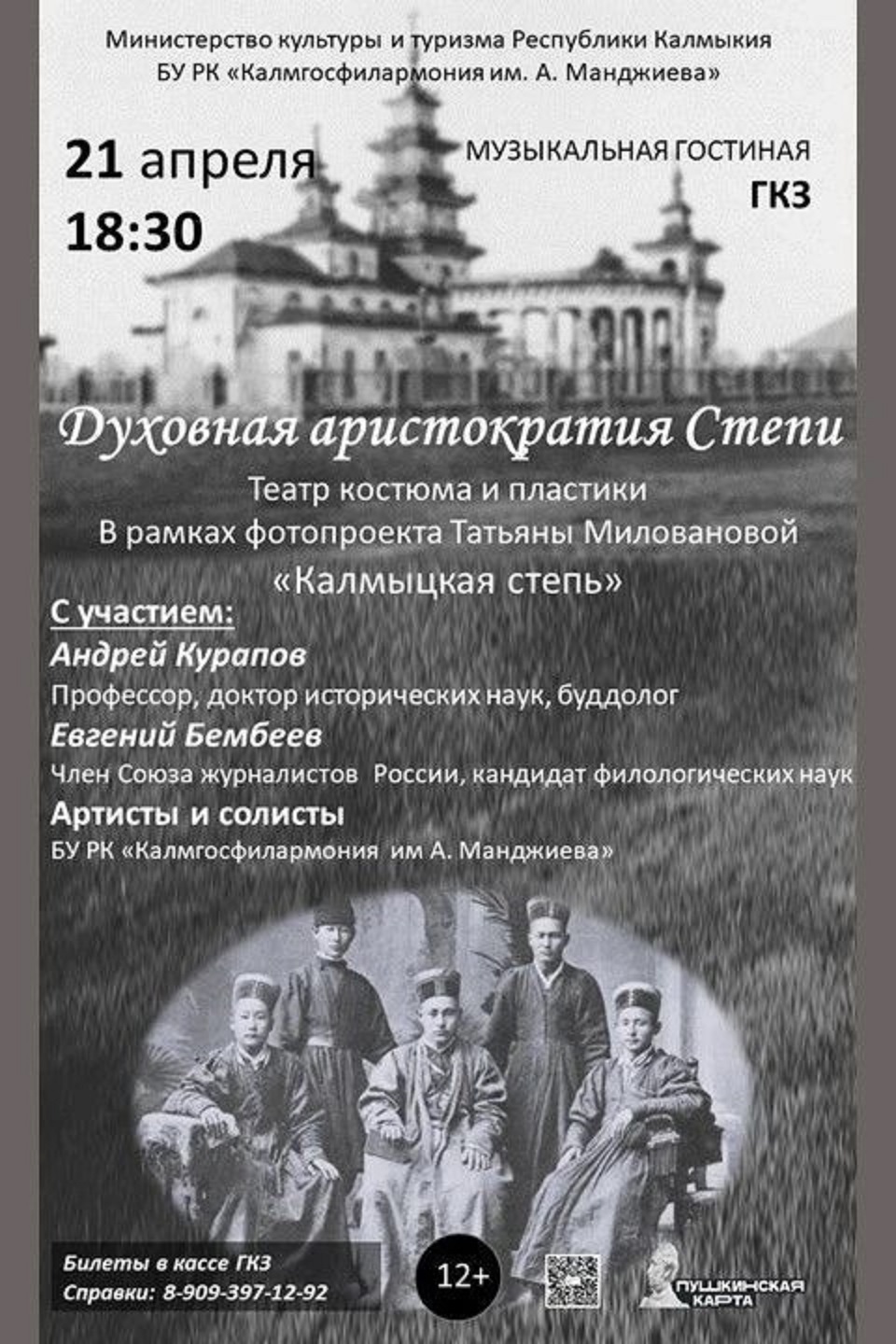 Яркое культурное событие пройдет на площадке Калмыцкой государственной филармонии имени А.Н. Манджиева. Зрители смогут познакомиться с важной составляющей культуры Калмыкии — буддийским духовенством, которое занимало важное место в социальной структуре калмыцкого общества.