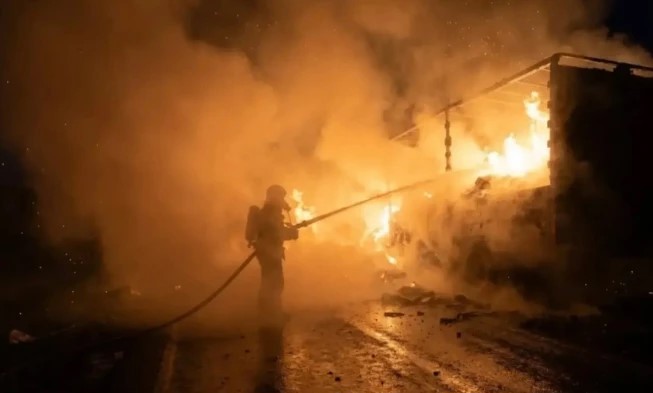 Накануне в 18:57 на автодороге в Приютненском районе загорелся прицеп грузовика, груженный картоном.