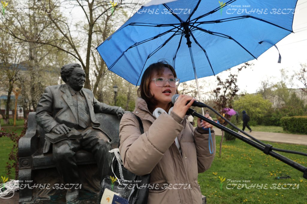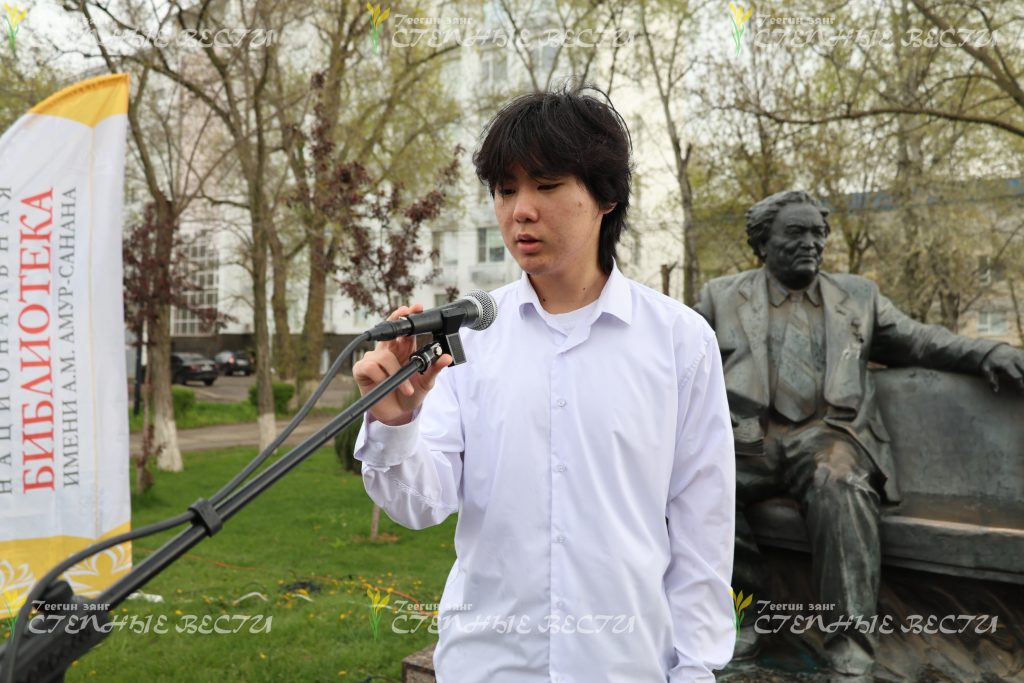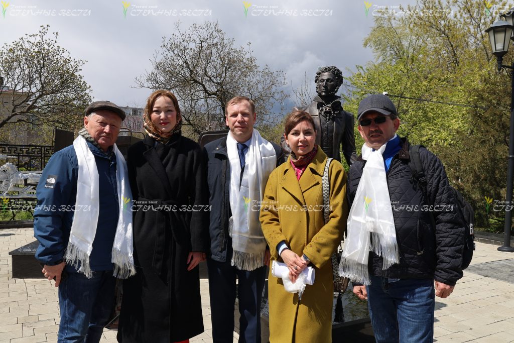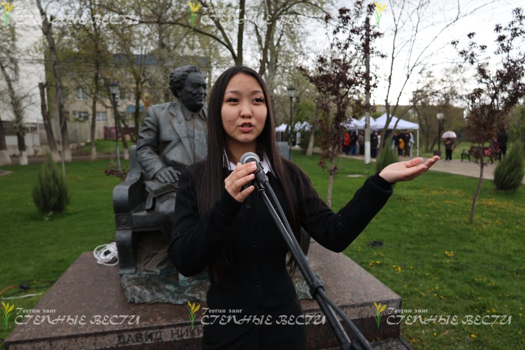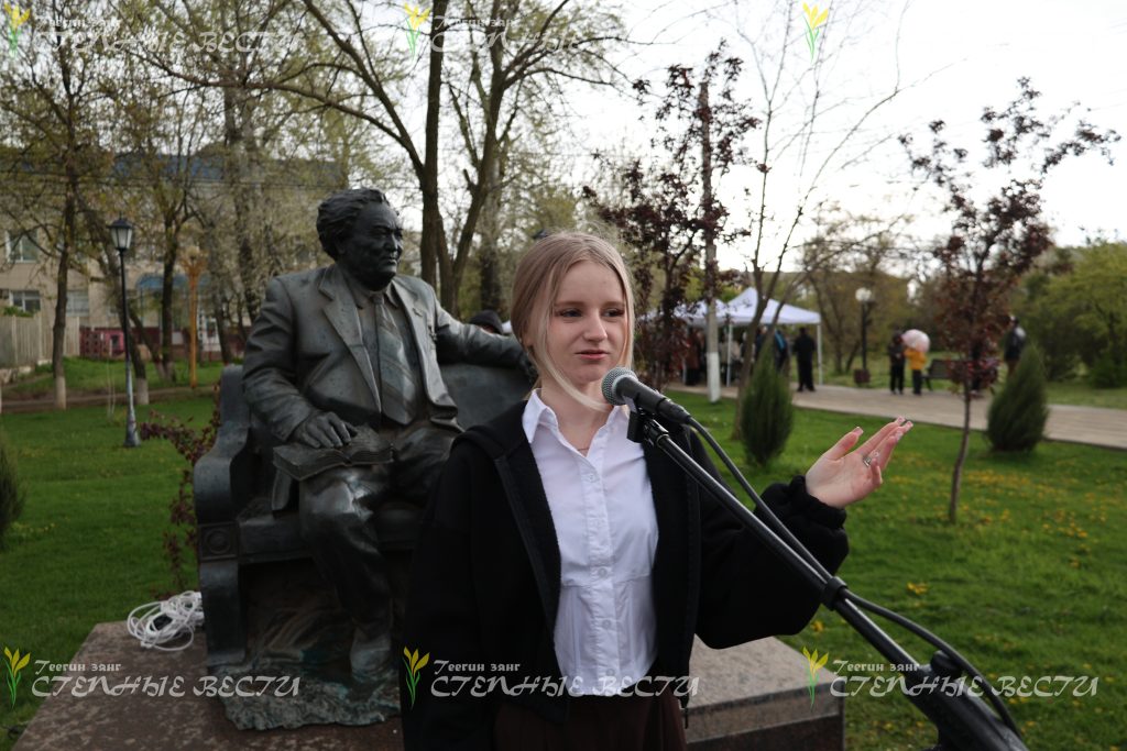 Однако сам конкурс в течение апреля начинался и продолжался на Аллее поэтов, у памятников Александру Пушкину и Давиду Кугультинову – об этом свидетельствуют снимки нашего фотографа, заслуженного работника культуры Калмыкии Николая Бошева.