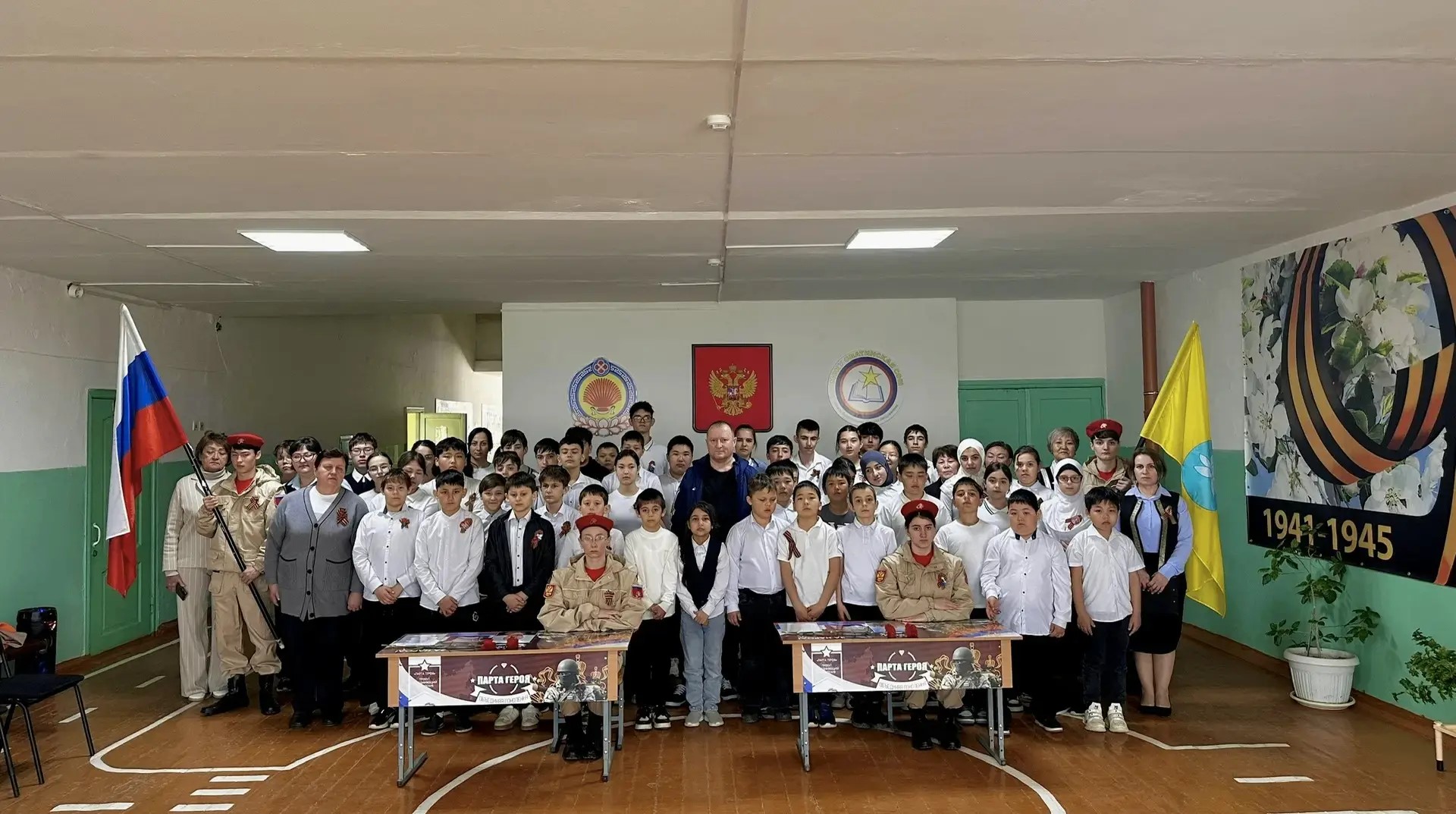 В Оватинской школе им. А.А. Башанкаева Целинного района торжественно открыли парты памяти Героев.