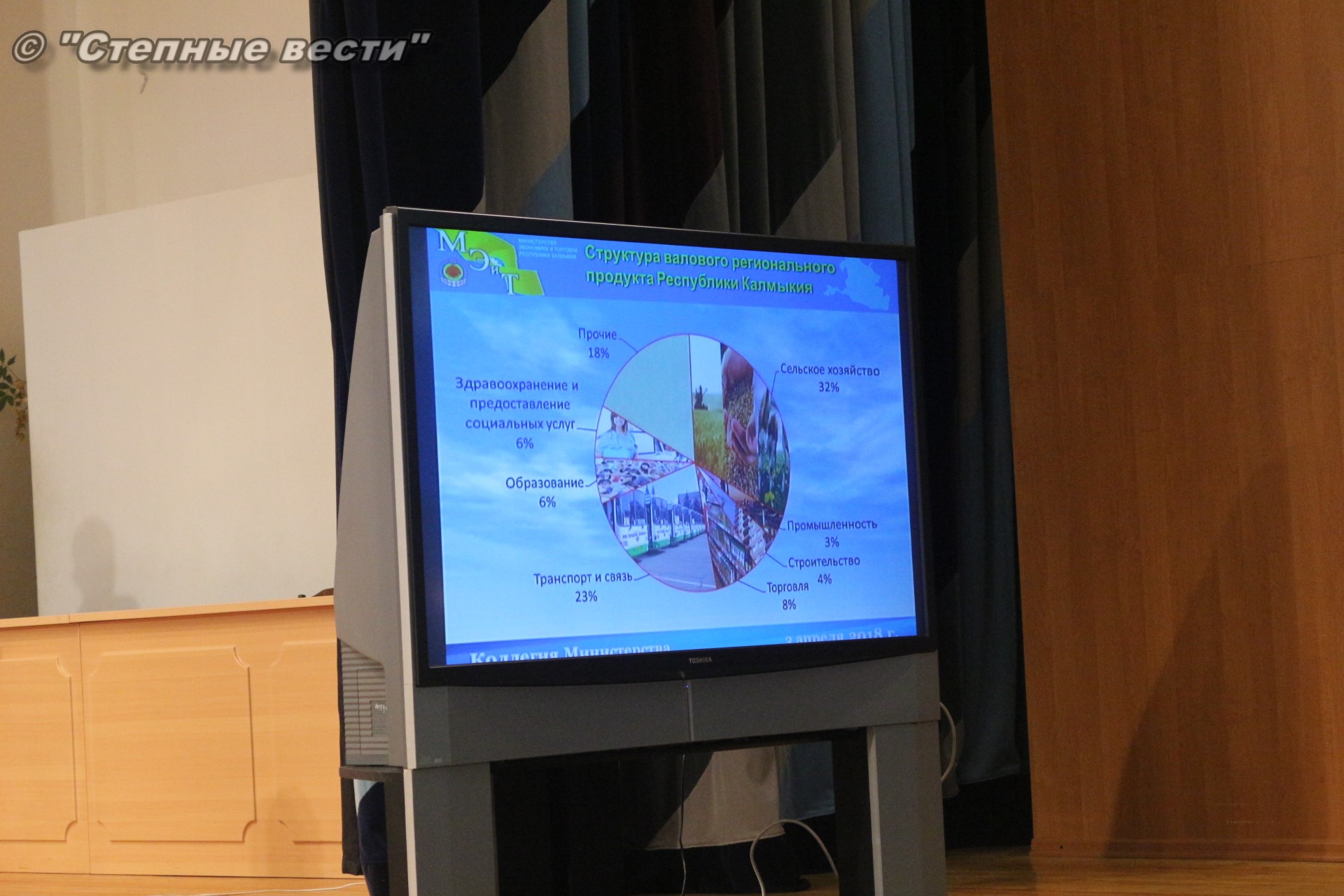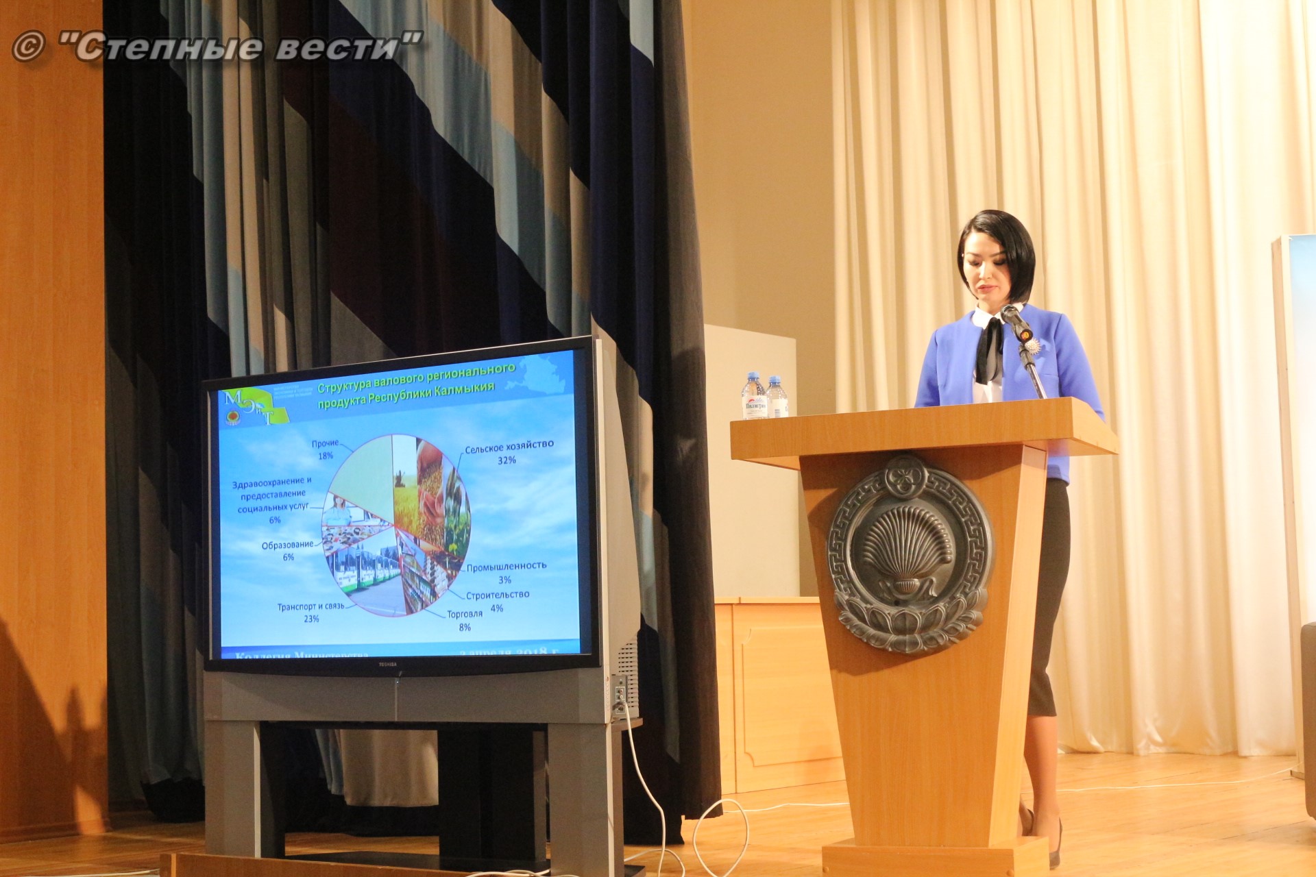 понятием, который характеризует социально-экономическое положение региона, является валовой региональный продукт. По итогам 2017 года объем ВРП Калмыкии составил 56 млрд. рублей. В его структуре значительный удельный вес занимает сельское хозяйство – 35,2%, доля транспорта и связи – 14,2%, торговли – 8,3% промышленности – 6,3%, строительства – 2,4%. Вклад малого и среднего предпринимательства составил 26%. Между тем одной из задач, которые поставил Президент России в своем послании, – к 2024 году увеличить долю вклада МСП в ВВП страны до 40%, сказала Зоя Олеговна.
