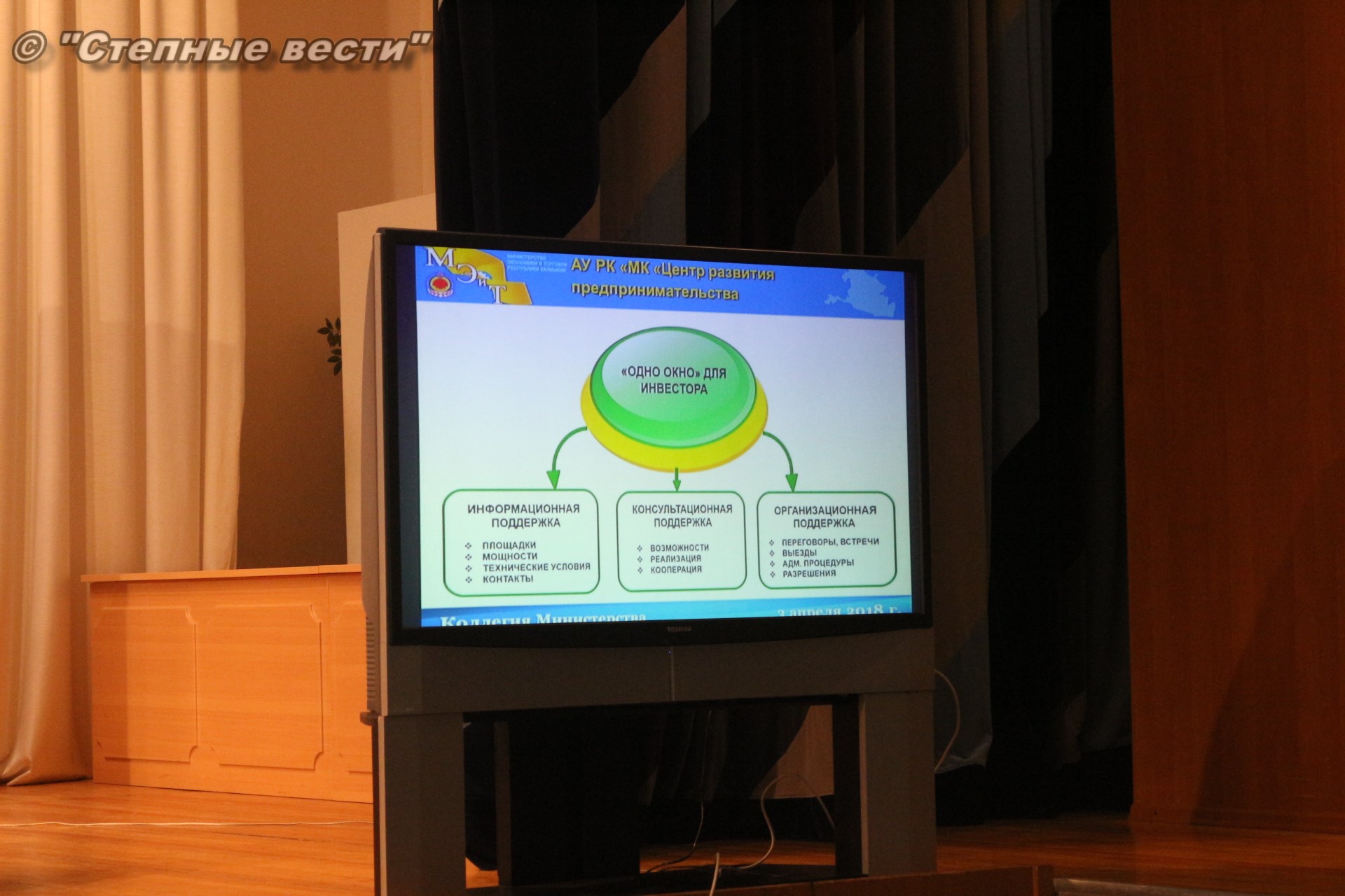 С целью оперативного решения вопросов и формирования механизмов обратной связи образован координационный совет по предпринимательству. Созданным год назад Центром содействия предпринимательству оказано более 3 тыс. услуг, проведено более 150-ти семинаров и «круглых столов», семь обучающих программ для субъектов малого бизнеса. Первый деловой форум Калмыкии «Территория развития» стал событием в калмыцком бизнес-сообществе, в котором приняли участие более 3 тысяч человек, а проходившая параллельно выставка продукции местных предпринимателей показала, что малому бизнесу степного региона есть что продемонстрировать.