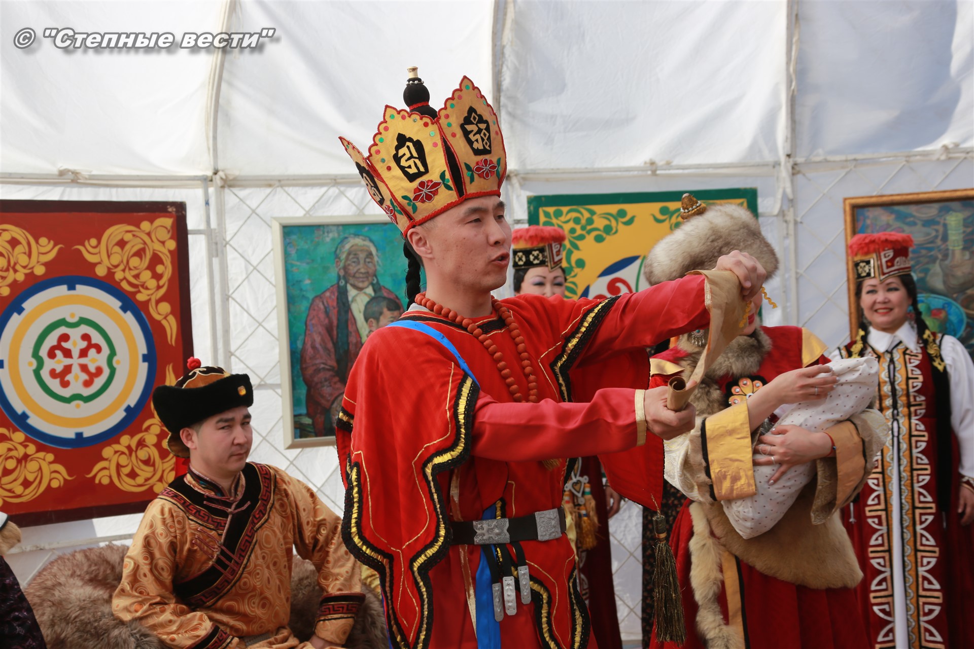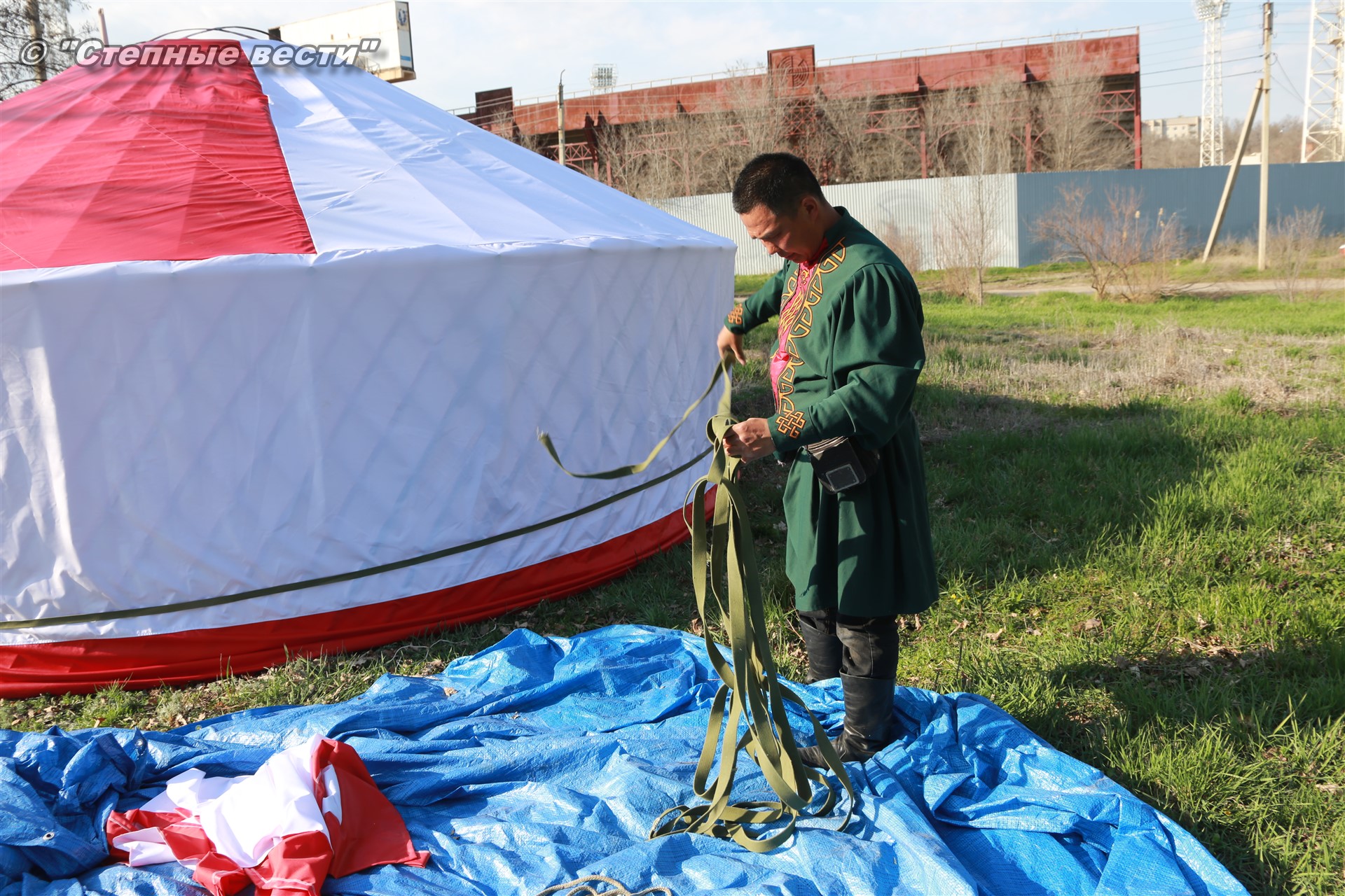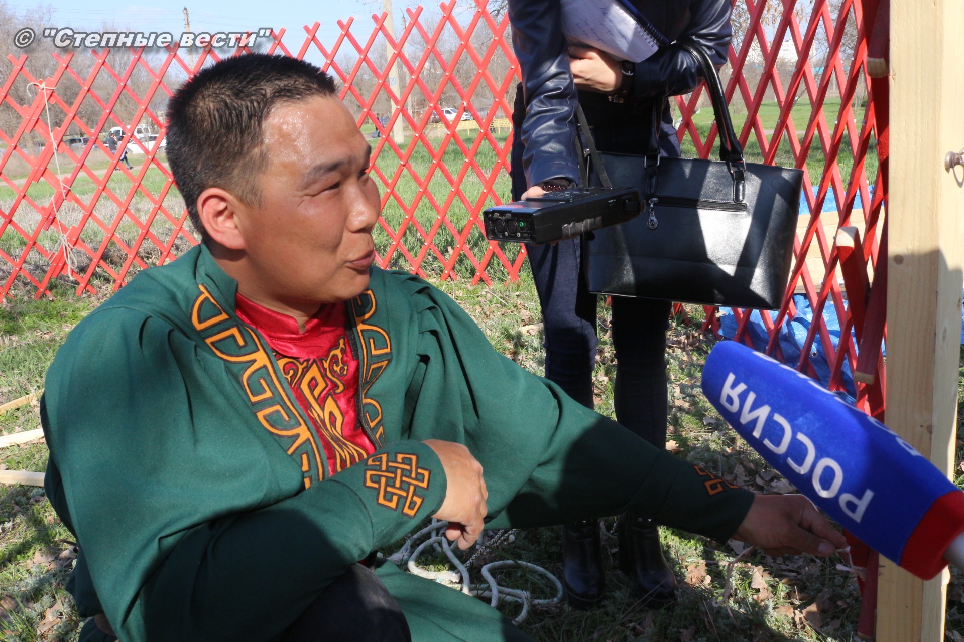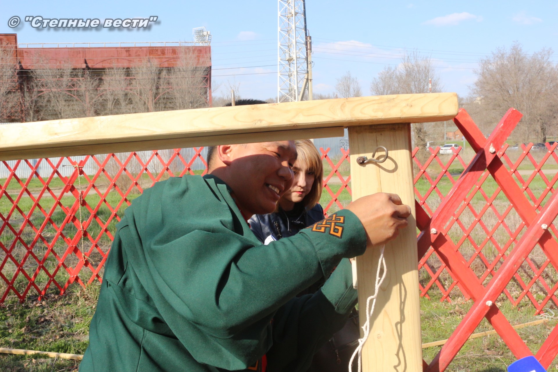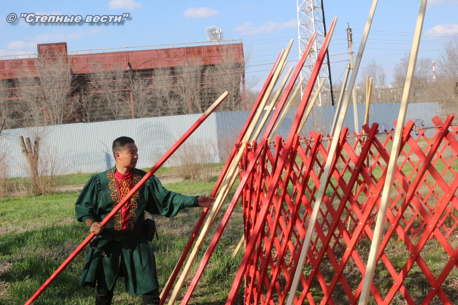 Находясь под впечатлением от увиденного, я продолжил свою экскурсию по хотону, тем более что встретившаяся моя коллега сказала, что неподалеку от этнохотона происходит процесс сборки-разборки юрты. Поблагодарив Ирину Алексеевну, я поспешил туда. Ведь не каждый день можно видеть как собирают юрту. Журналистская братия, окружив ремесленников, принялась расспрашивать их. На наши вопросы любезно ответил руководитель мастерской «Ишкя Гер» Эрдни Очир-Араев.