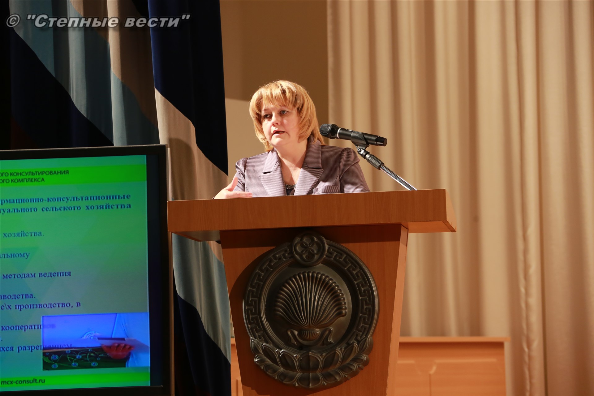 Начальник отдела сельскохозяйственного консультирования и переподготовки кадров департамента научно-технологической политики и образования Министерства сельского хозяйства Российской Федерации Анна Тиунова огласила приветствие от имени Министерства сельского хозяйства РФ.