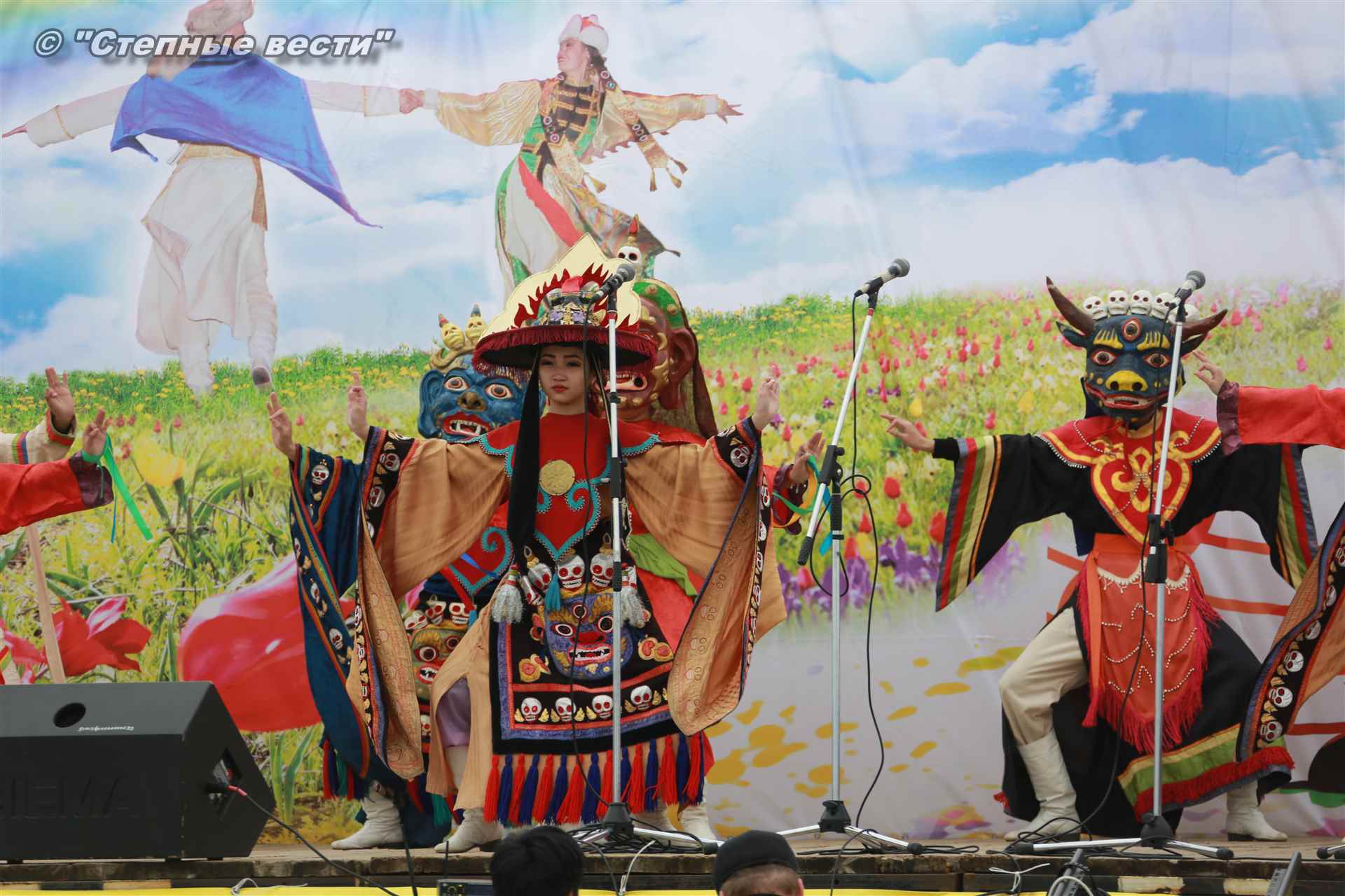 Праздник на импровизированной сцене начался с мистерии Цам – буддийского ритуала за мир и счастье всех живых существ, дарящего умиротворение. Как отметили ведущие, созерцание Цама очищает ум и меняет повседневную жизнь к лучшему.