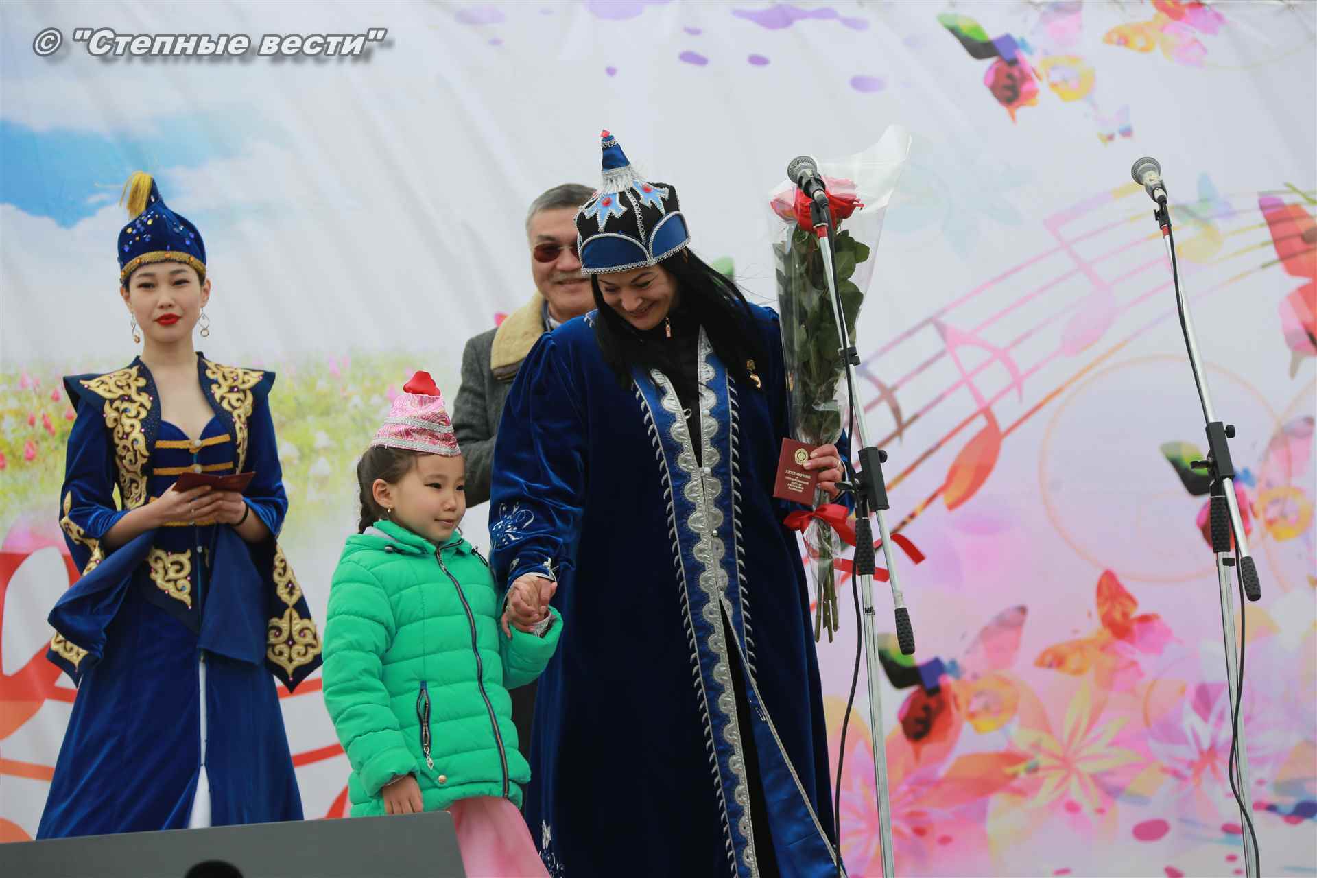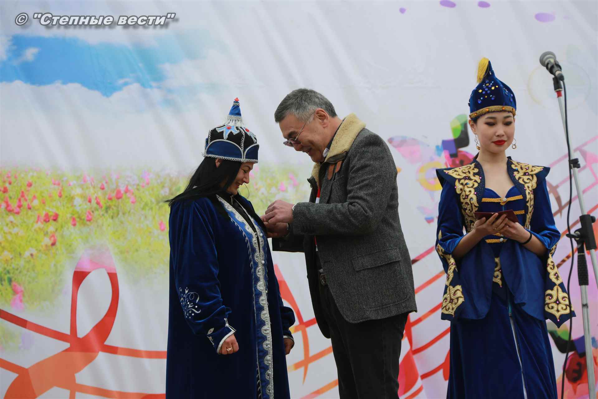 На сцене он вручил удостоверения о присвоении почетного звания «Заслуженный работник РК» руководителю образцово-художественного ансамбля танца «Веснушки» Виктории Солодкой и сотруднику Республиканского дома народного творчества Кеме Очировой.