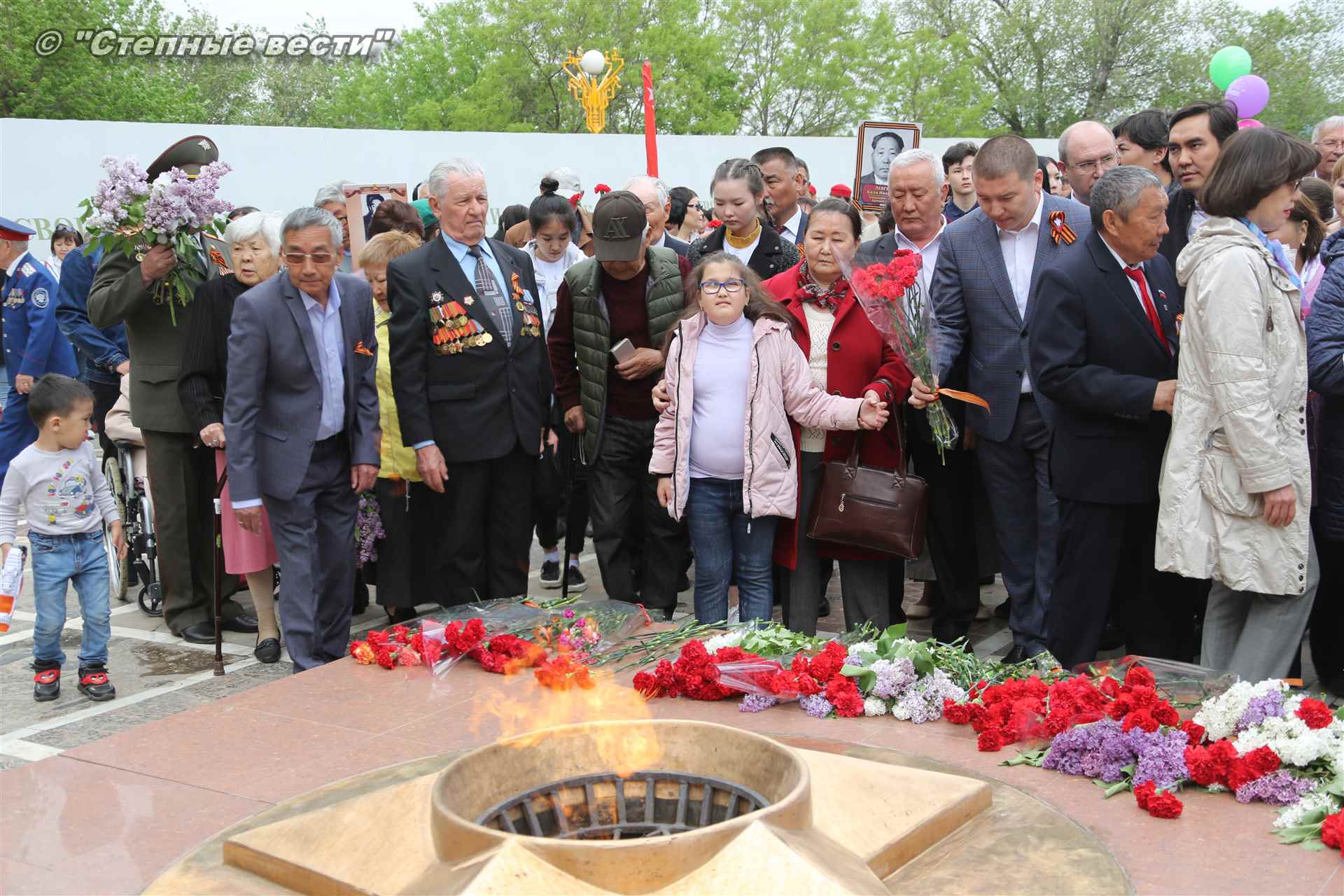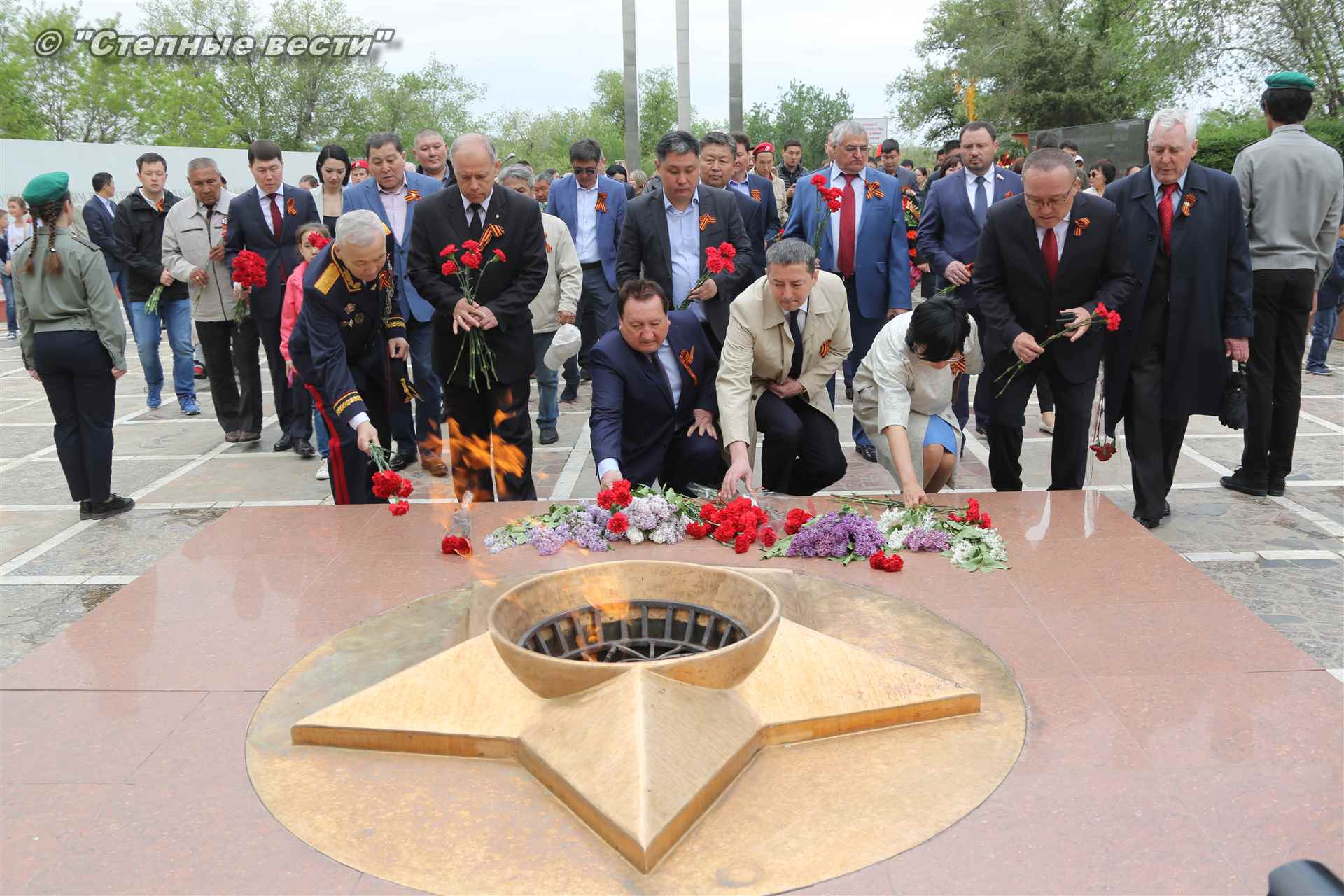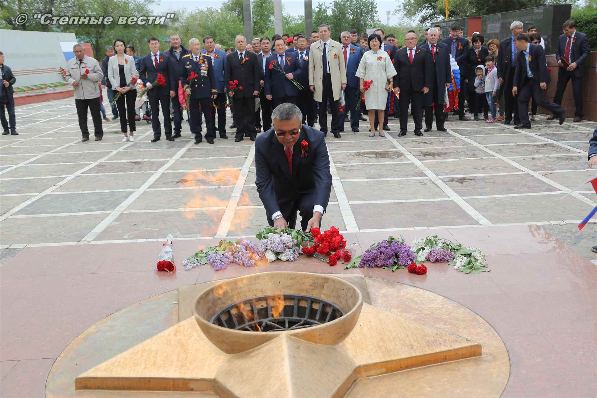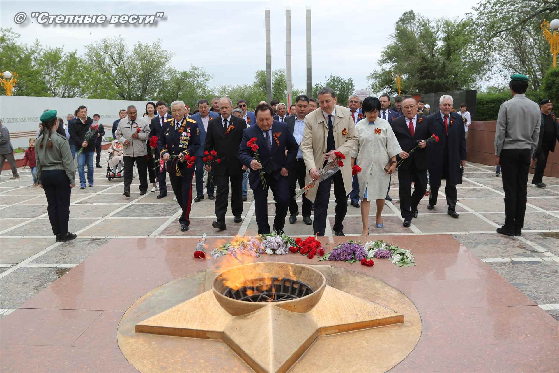 Сегодня в Элисте праздничные мероприятия, посвященные 73-й годовщине Победы в Великой Отечественной войне 1941-1945 годов, начались с торжественного митинга у Мемориала павшим Героям.