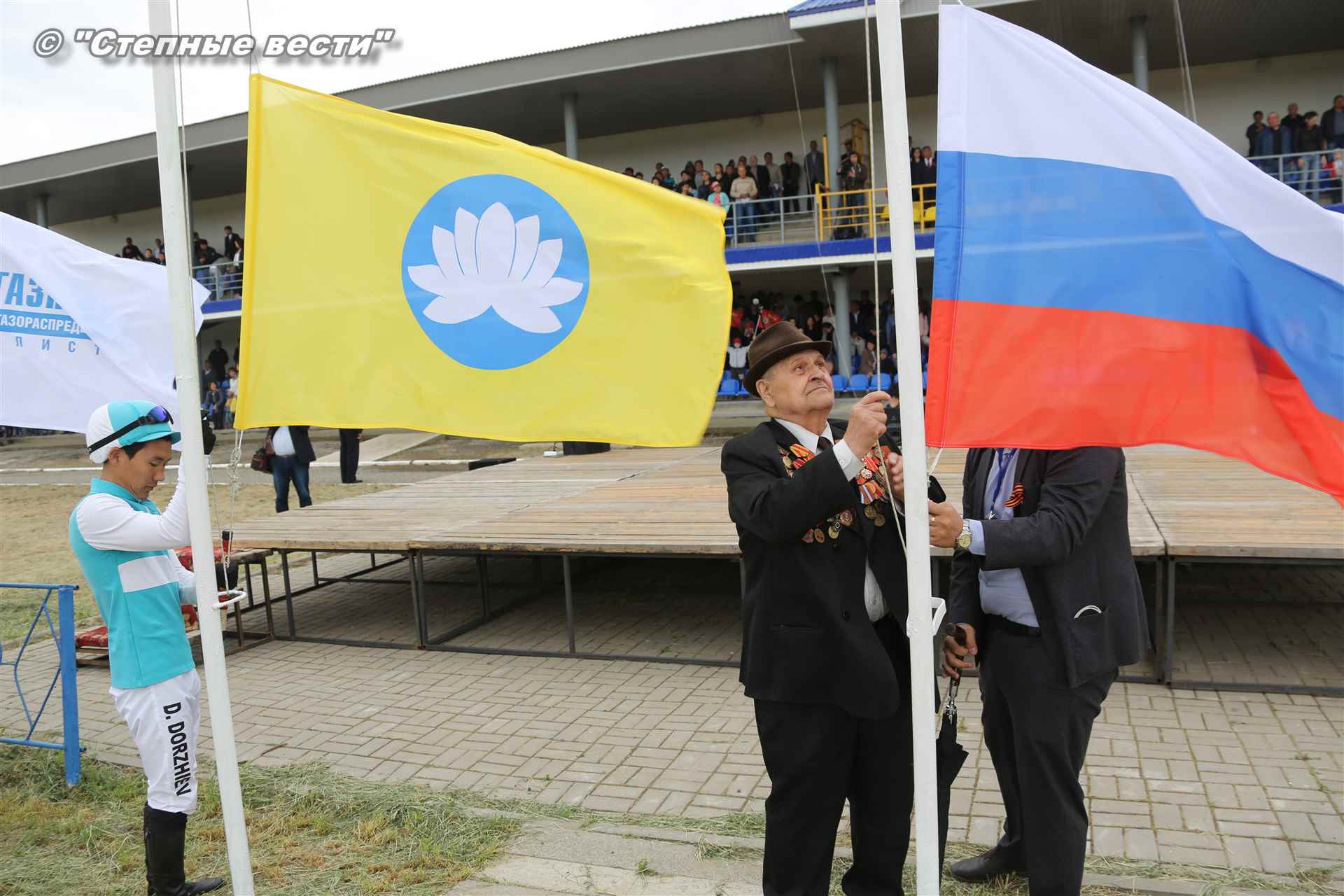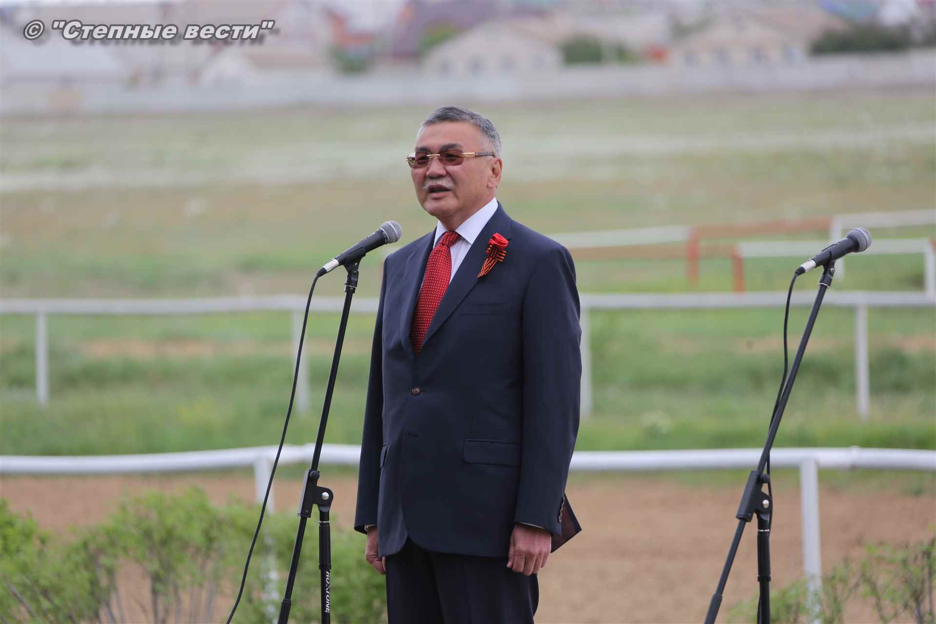 Праздничный день по традиции продолжился на Элистинском ипподроме конноспортивными состязаниями. Участников скачек и зрителей поздравил с Днем Победы Глава Калмыкии Алексей Орлов.