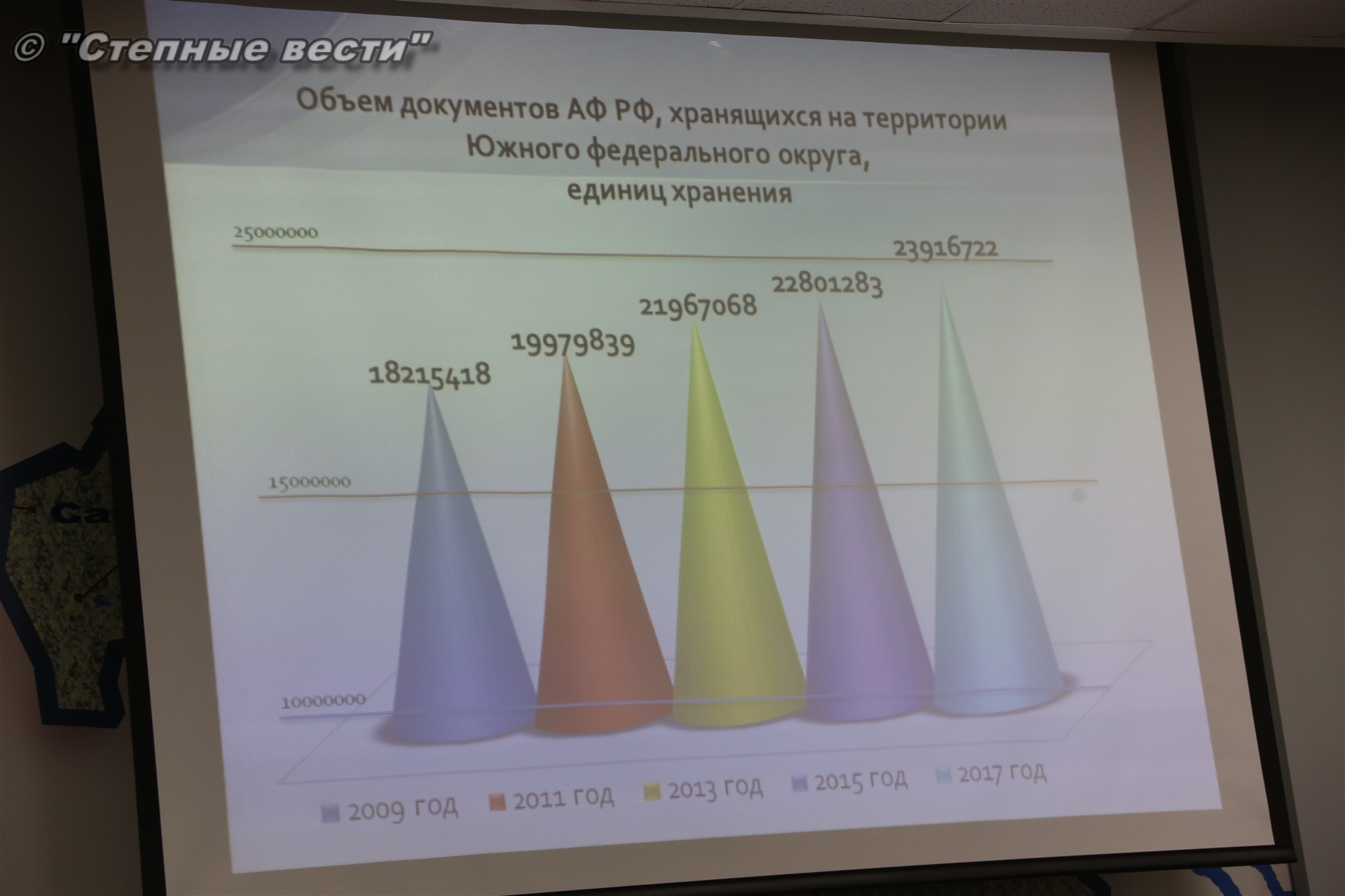Открывший мероприятие Андрей Юрасов подчеркнул, что в Калмыкии собрался большой отряд российских архивистов. В архивных учреждениях ЮФО и СКФО находятся 24 млн единиц хранения. В двух федеральных округах работают 27 государственных архивов, порядка 660 муниципальных архивов и структурных подразделений органов местного самоуправления, выполняющих функции муниципальных архивов; в этой сфере трудятся 2340 человек.
