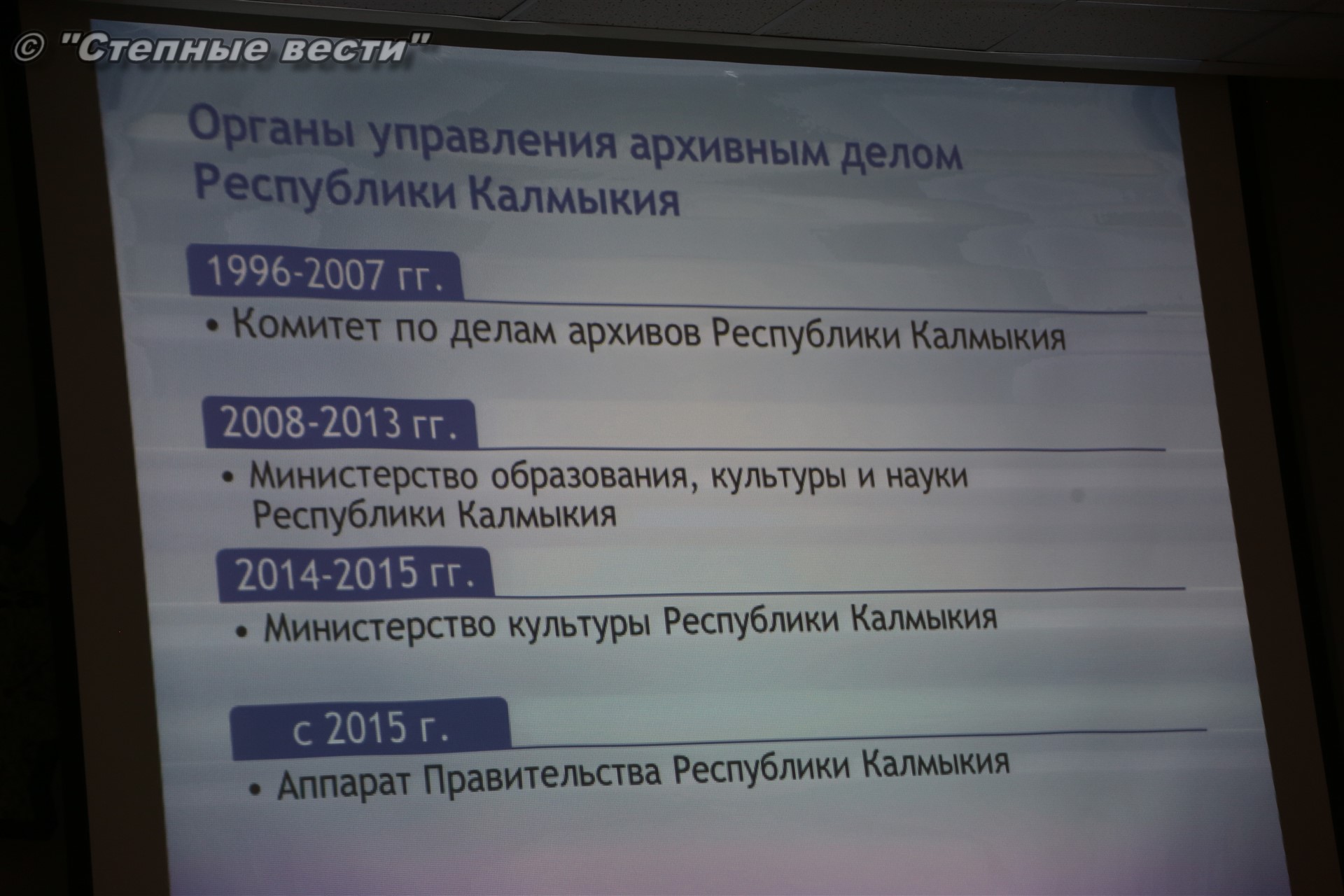 На совместном заседании научно-методических советов архивных учреждений Южного и Северо-Кавказского федеральных округов, которое проходит сегодня в Элисте, в республиканском Доме правительства, обсуждают осуществление контрольных функций органами исполнительной власти по соблюдению законодательства в сфере архивного дела.