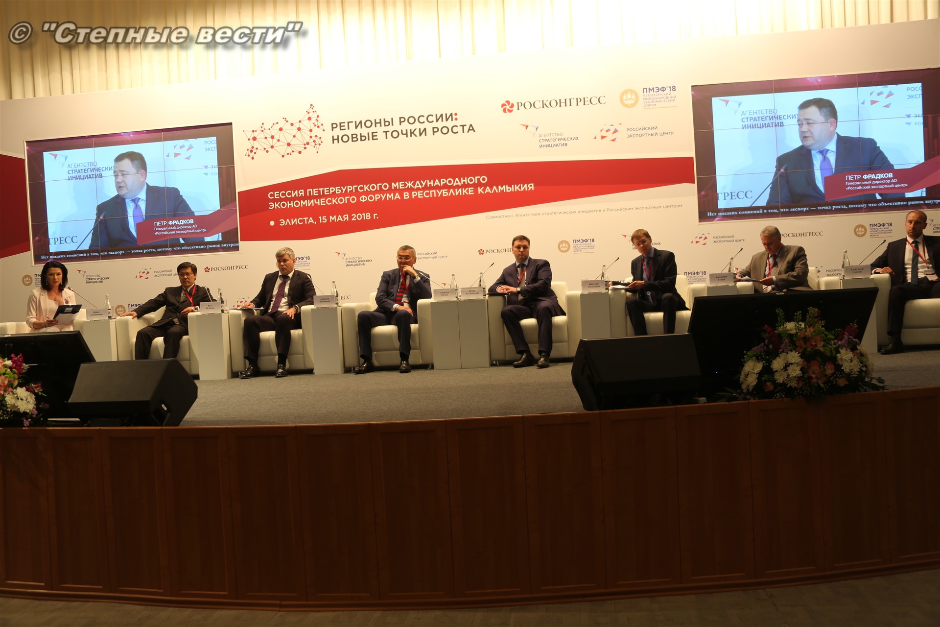 В Элисте 15 мая состоялась выездная сессия Петербуржского международного экономического форума «Регионы России: новые точки роста. Инвестиции в реальный сектор». Организатором мероприятия выступил Фонд «Росконгресс» совместно с Российским экспортным центром и Агентством стратегических инициатив.