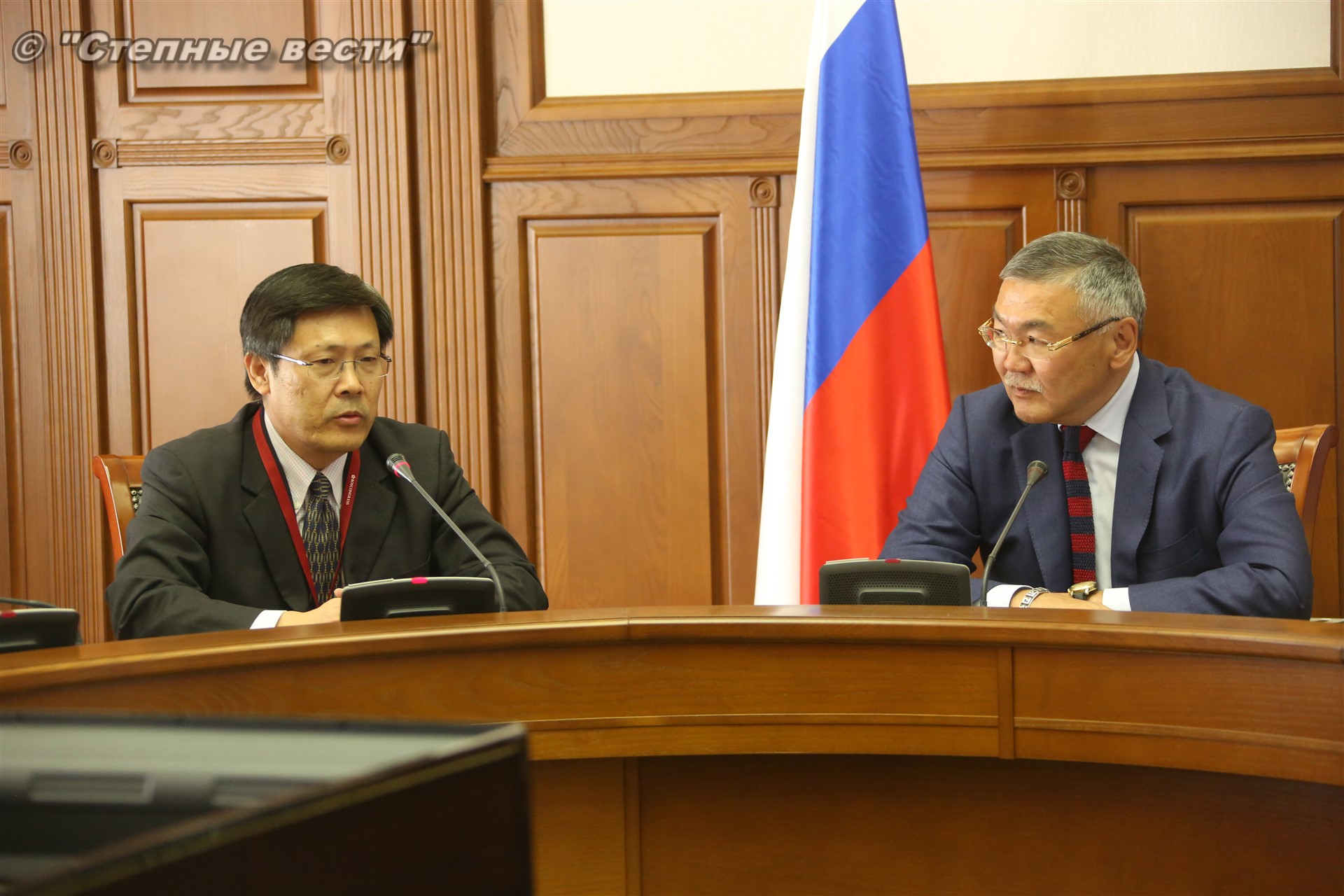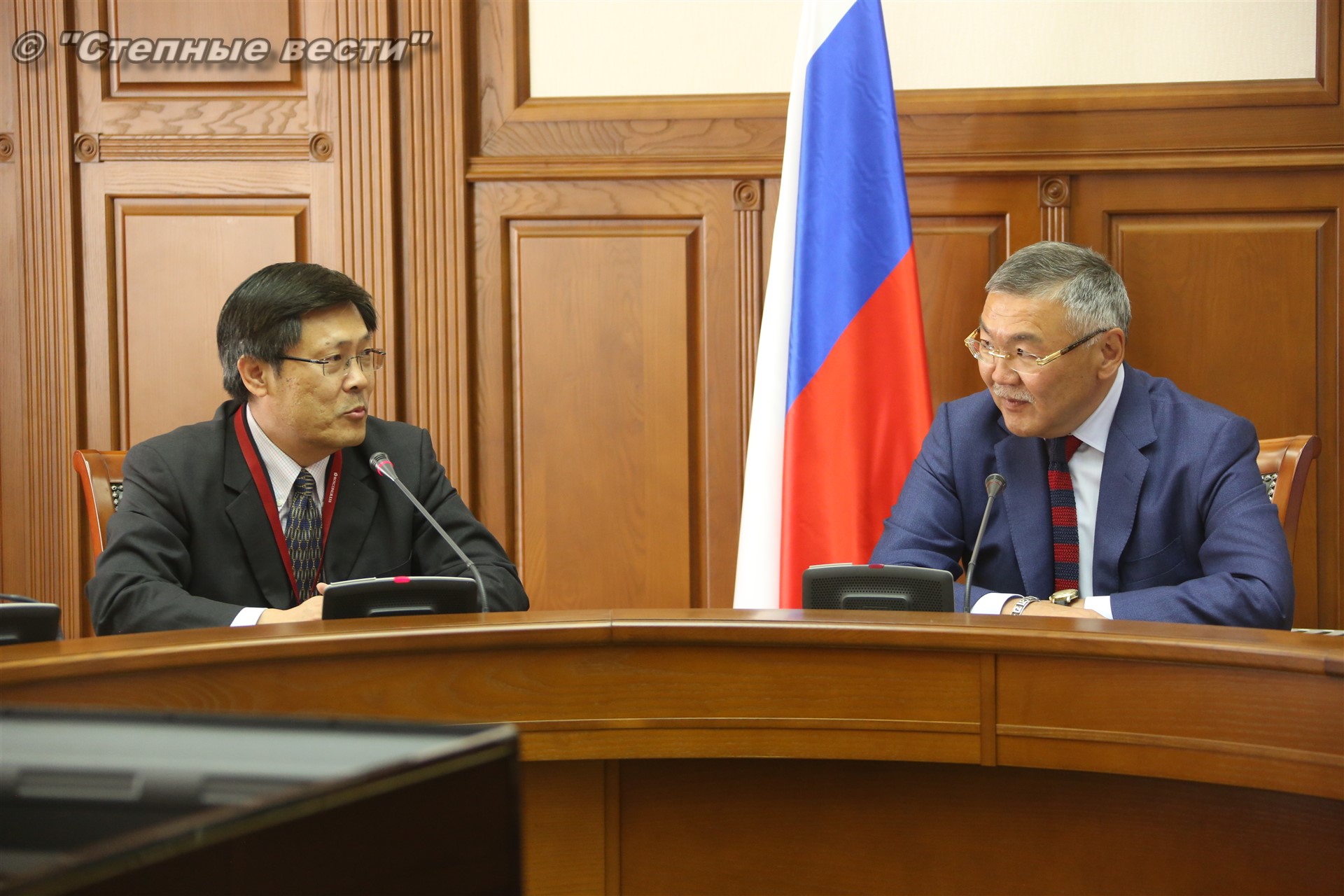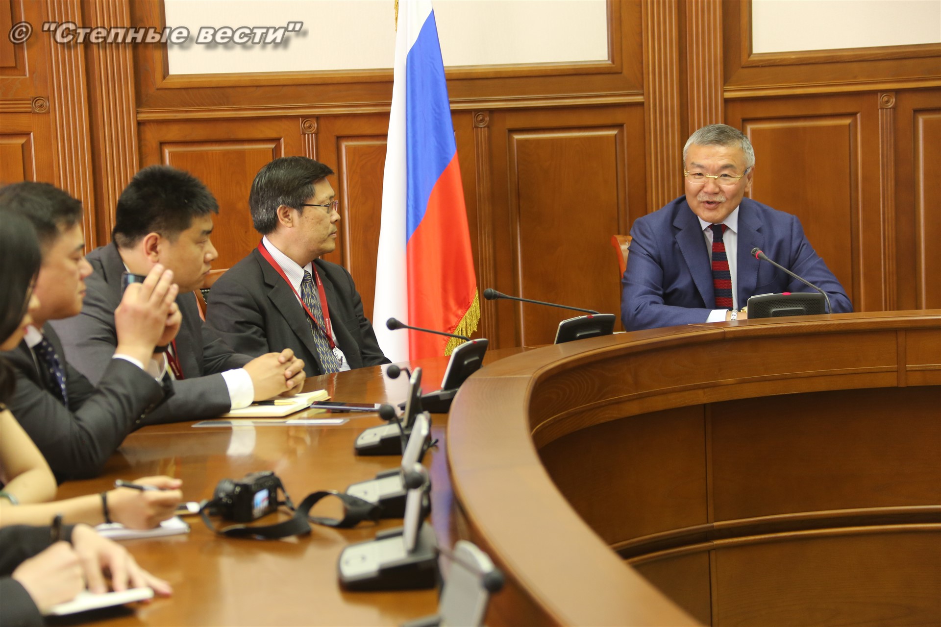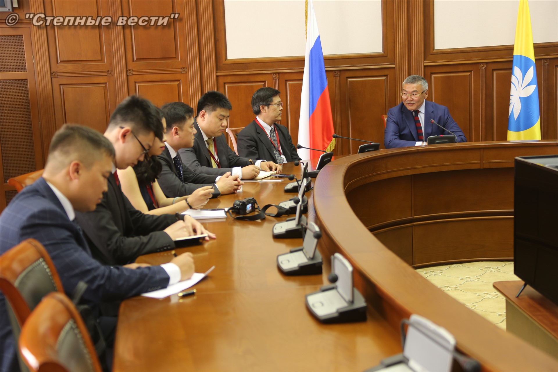 В рамках состоявшейся в Элисте выездной сессии Петербургского международного экономического форума «Регионы России: новые точки роста» Глава Калмыкии Алексей Орлов встретился с делегацией деловых кругов Китайской Народной Республики, которую возглавлял главный представитель Китайской национальной нефтегазовой корпорации (CNPC) в России Ван Шэнцзы.