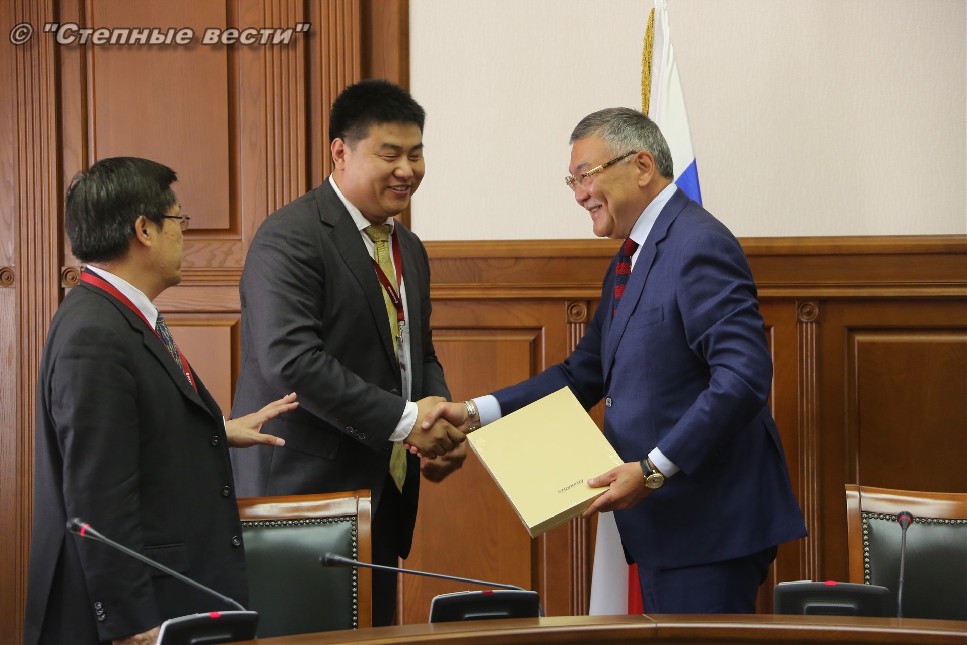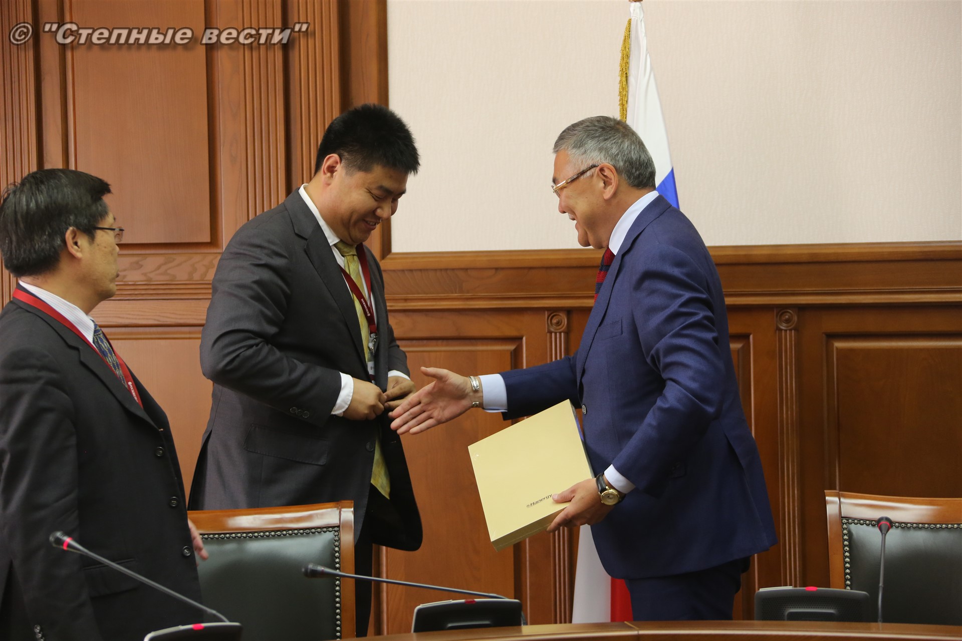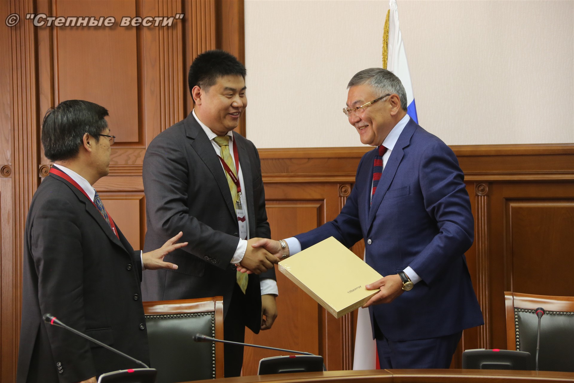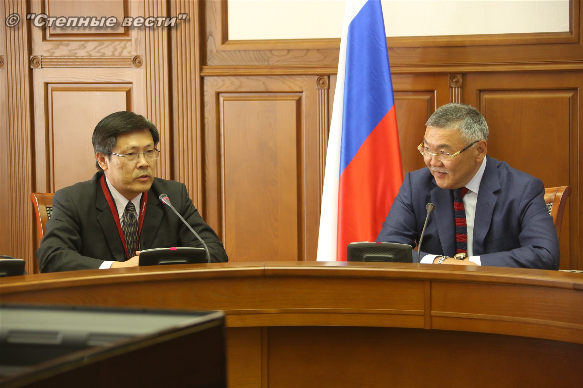 В рамках состоявшейся в Элисте выездной сессии Петербургского международного экономического форума «Регионы России: новые точки роста» Глава Калмыкии Алексей Орлов встретился с делегацией деловых кругов Китайской Народной Республики, которую возглавлял главный представитель Китайской национальной нефтегазовой корпорации (CNPC) в России Ван Шэнцзы.