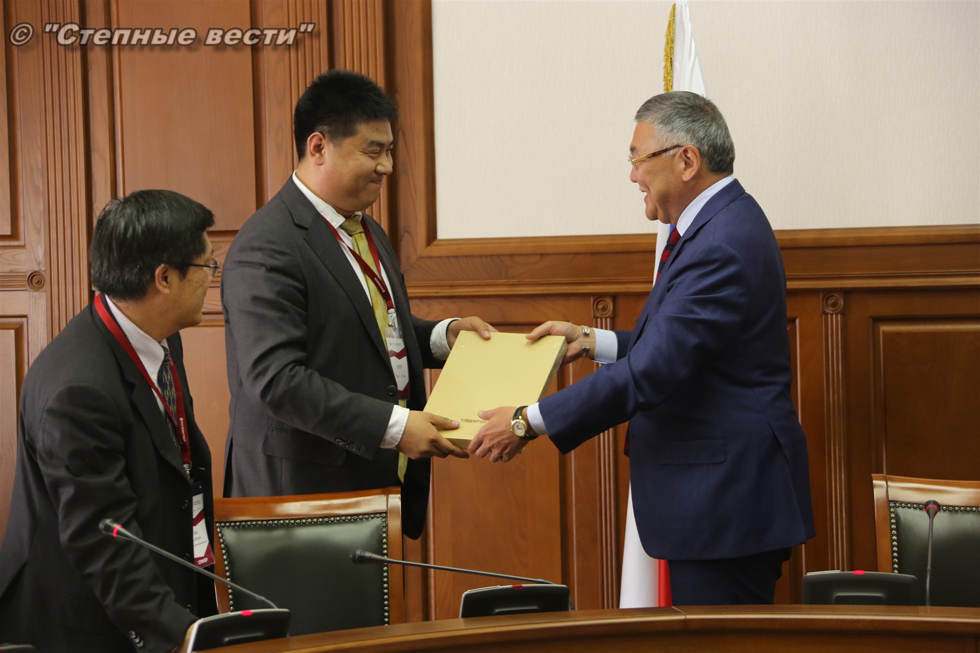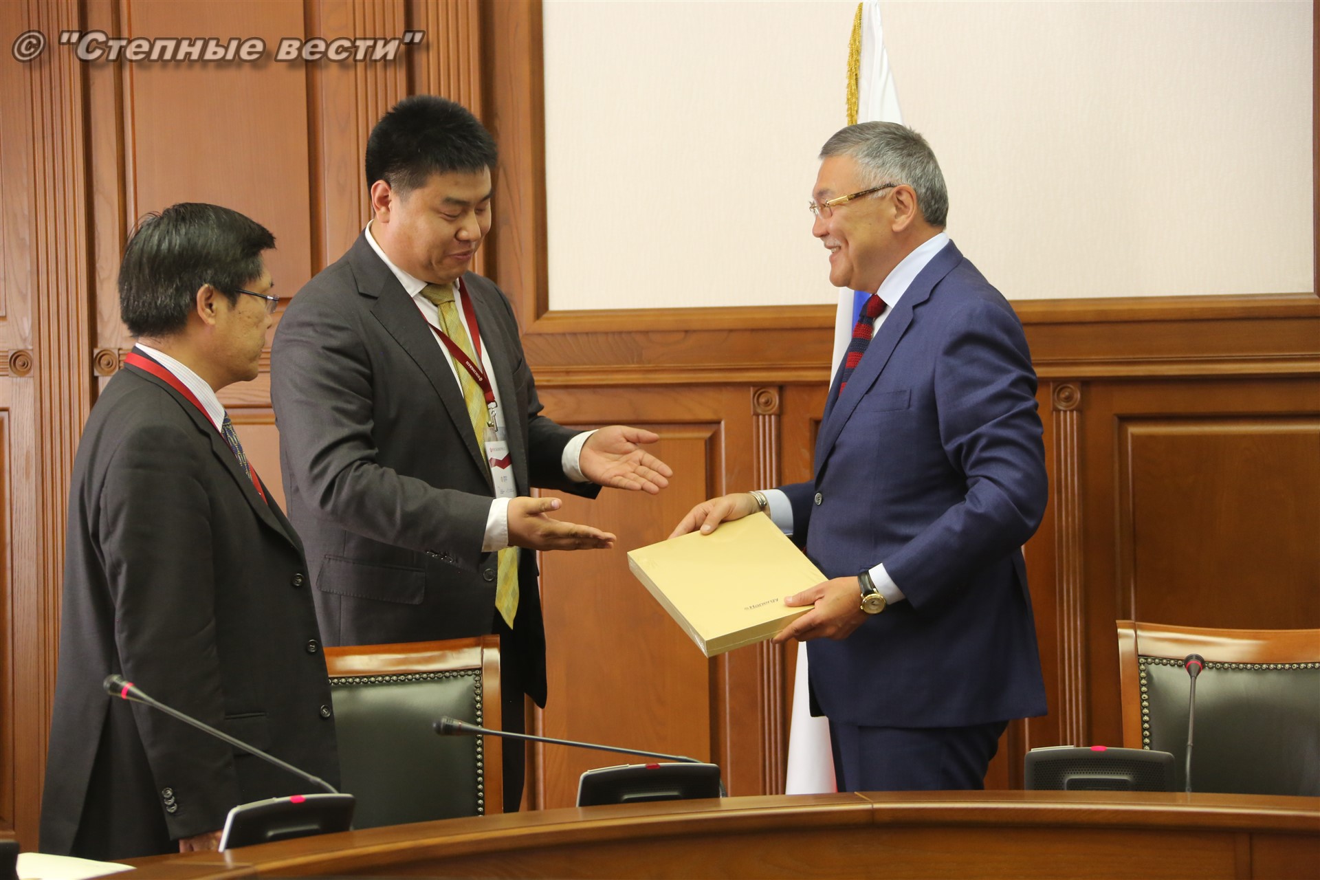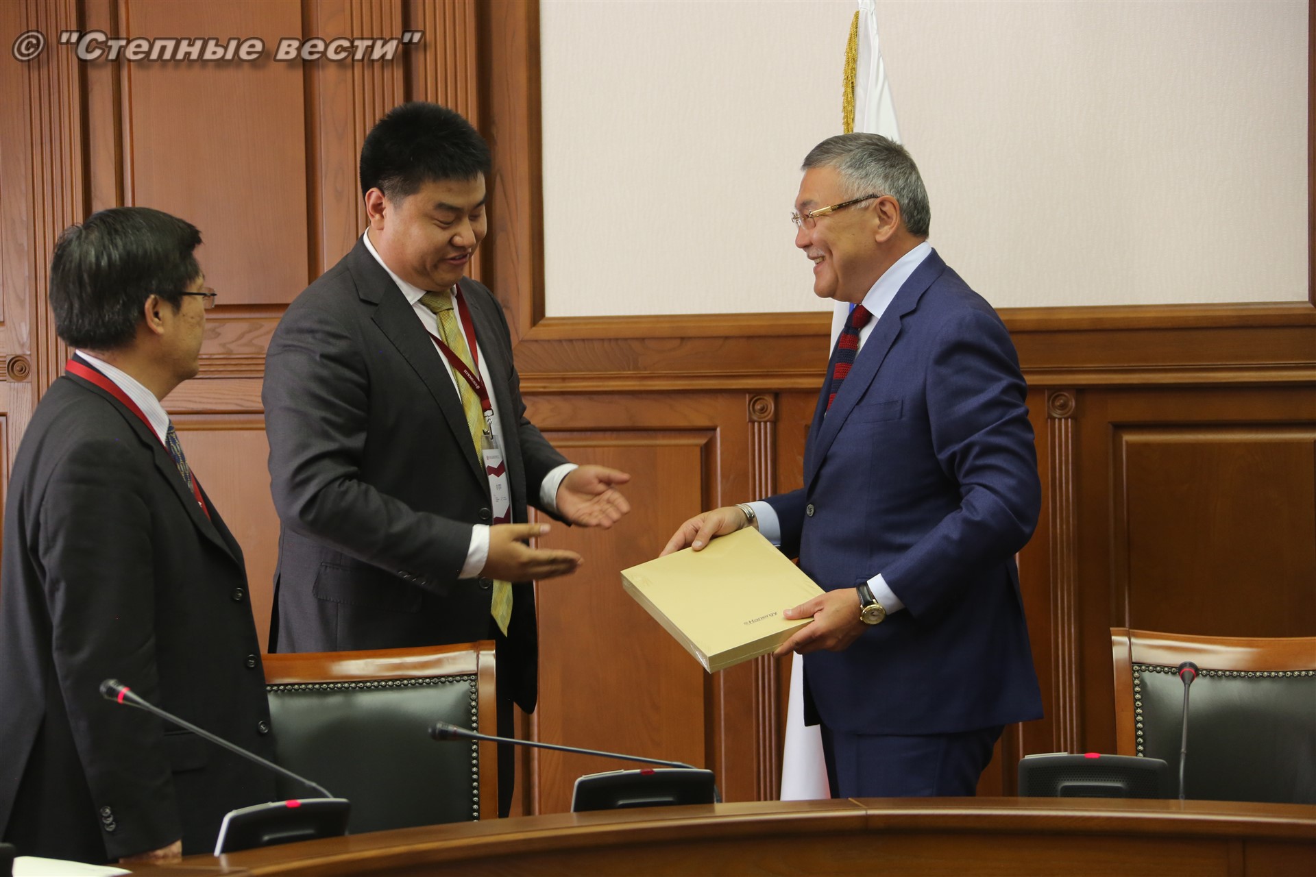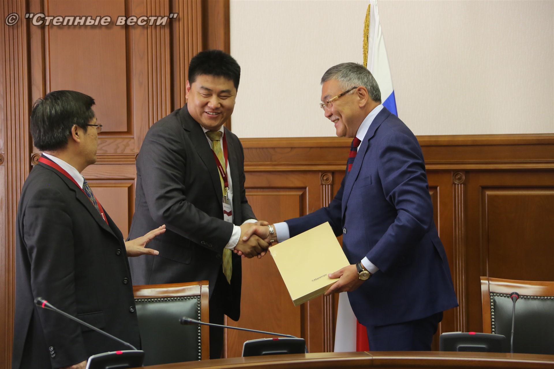 В рамках состоявшейся в Элисте выездной сессии Петербургского международного экономического форума «Регионы России: новые точки роста» Глава Калмыкии Алексей Орлов встретился с делегацией деловых кругов Китайской Народной Республики, которую возглавлял главный представитель Китайской национальной нефтегазовой корпорации (CNPC) в России Ван Шэнцзы.