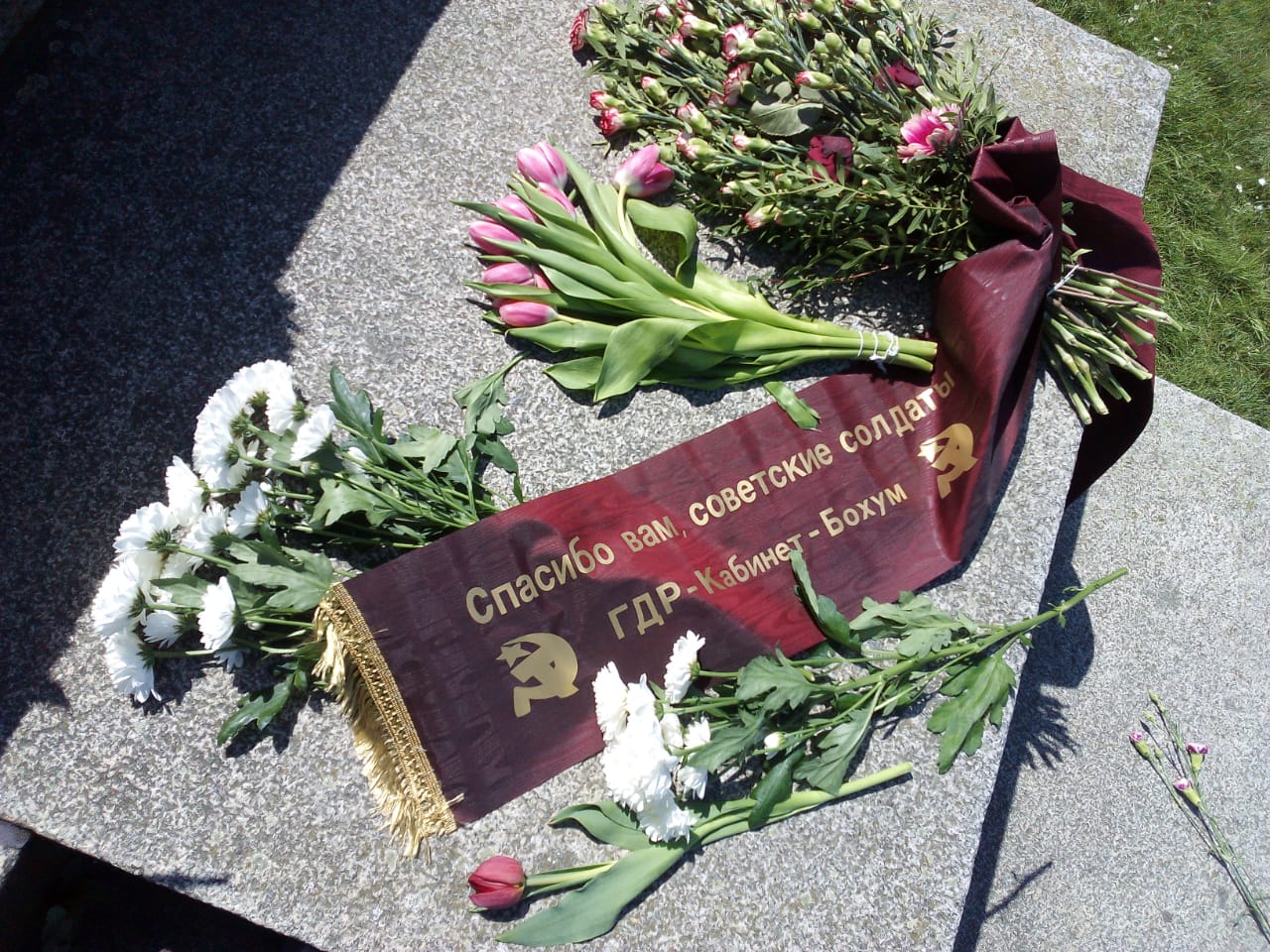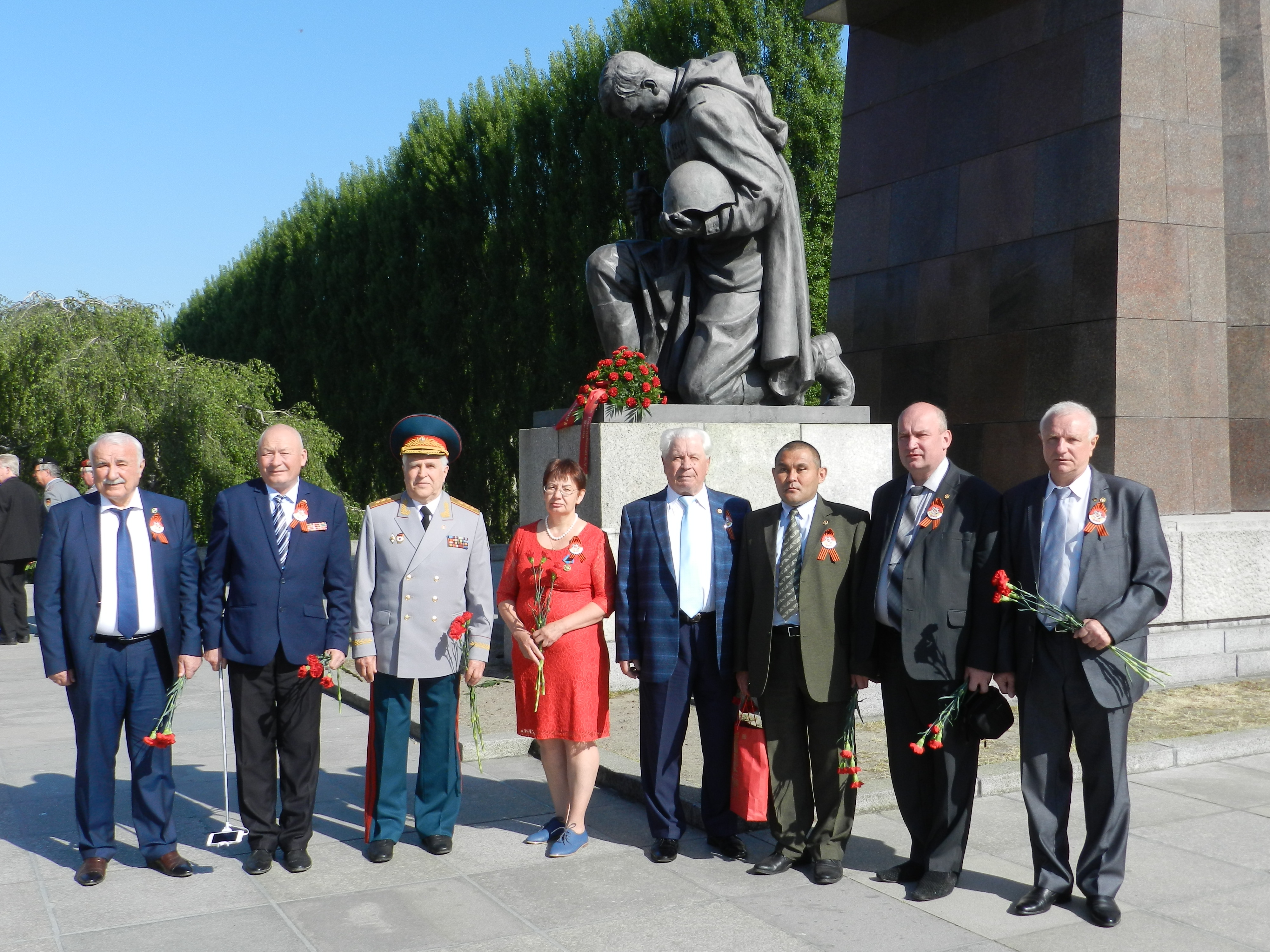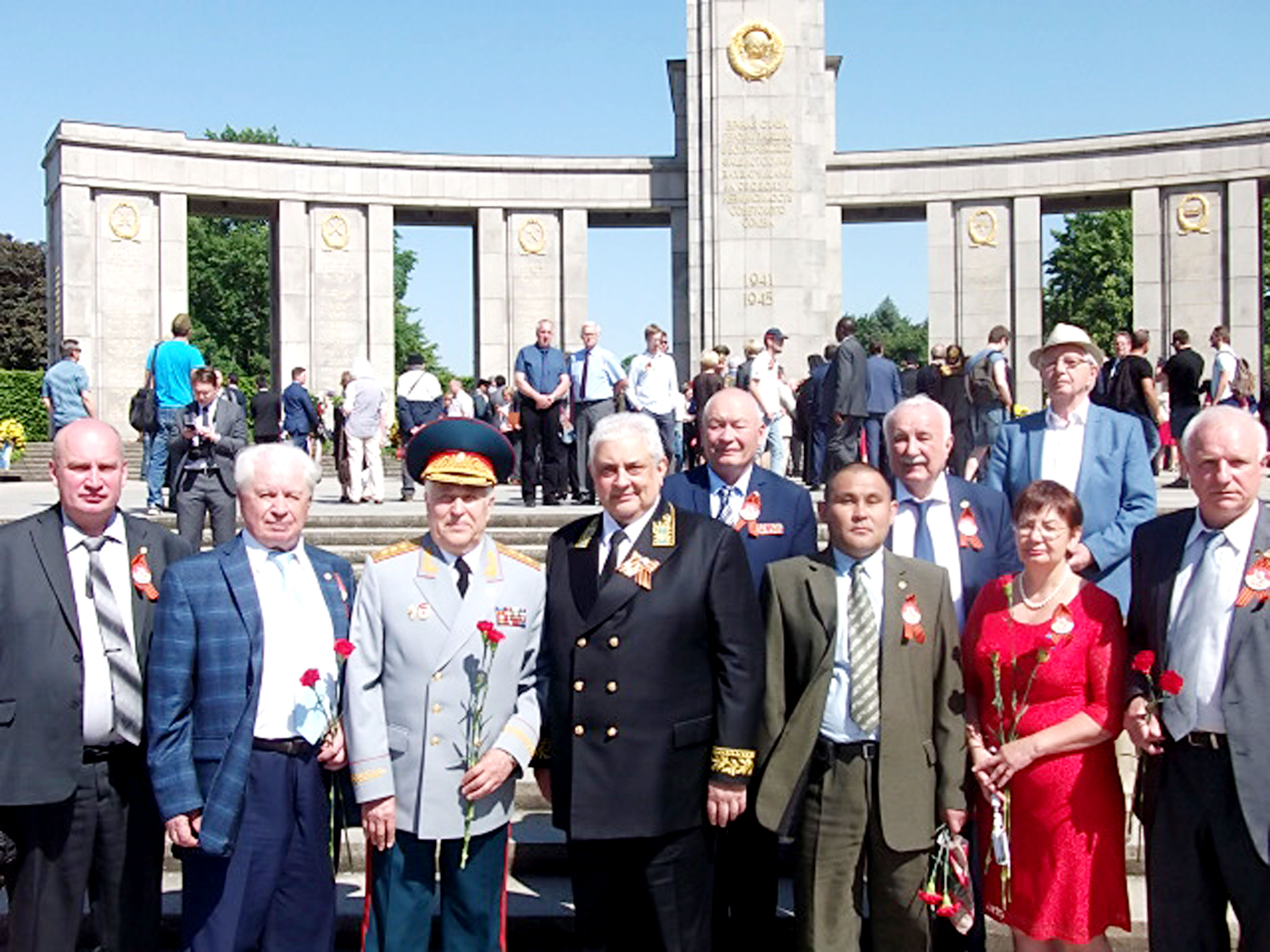 Потом опять были экскурсии, встречи, возложения венков, а 9 мая все направились в парк Тиргартен, где находится другой мемориал павшим советским воинам. Там состоялся небольшой митинг в присутствии членов общественной организации «Друзья народов России» и посла РФ в Германии Сергея Нечаева.