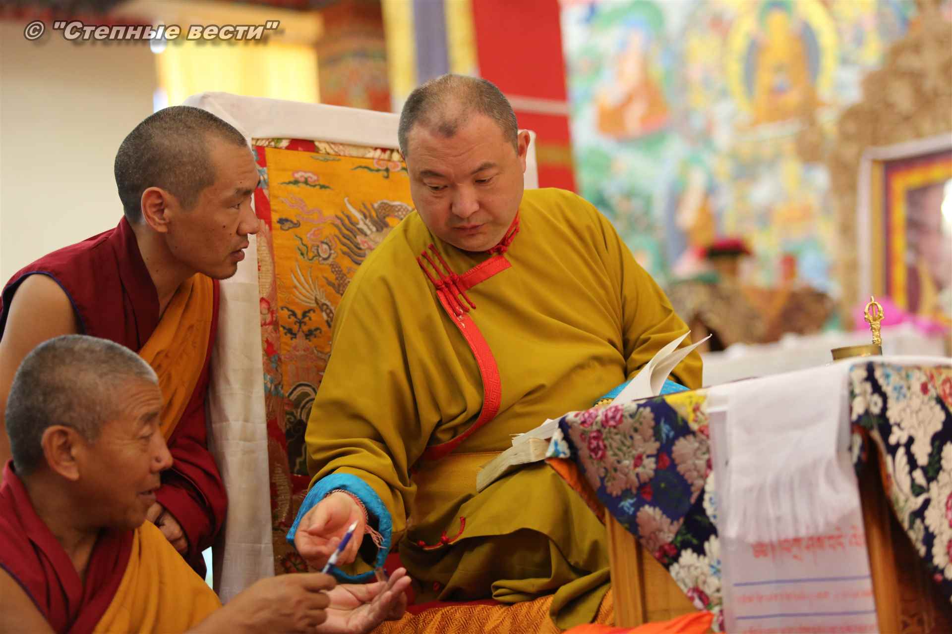 В 15 часов в молельном зале хурула Кунделинг Ринпоче дал комментарий к учению известного буддийского учителя о Двенадцати чудесных деяниях Будды Шакьямуни. Эта лекция была последним мероприятием программы его двухнедельного пребывания в Калмыкии. Завтра Его Преосвященство отбудет в Москву.