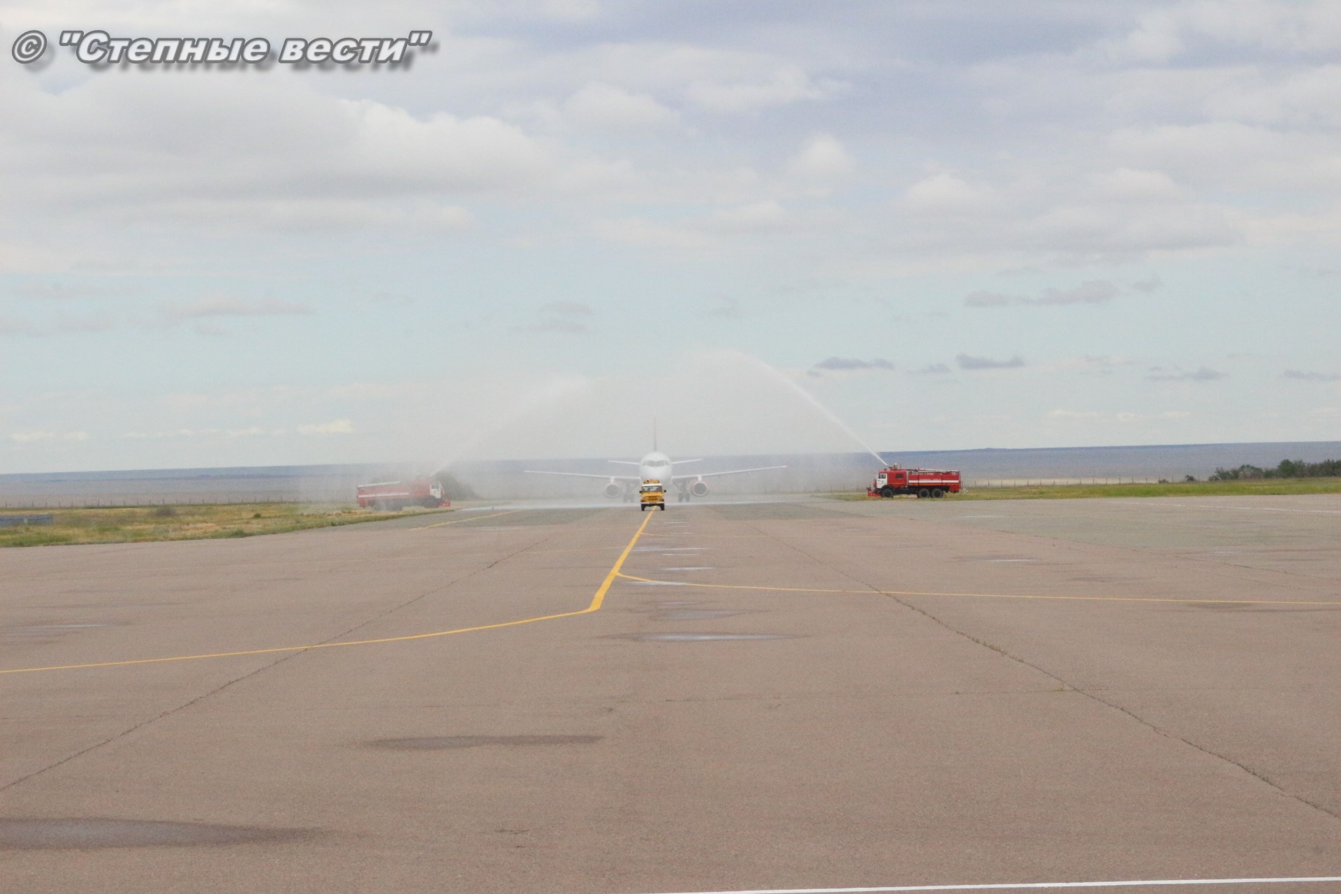 самолета. Увидели традицию авиации: прибывший самолет проходил сквозь струи воды, которая подавалась из брандспойтов пожарных машин. Вот таким образом «обмыли» это событие. Кто-то из толпы сказал, что это такая давняя традиция в авиации встречать новые авиакомпании и рейсы в аэропортах.