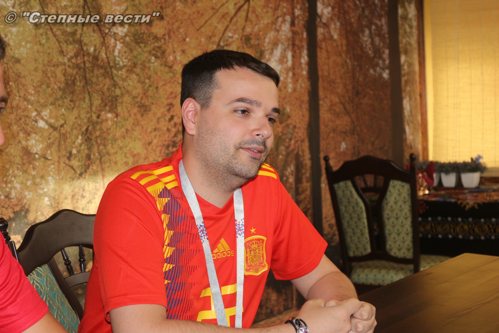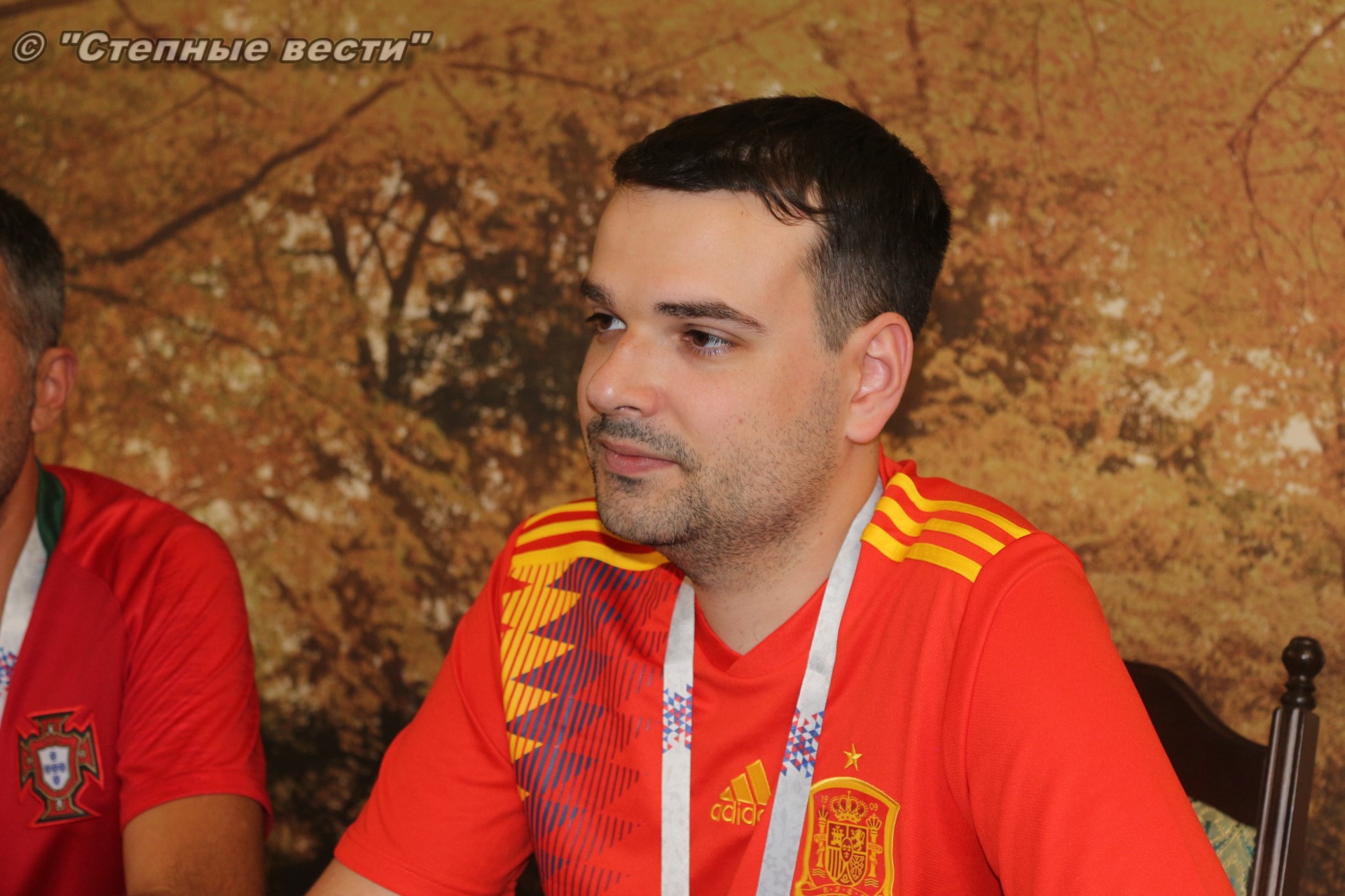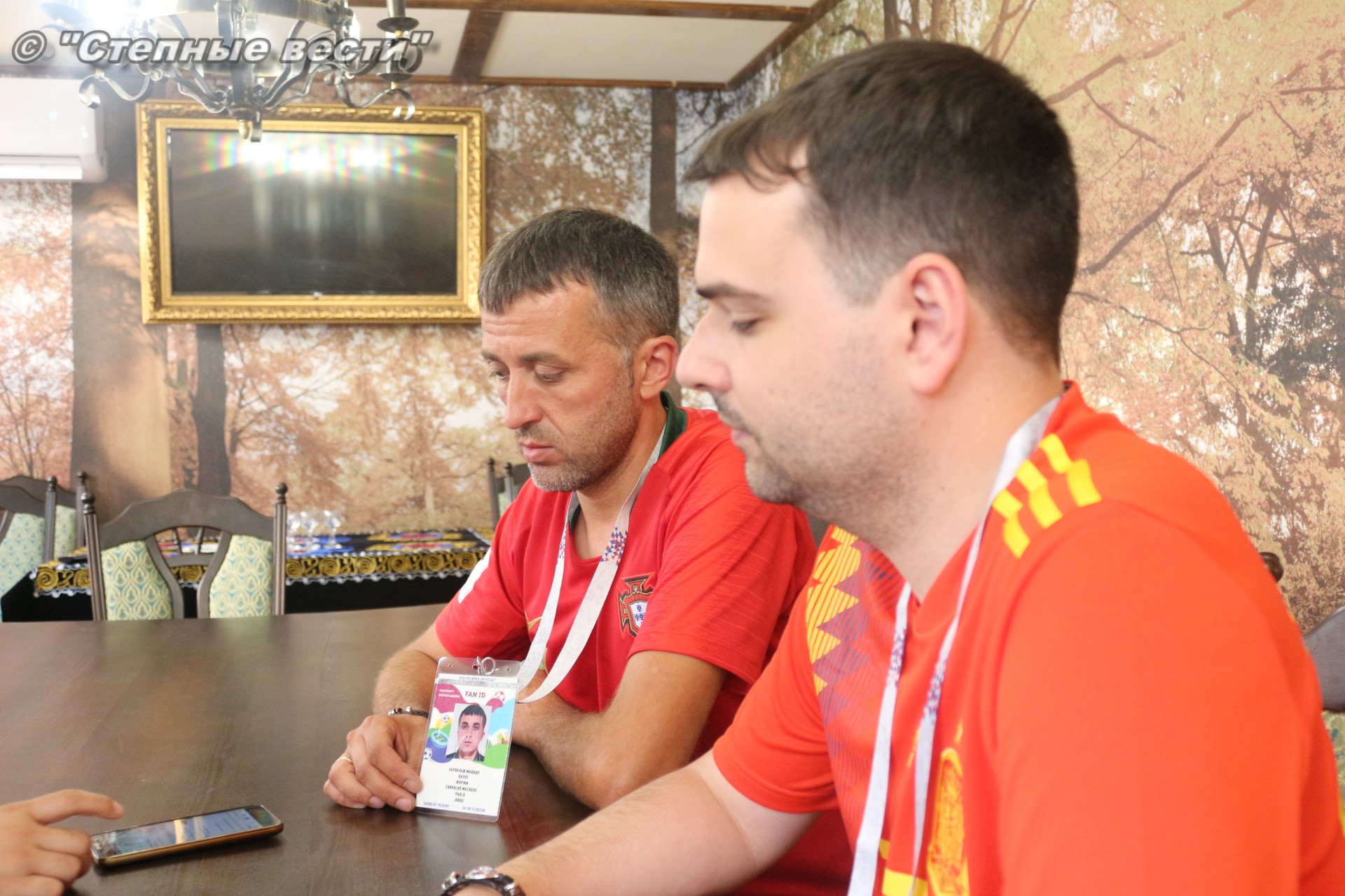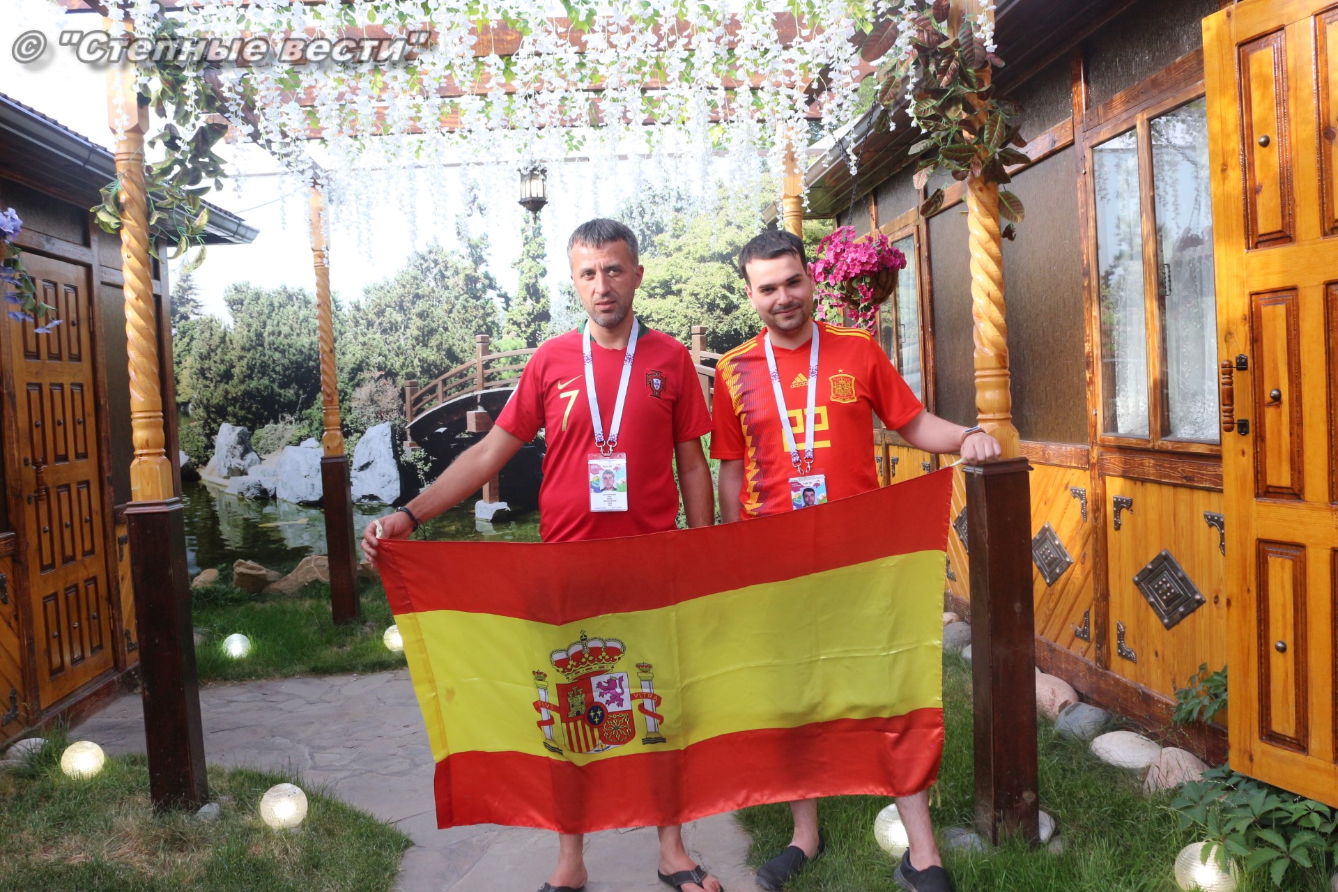 Ну а сегодня будет проведен полноценный игровой день, в котором будет сыграно 3 матча. И, конечно же, столбом стоит игра между грандами европейского и мирового футбола сборными Испании и Португалии, которая пройдет в Сочи. В преддверии этой игры мне посчастливилось в Элисте встретить болельщиков этих команд Паулу Жоржи Карвальо Машаду и Педро Фернандес Кастильо. Особая благодарность за организованную встречу с ними фотографу Виталию Катышкину. В Россию молодые люди приехали, как выяснилось во время беседы, потому что они являются калмыцкими зятьями.