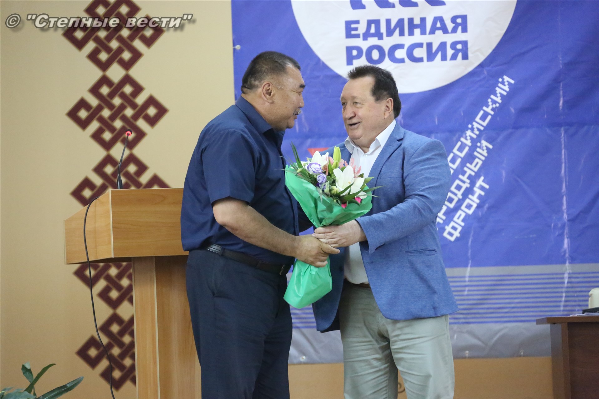 Перед началом заседания глава республики Алексей Орлов вручил благодарственные письма Владимира Путина за активное участие в работе по подготовке и проведению выборов Президента Российской Федерации. В числе награжденных признание главы государства заслужила и директор-главный редактор АУ РК «Республиканская интернет-газета «Степные вести» Намджил Умиралиева.