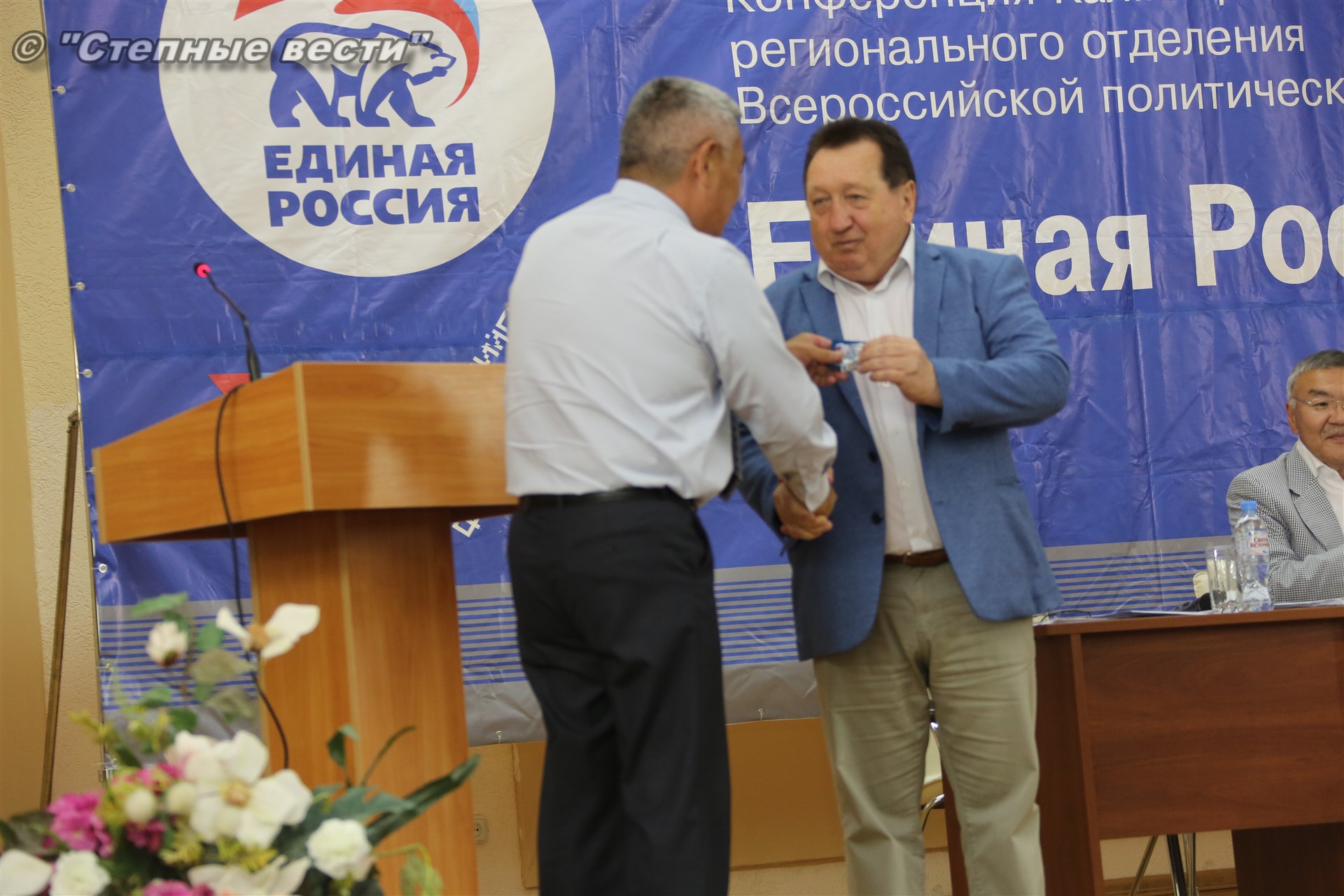 121-го делегата от местных отделений партии, приняли участие член Высшего совета «Единой России», Глава Калмыкии Алексей Орлов, заместитель руководителя департамента по работе в Северо-Кавказском и Южном федеральных округах ЦИК партии «Единая Россия» Анастасия Супрунова и советник этого департамента Виталий Колпашников, представители Управления Минюста РФ по РК, Избирательной комиссии РК, республиканских министерств и ведомств, члены регионального политического совета, исполкома и контрольной комиссии, совета сторонников партии, а также представители общественности.