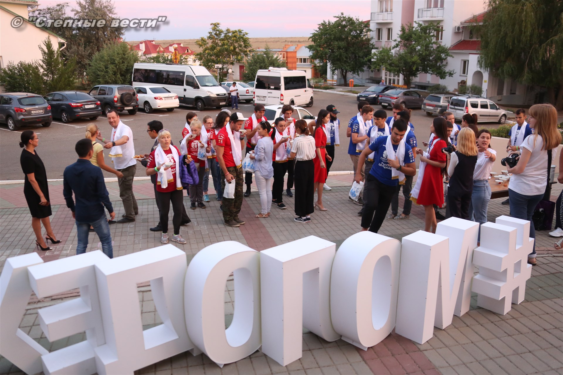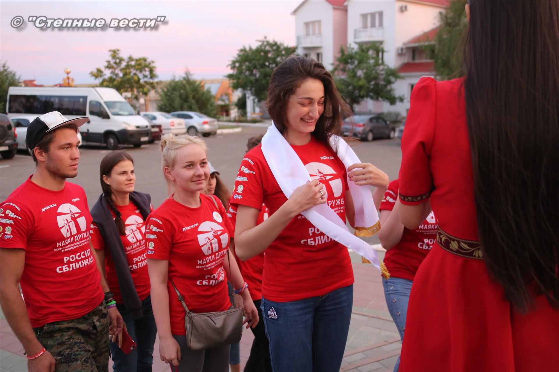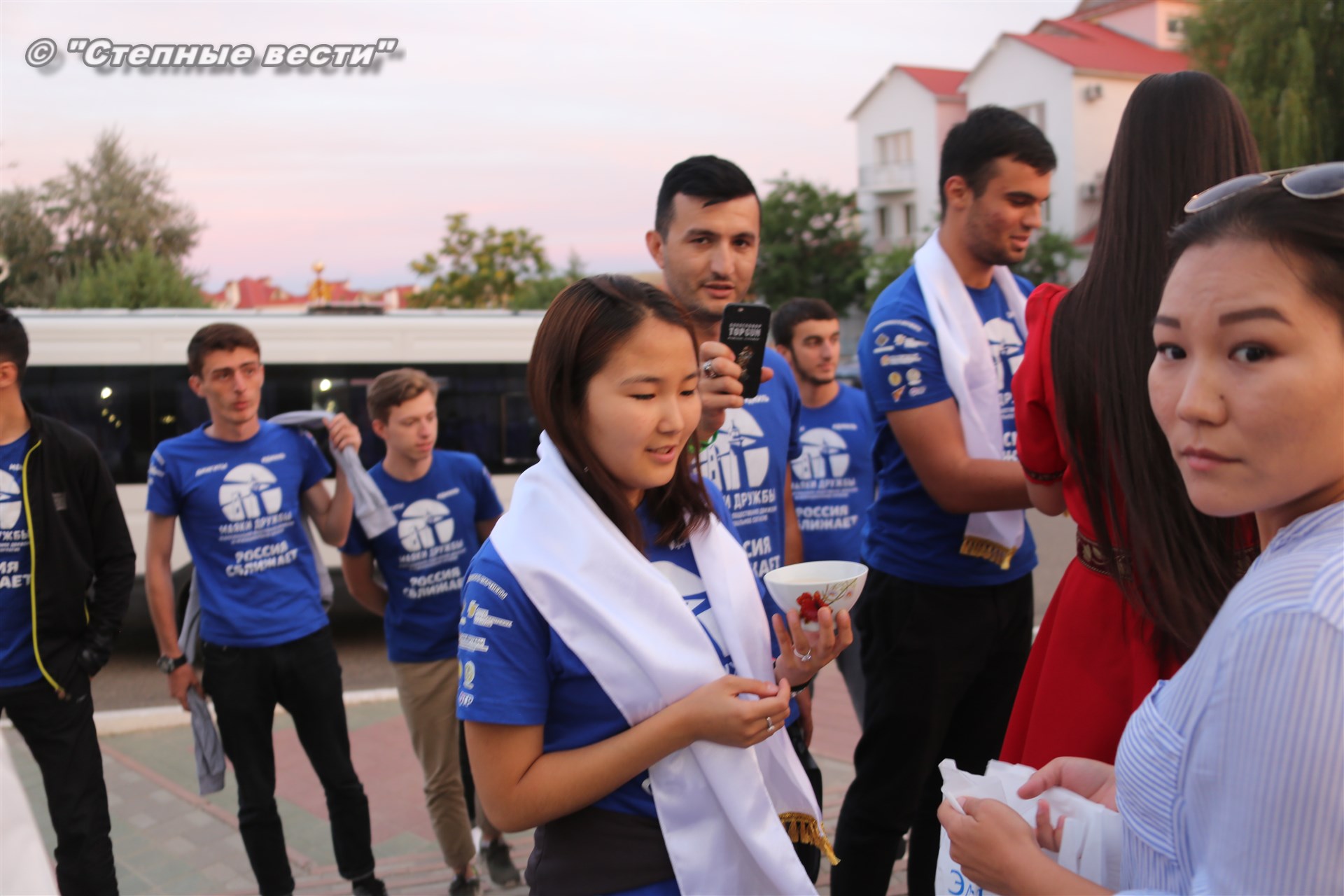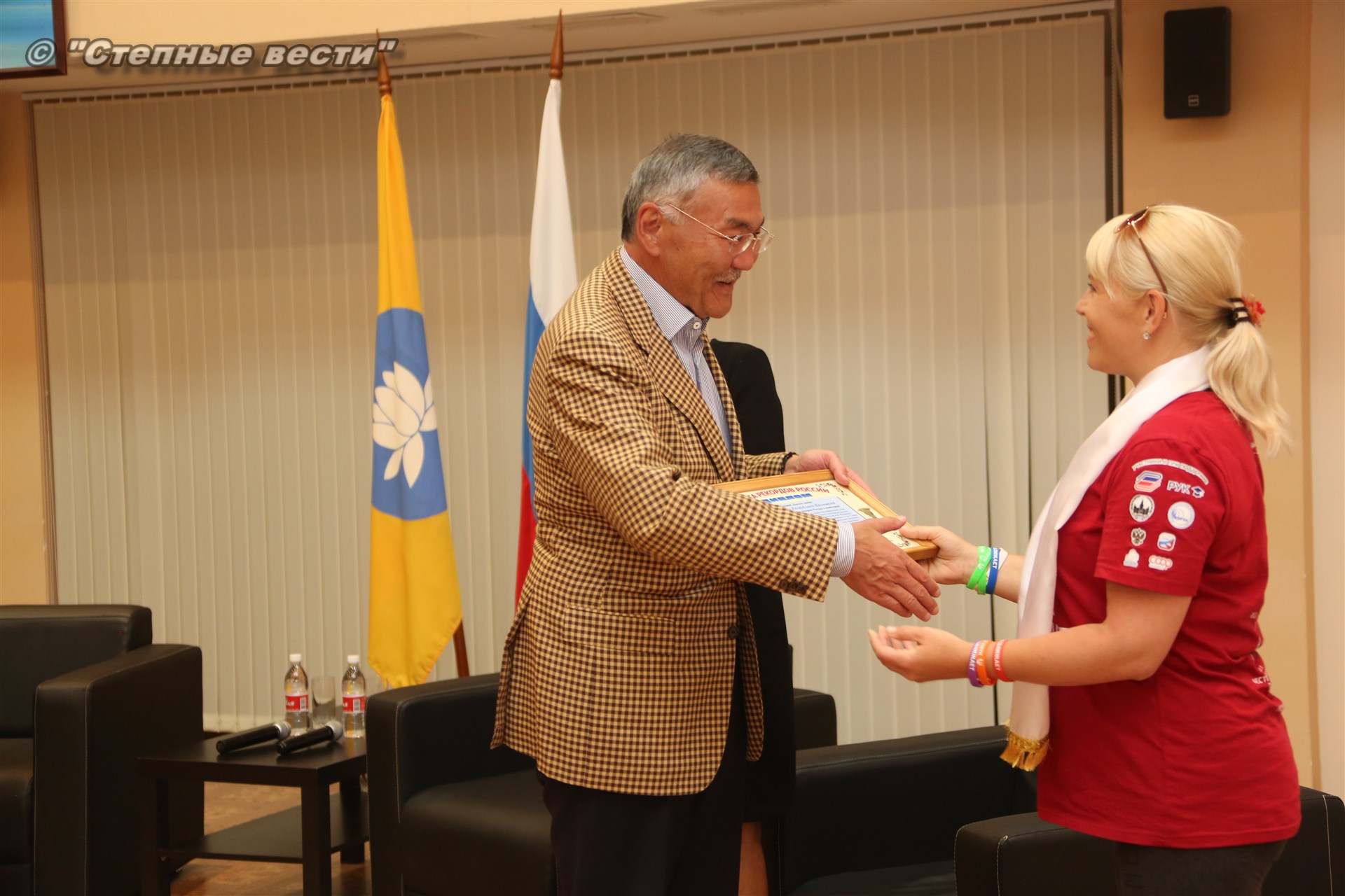 И под занавес мероприятия Главу Калмыкии Алексея Орлова все же посвятили в волонтеры, вручив специальные атрибуты с символикой проекта «Маяки дружбы. Россия сближает»-2018.
