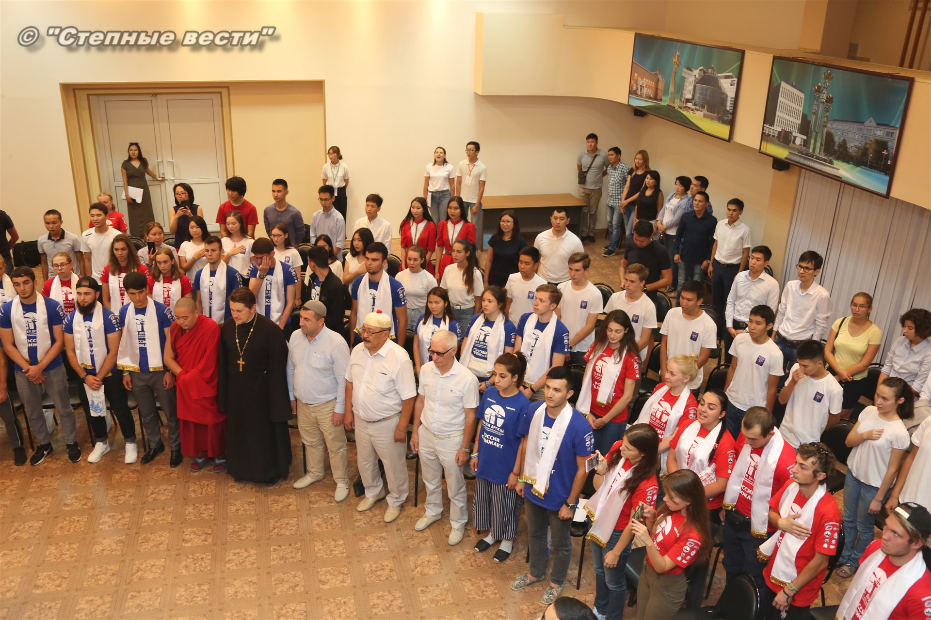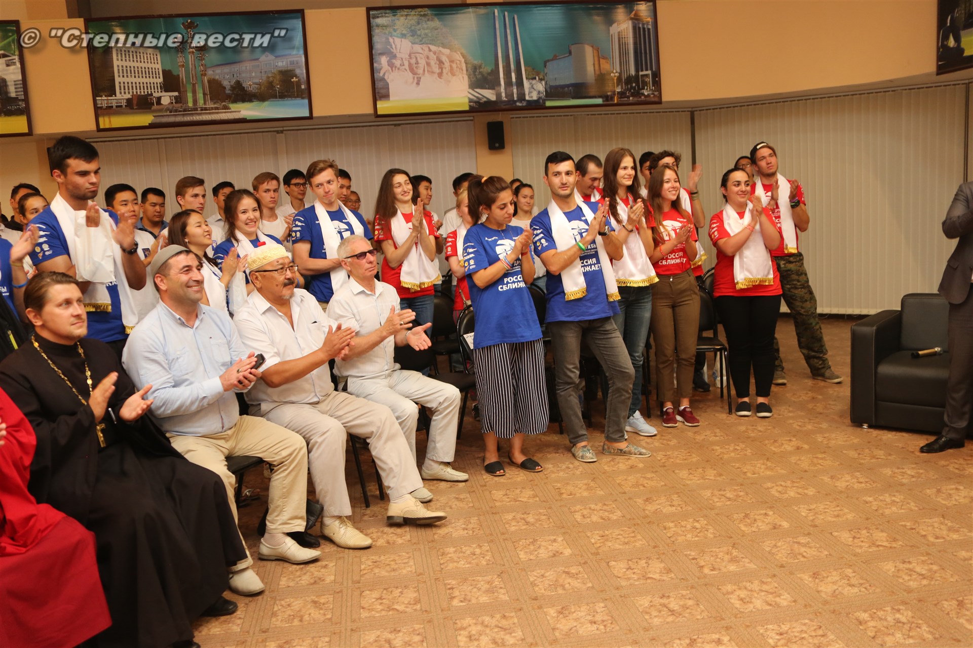 Ну, а в актовом зале Дворца шахмат участники проекта и калмыцкие волонтеры уже ожидали руководителя республики.
