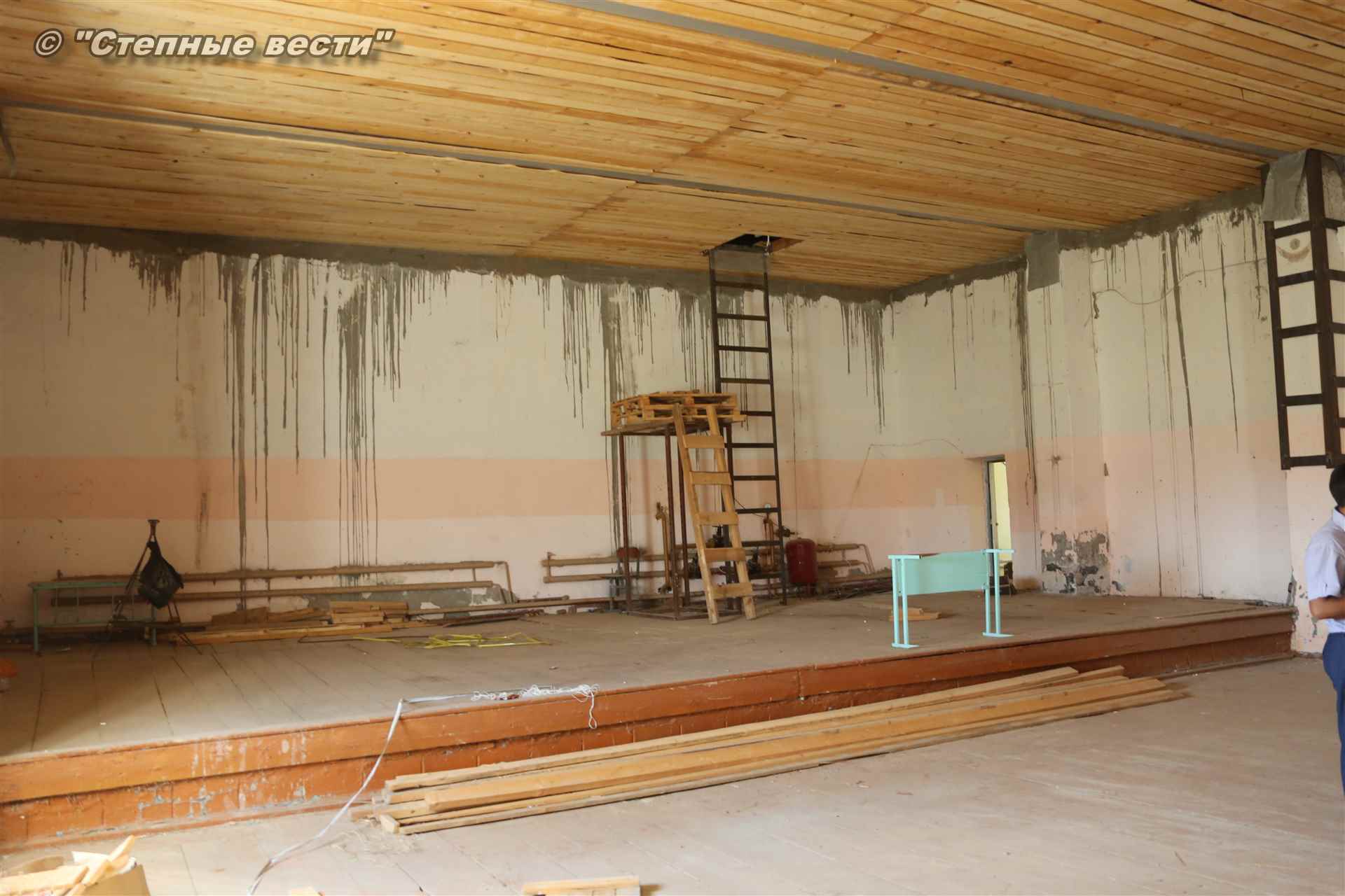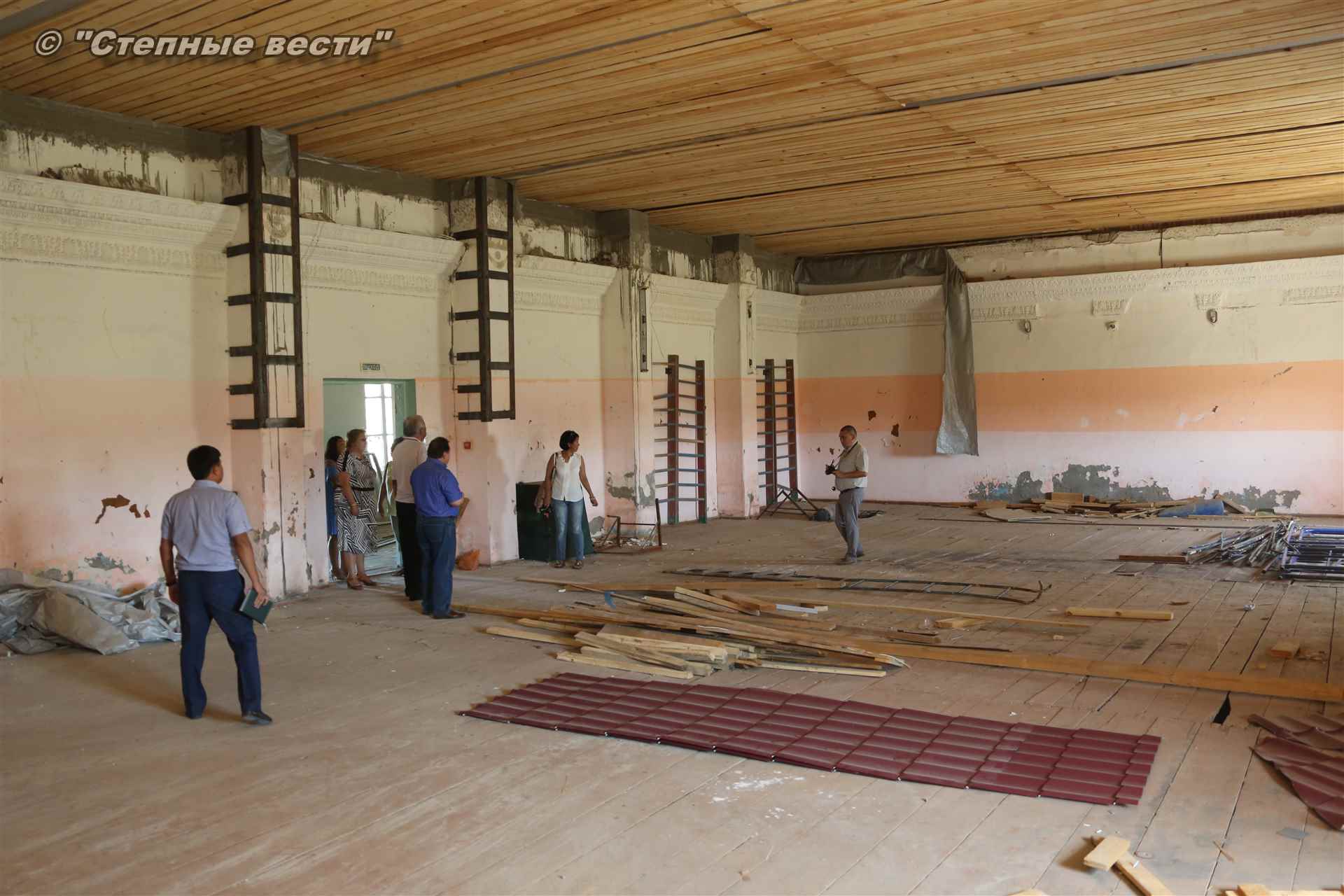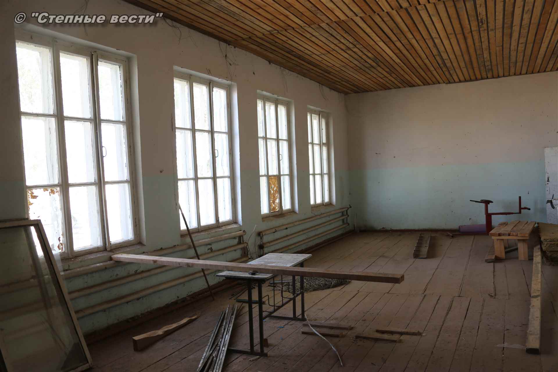 здесь проходили занятия по греко-римской борьбе, но после обрушения кровли, к счастью, тогда никто не пострадал, занятия с воспитанниками перенесли в находящийся по соседству спортзал при Доме культуры. По словам Тельмана Хаглышева, на ремонт кровли из муниципального бюджета было выделено 4 миллиона рублей, на оставшиеся работы по замене полов и ремонту помещений выделено 6 млн рублей, в том числе 1 миллион из районной казны. Завершить капремонт зала борьбы планируется в ноябре.