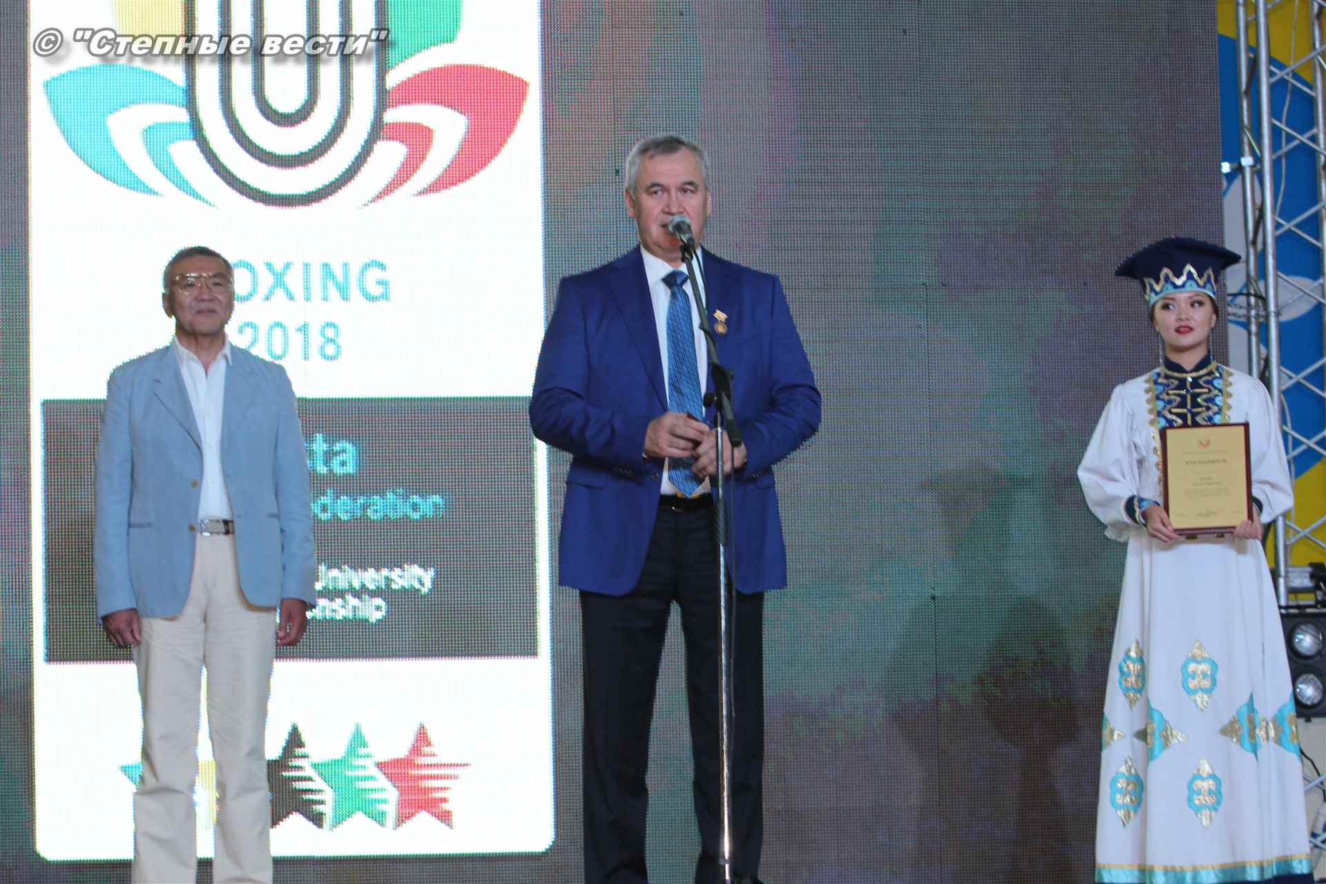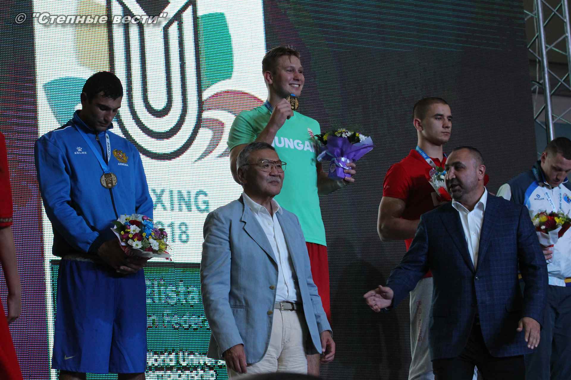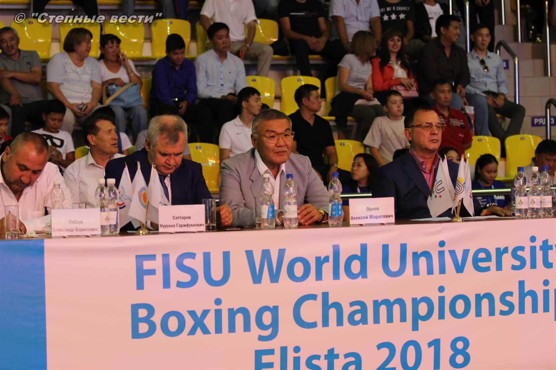 яркими олимпийскими звездами, получат новые чемпионские титулы на рингах чемпионатов Европы и мира. Я хотел бы поблагодарить, в первую очередь, конечно же, спортсменов за проявленную волю к победе, мужество, за стремление оставить о себе оставить яркий след в спортивной жизни, также Российский спортивный студенческий союз, Международную федерацию университетского спорта. Конечно же, хотел поблагодарить наших земляков – волонтеров, всех тех, кто приложил руку к проведению этого чемпионата. Мы прощаемся с чемпионатом мира, но мы говорим: «До скорой встречи!». Калмыкия, Элиста гостеприимно распахнет свои двери для других спортивных мероприятий. Для всех, кто влюбился в нашу республику, кто запомнил нашу Калмыкию. До скорой встречи!», — сказал Алексей Орлов.