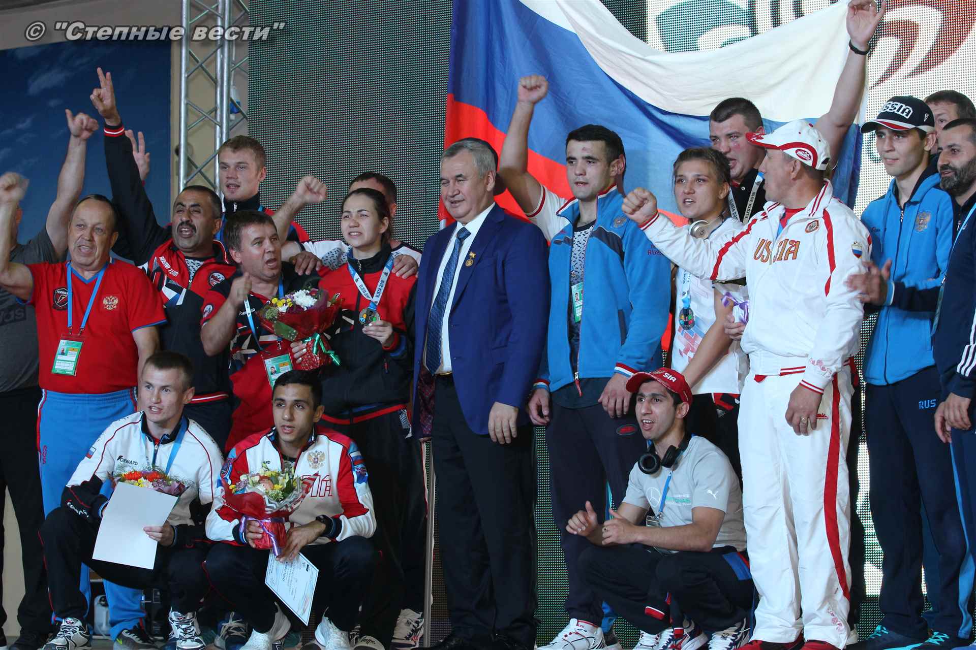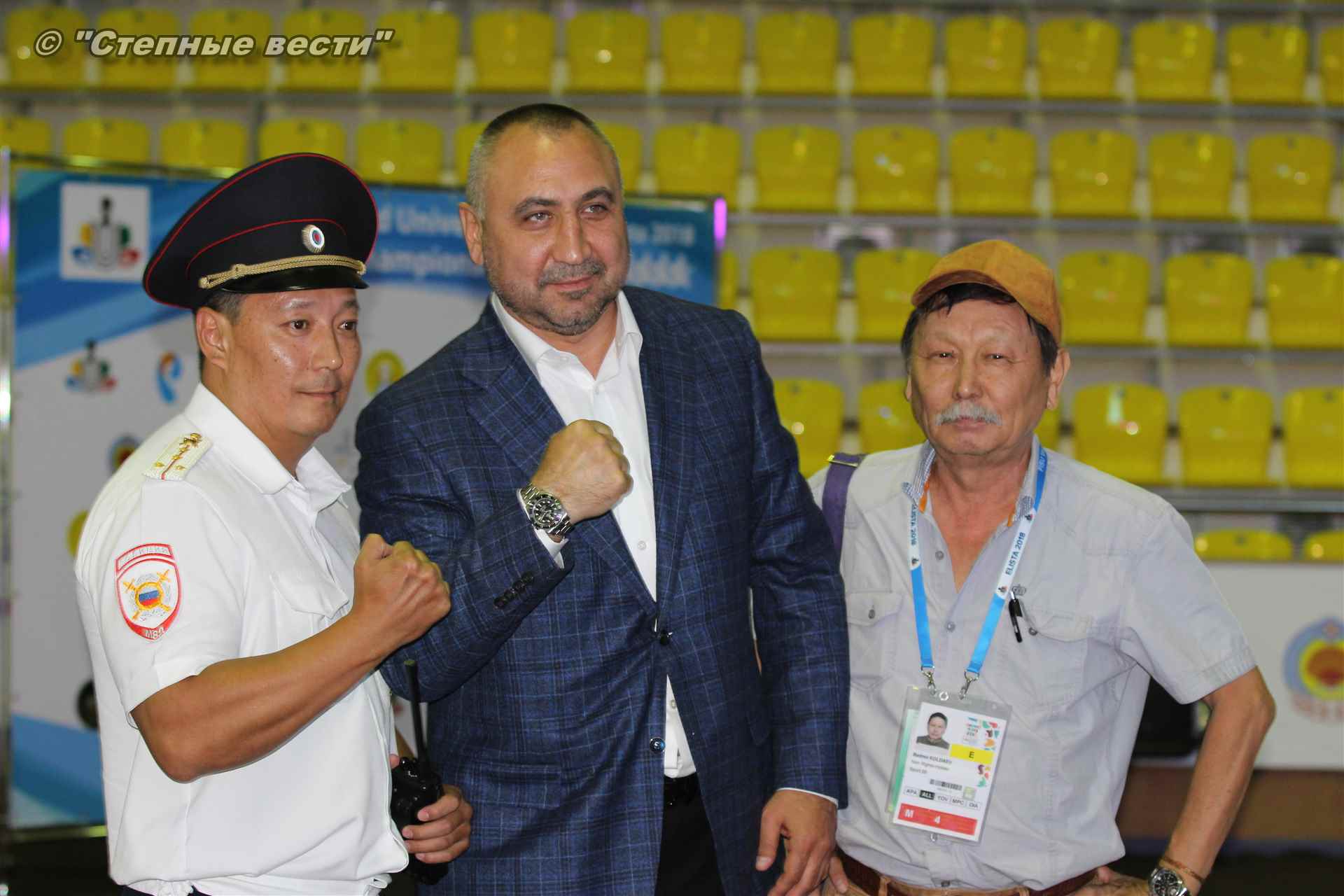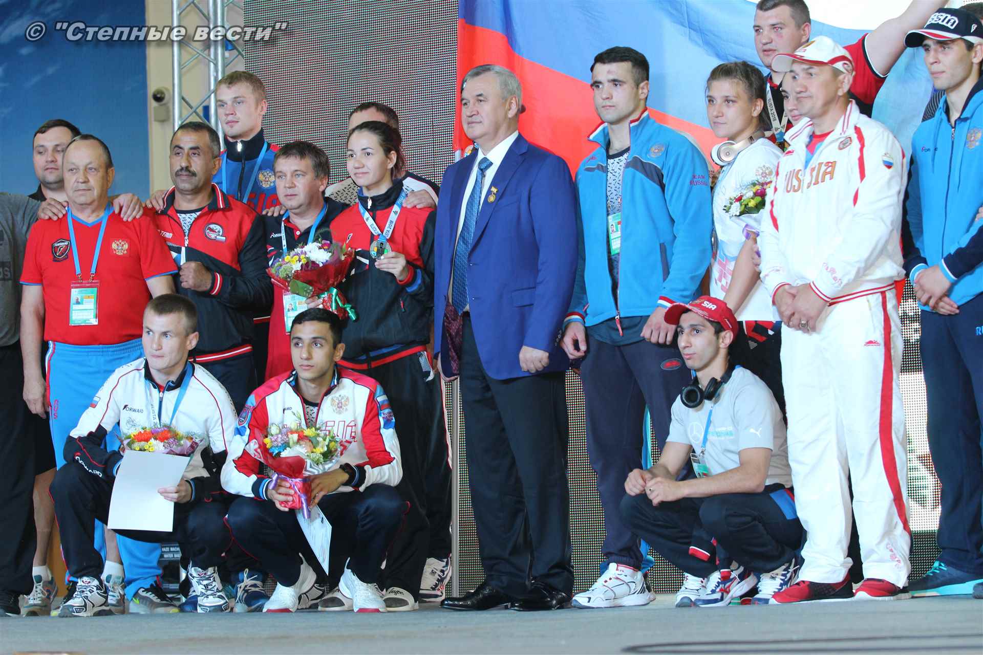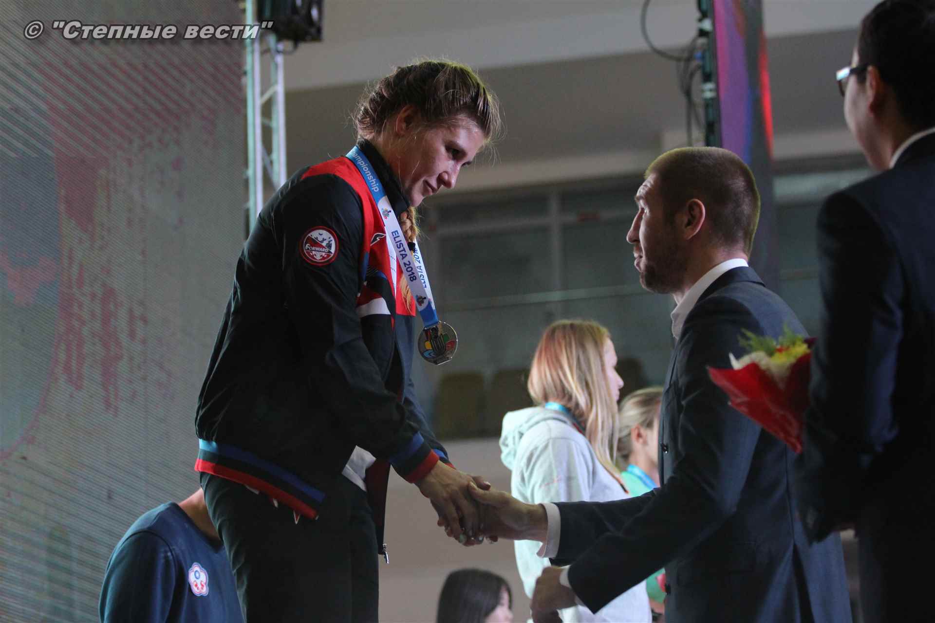 яркими олимпийскими звездами, получат новые чемпионские титулы на рингах чемпионатов Европы и мира. Я хотел бы поблагодарить, в первую очередь, конечно же, спортсменов за проявленную волю к победе, мужество, за стремление оставить о себе оставить яркий след в спортивной жизни, также Российский спортивный студенческий союз, Международную федерацию университетского спорта. Конечно же, хотел поблагодарить наших земляков – волонтеров, всех тех, кто приложил руку к проведению этого чемпионата. Мы прощаемся с чемпионатом мира, но мы говорим: «До скорой встречи!». Калмыкия, Элиста гостеприимно распахнет свои двери для других спортивных мероприятий. Для всех, кто влюбился в нашу республику, кто запомнил нашу Калмыкию. До скорой встречи!», — сказал Алексей Орлов.