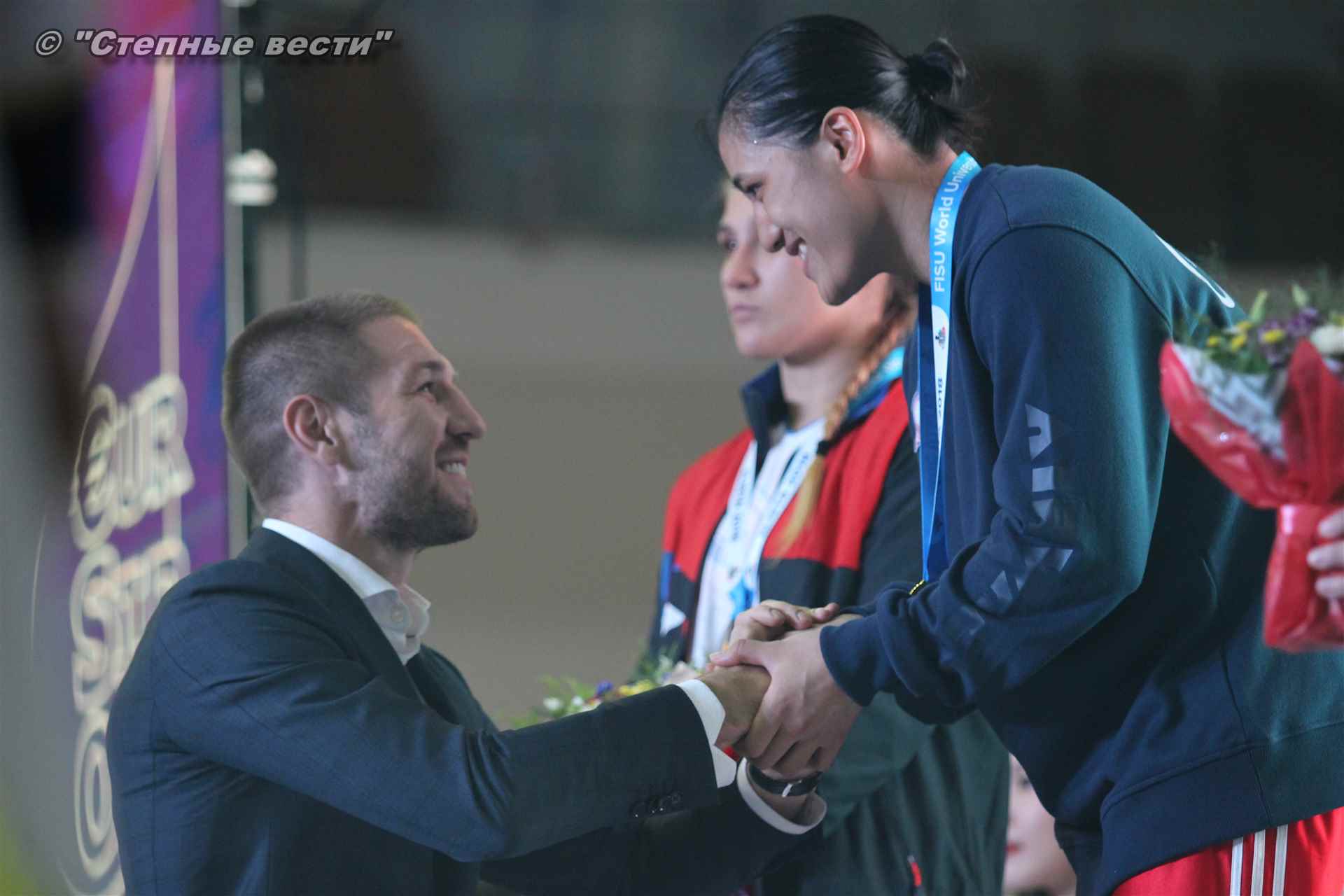 дружбы. И это все мы чувствовали на протяжении шести дней. Пример командной работы также явили волонтеры и все, кто участвовал в проведении данного чемпионата. Также правительство Калмыкии проявило большое усердие в проведении этого мероприятия. Выражаю благодарность всем за терпение и добрую волю, проявленные к нам», — отметил господин вице-президент FISU.