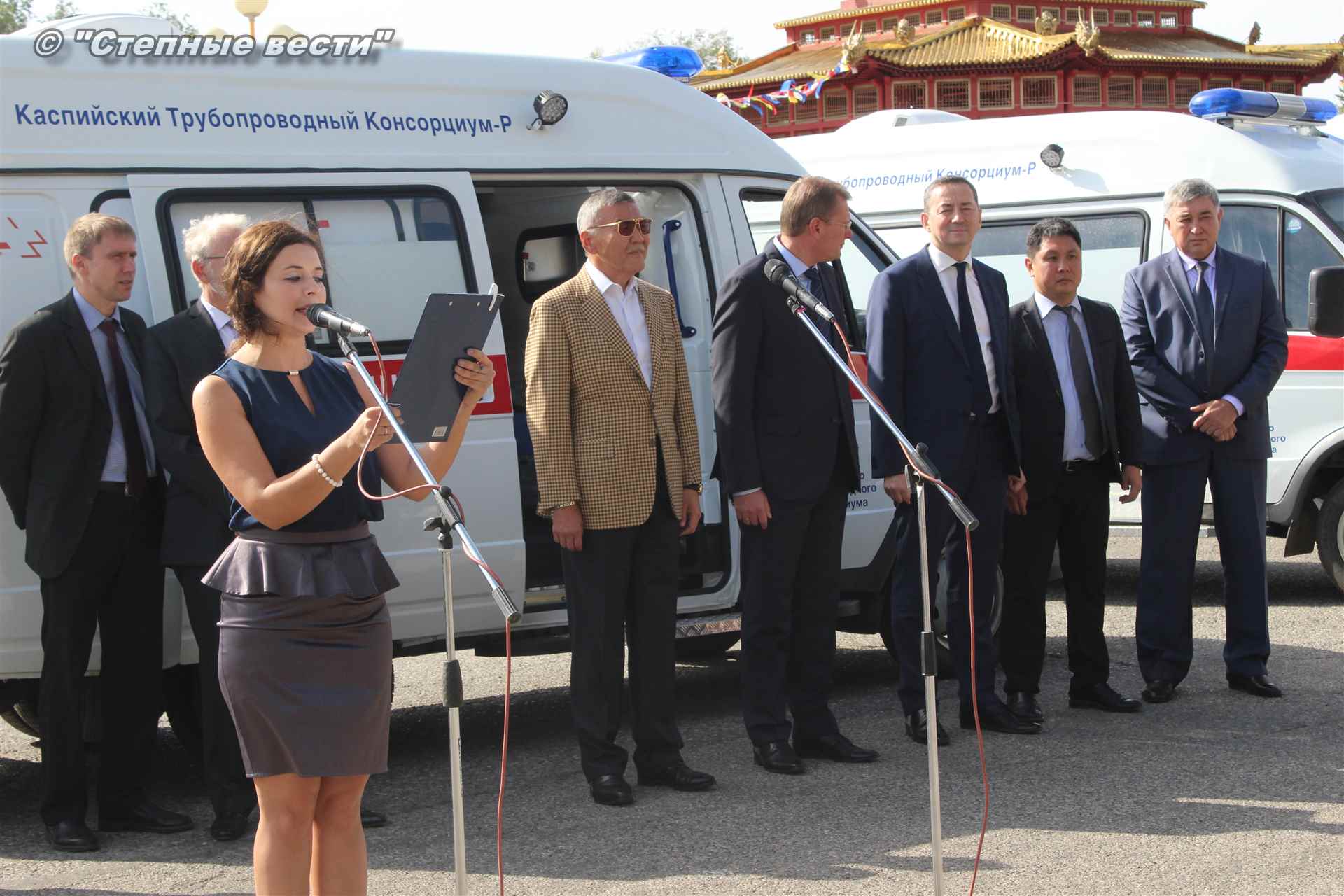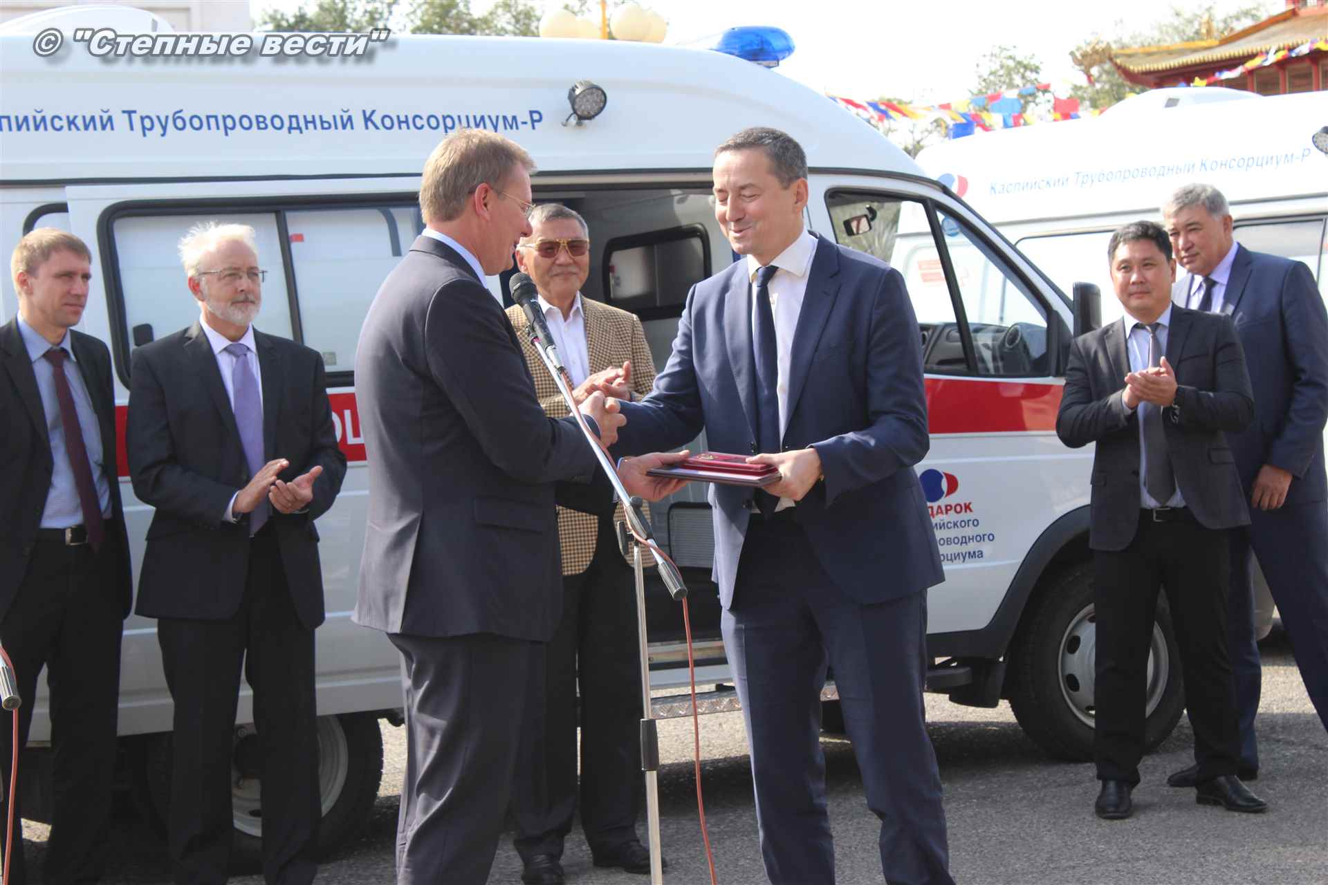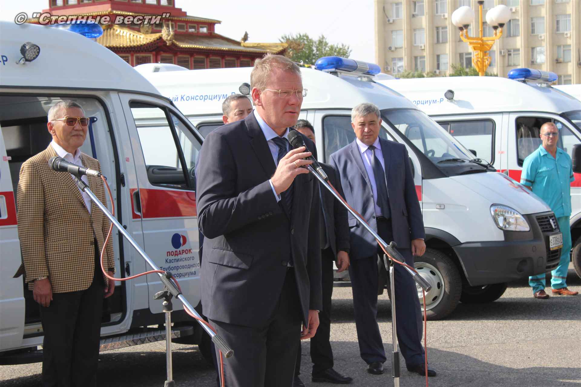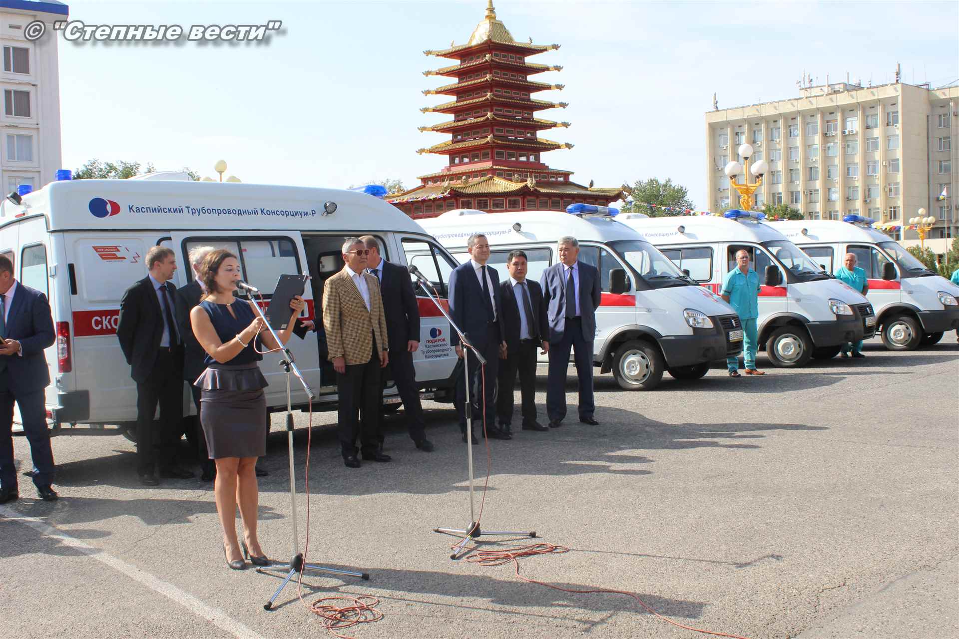 Церемония вручения ключей от новых автомобилей, на которых медработники будут выезжать к тем, кто срочно нуждается в их помощи, прошла сегодня близ территории культурного комплекса «Пагода Семи дней» в степной столице. В ней приняли участие генеральный директор Каспийского трубопроводного консорциума Николай Горбань, его первый заместитель по вопросам эксплуатации Дэннис Фэйи, заместитель генерального директора АО «КТК-Р» по связям с Правительством РФ Михаил Гришанков, Председатель Правительства РК Игорь Зотов, вице-премьер РК Боова Бадмаев, министр здравоохранения РК Юрий Кикенов, работники здравоохранения, студенты медицинского колледжа.