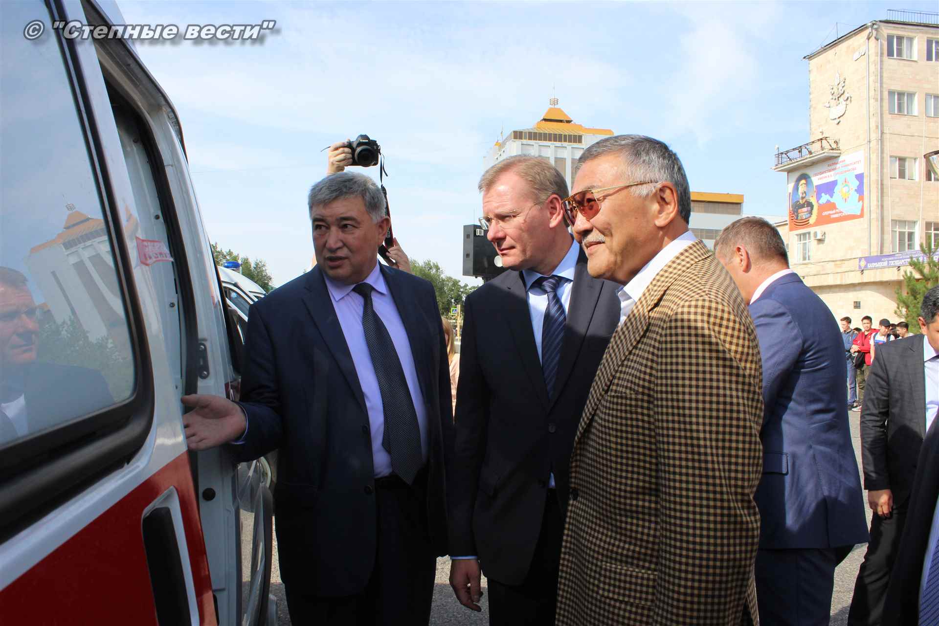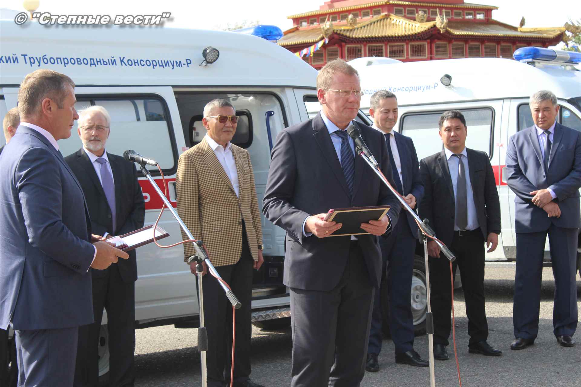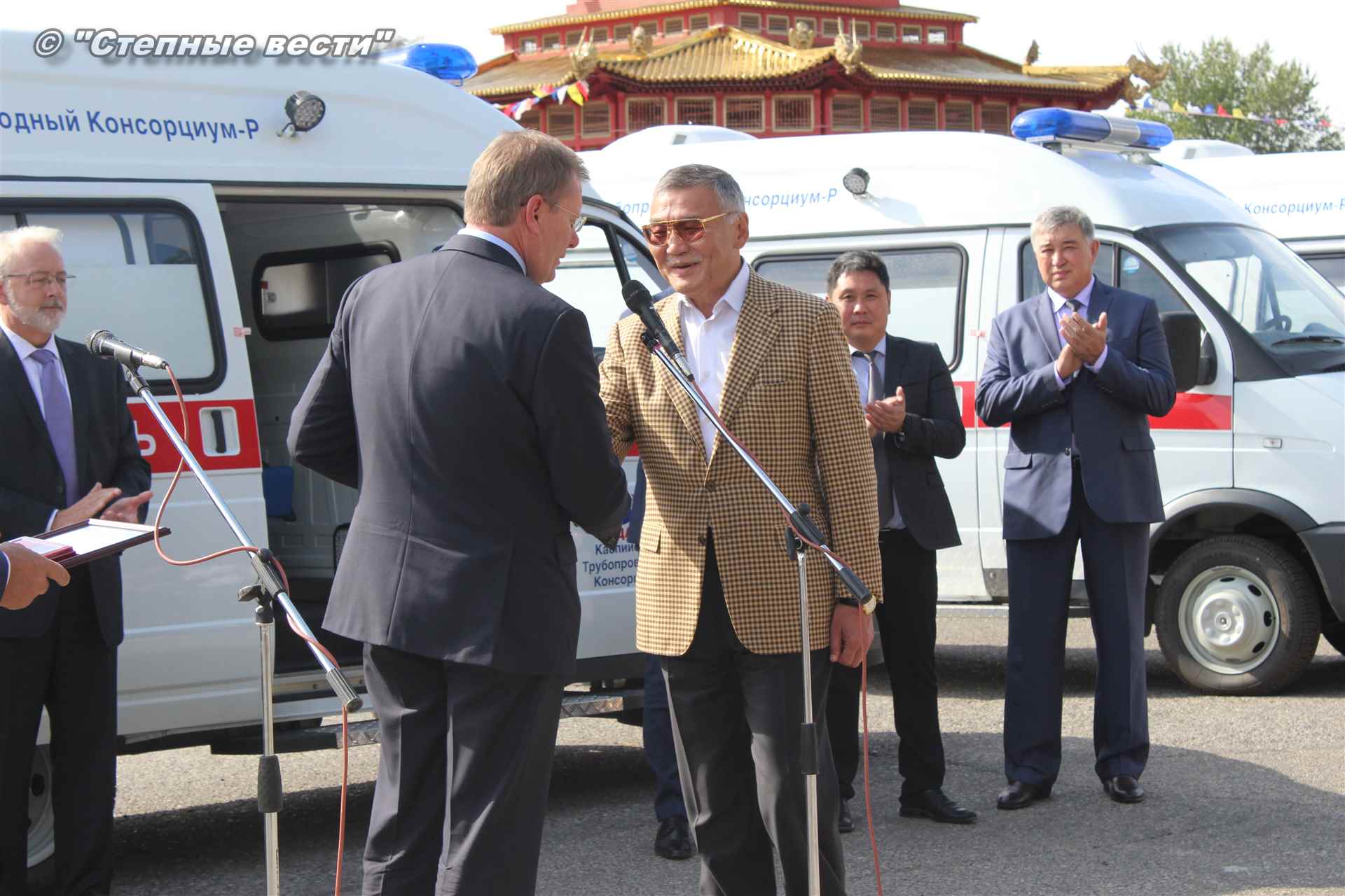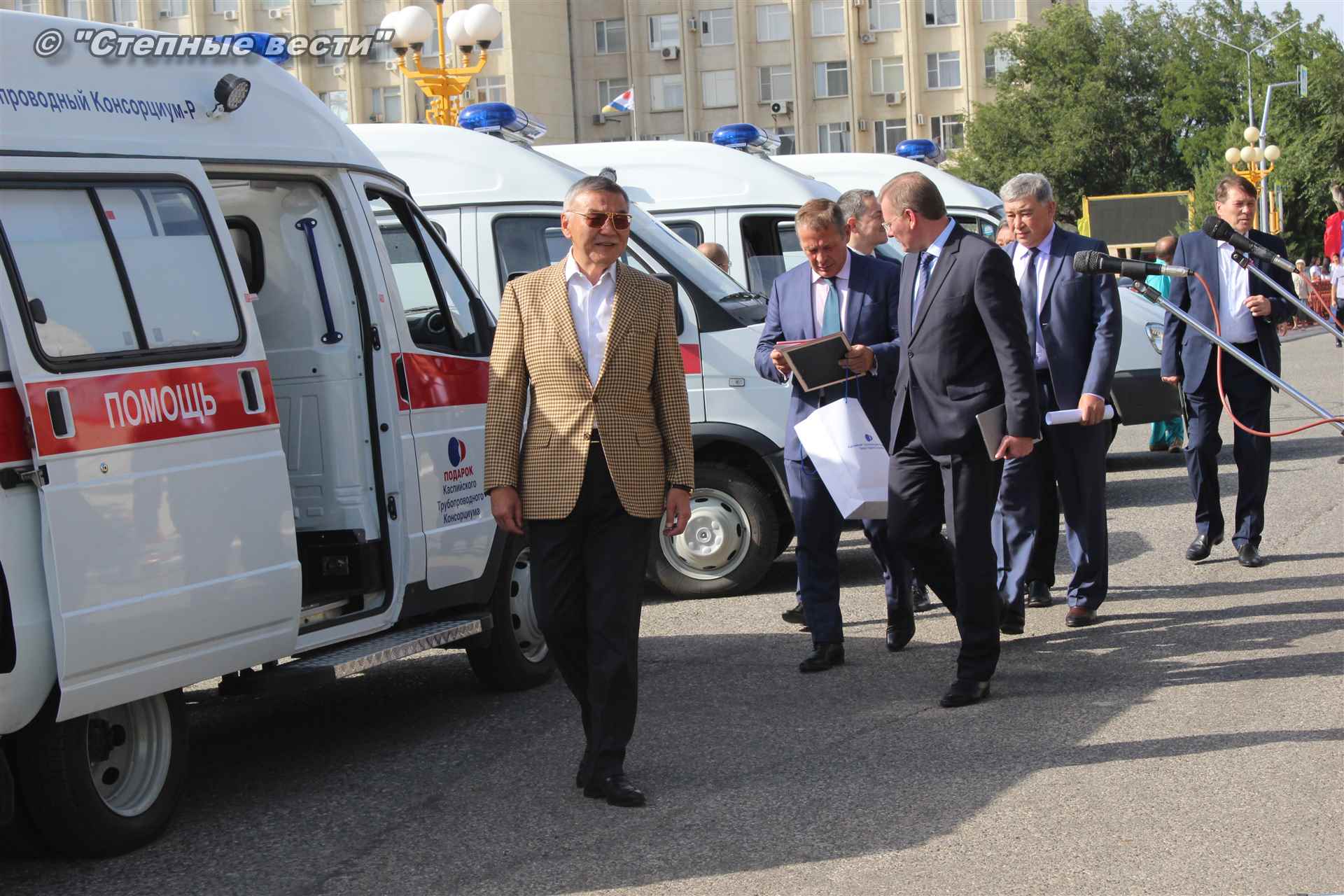 Церемония вручения ключей от новых автомобилей, на которых медработники будут выезжать к тем, кто срочно нуждается в их помощи, прошла сегодня близ территории культурного комплекса «Пагода Семи дней» в степной столице. В ней приняли участие генеральный директор Каспийского трубопроводного консорциума Николай Горбань, его первый заместитель по вопросам эксплуатации Дэннис Фэйи, заместитель генерального директора АО «КТК-Р» по связям с Правительством РФ Михаил Гришанков, Председатель Правительства РК Игорь Зотов, вице-премьер РК Боова Бадмаев, министр здравоохранения РК Юрий Кикенов, работники здравоохранения, студенты медицинского колледжа.
