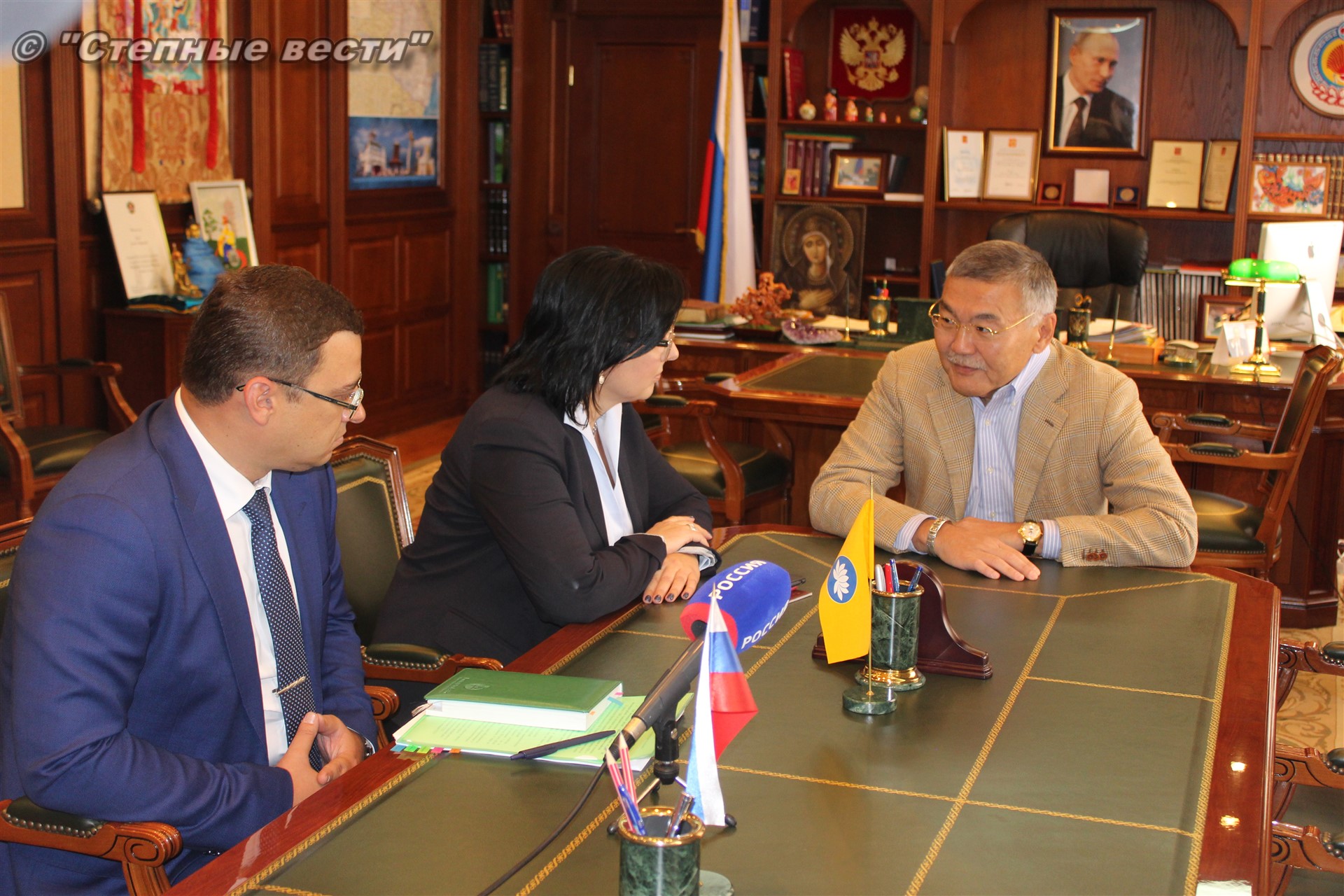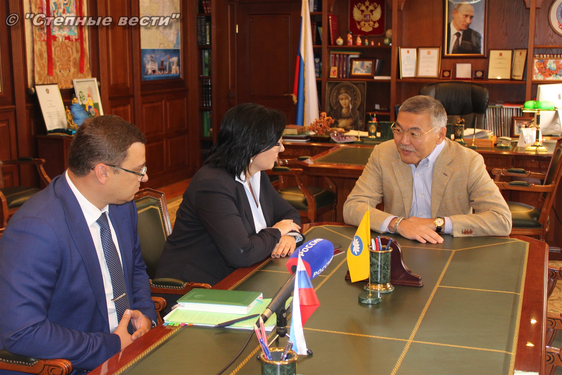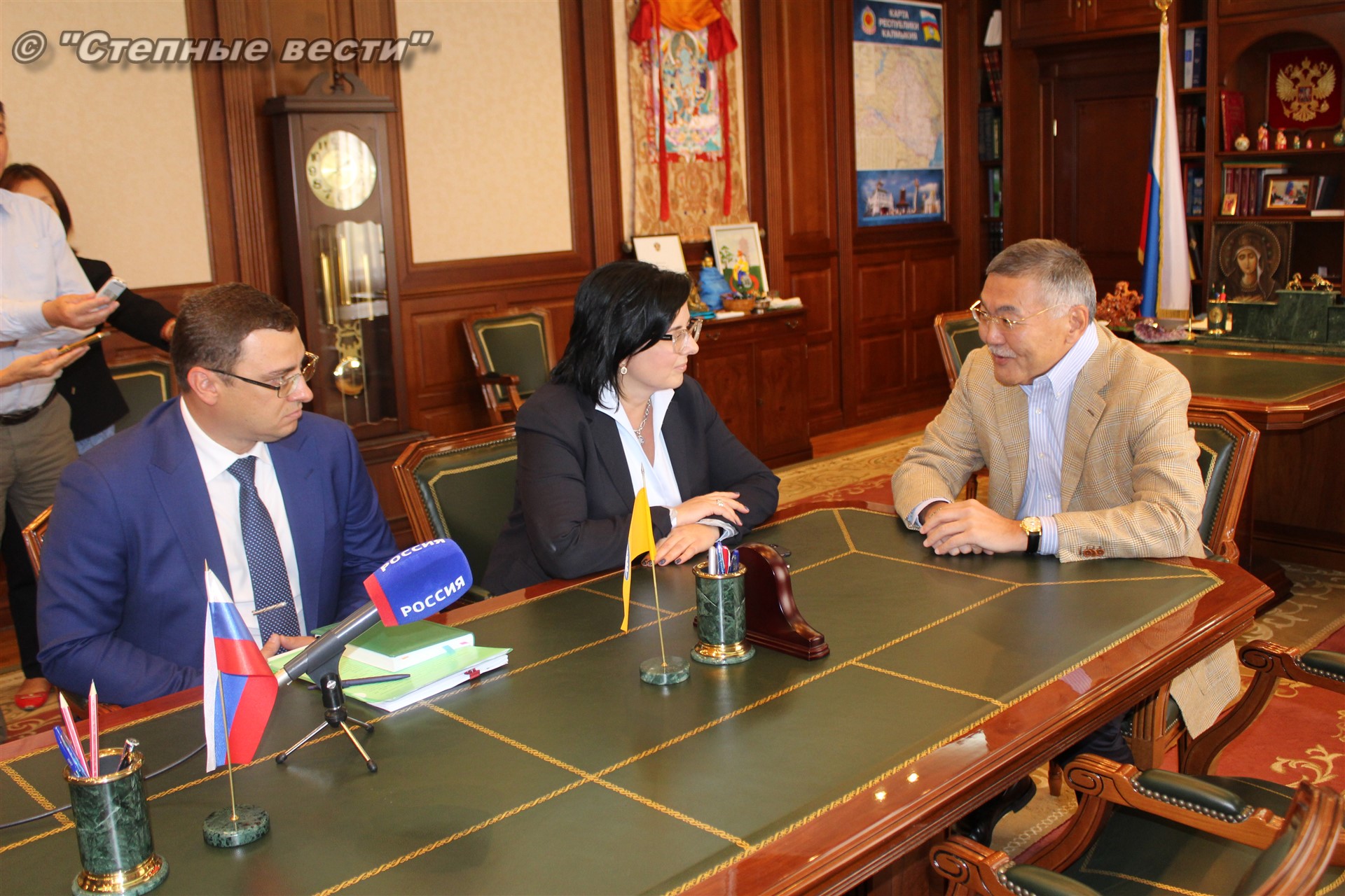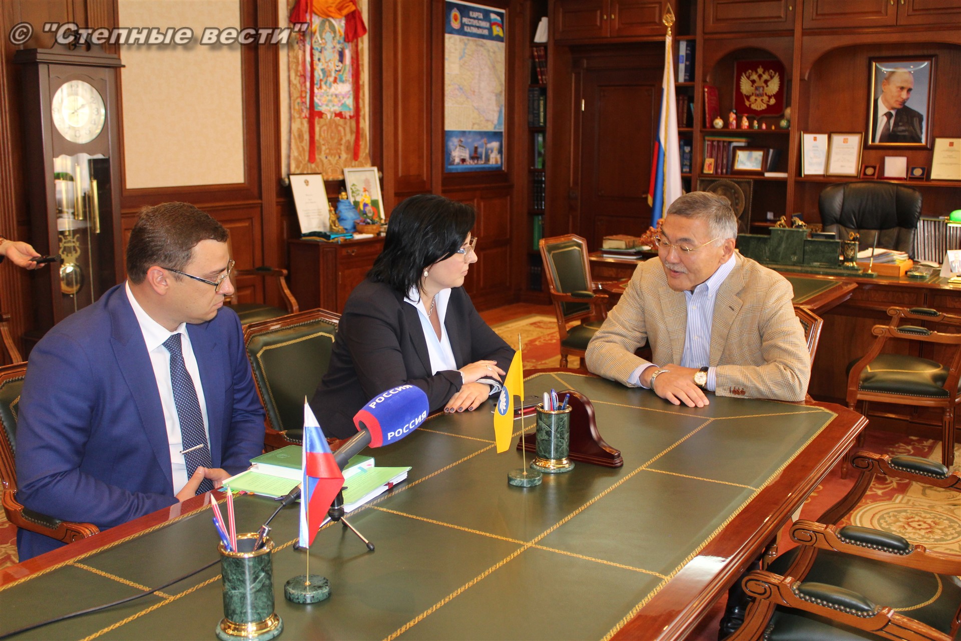 Руководитель республики отметил важность взаимодействия между регионом и филиалом крупной кредитной организации, занимающей лидирующие позиции в финансировании агропромышленного комплекса России, поскольку в Калмыкии главным направлением экономики является именно сельское хозяйство, и многие проекты в сфере малого и среднего предпринимательства проходят через Россельхозбанк.